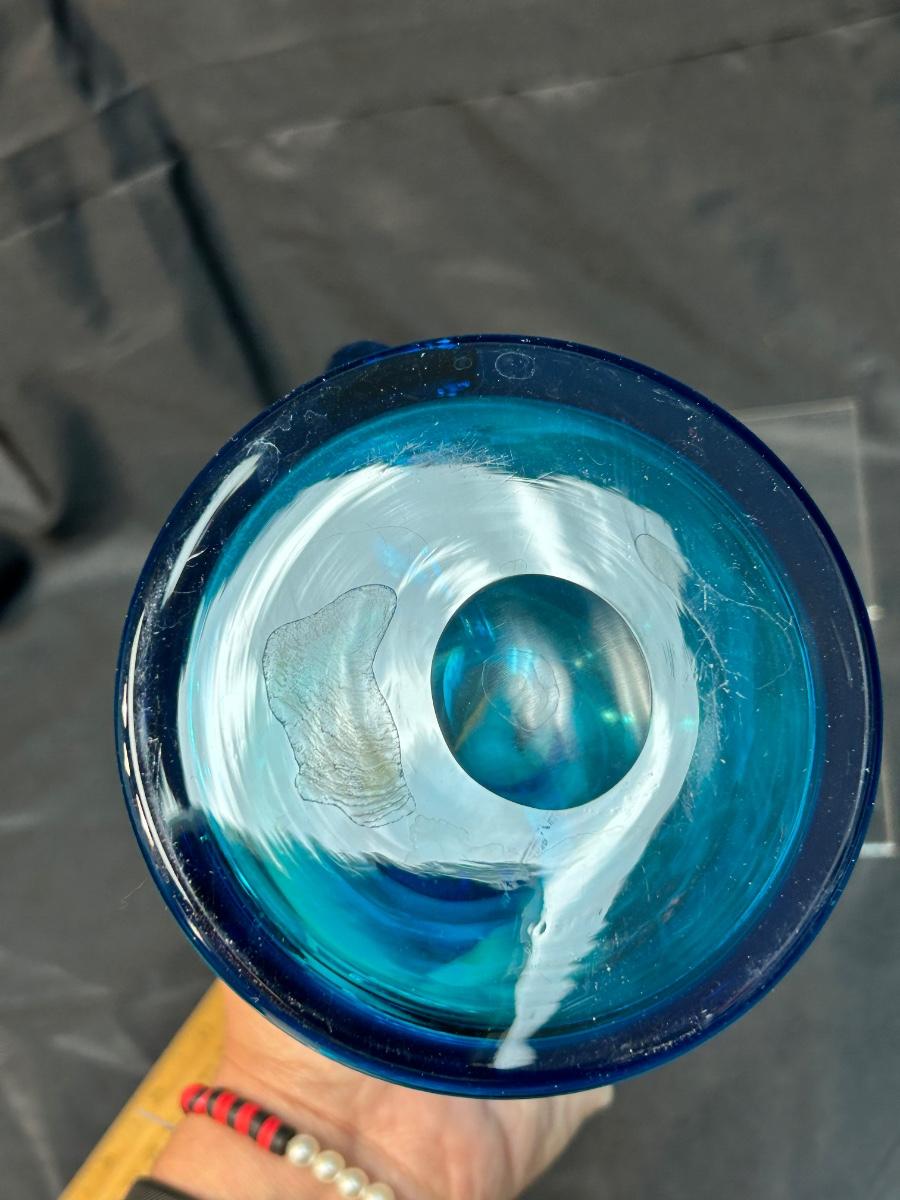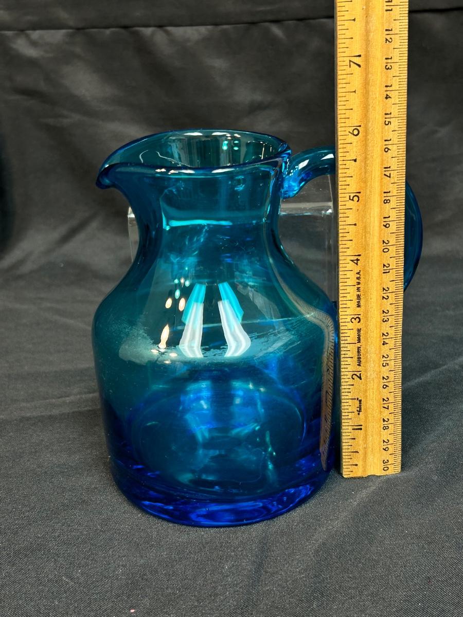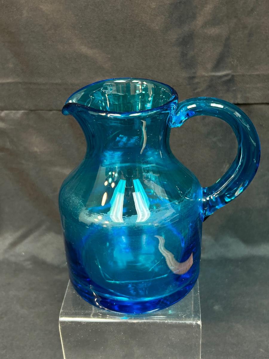 Turquoise Blue Blown Art Glass Small Pitcher. In good condition. Unsigned. About 6" tall. Great for display or use.