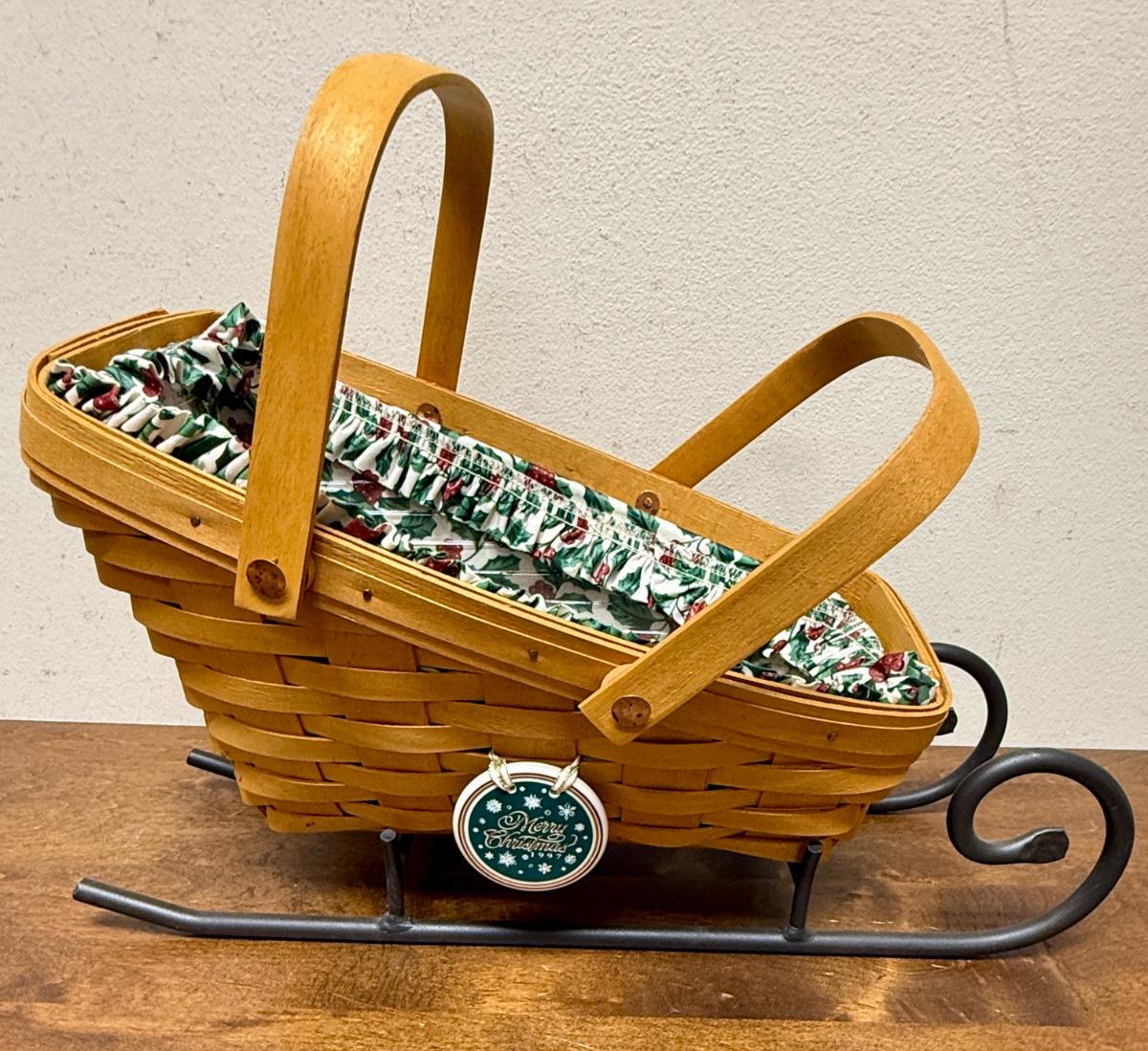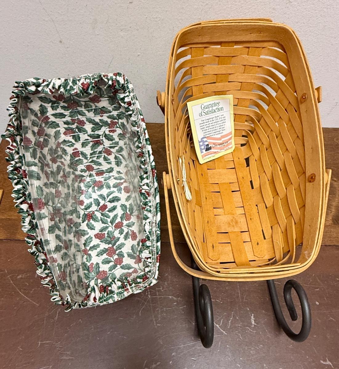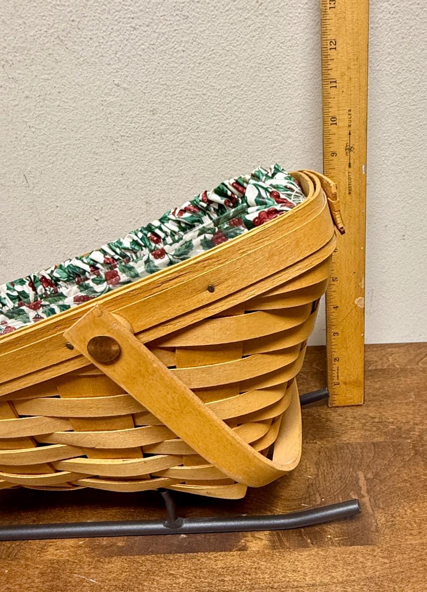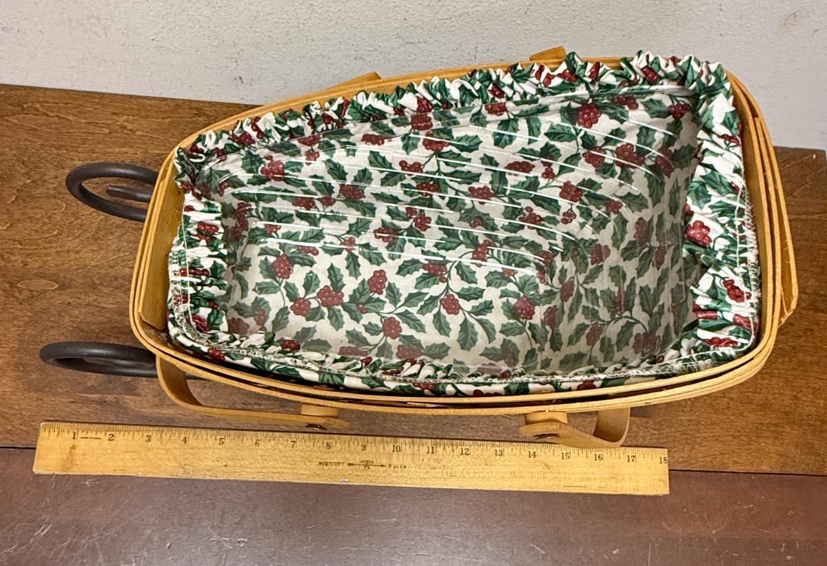 VIntage Longaberger Sleigh Basket with Berry Pattern Cloth Lining inside plastic liner