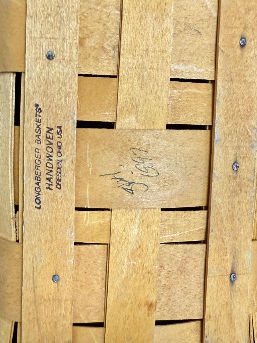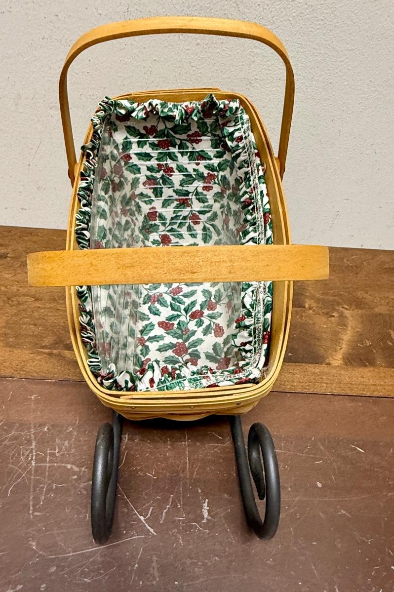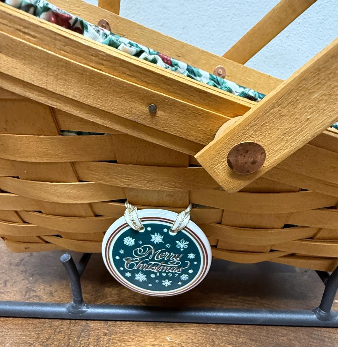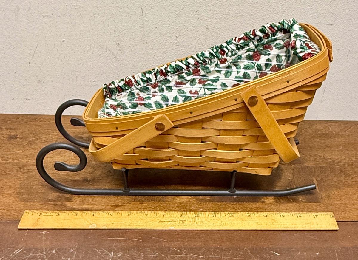 VIntage Longaberger Sleigh Basket with Berry Pattern Cloth Lining inside plastic liner