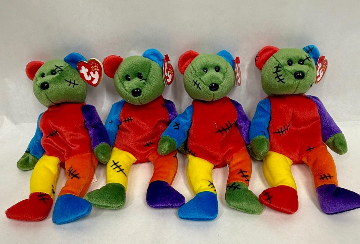 Lot of (4) Beanie Babies FRANKENTEDDY 2001 Halloween Special Beanie Baby