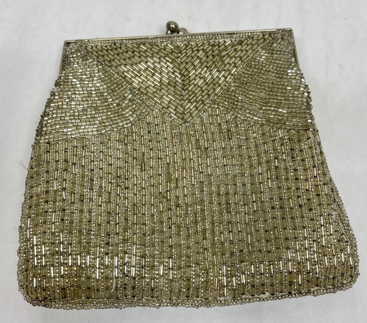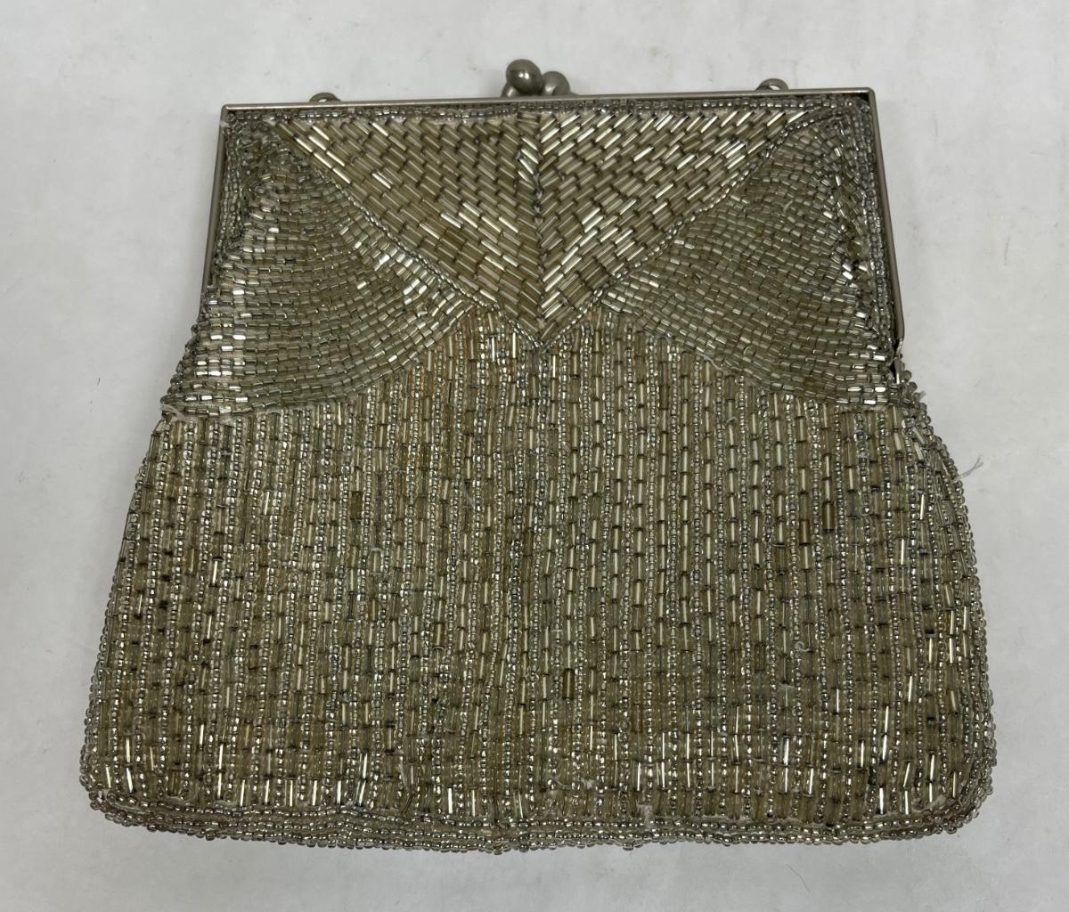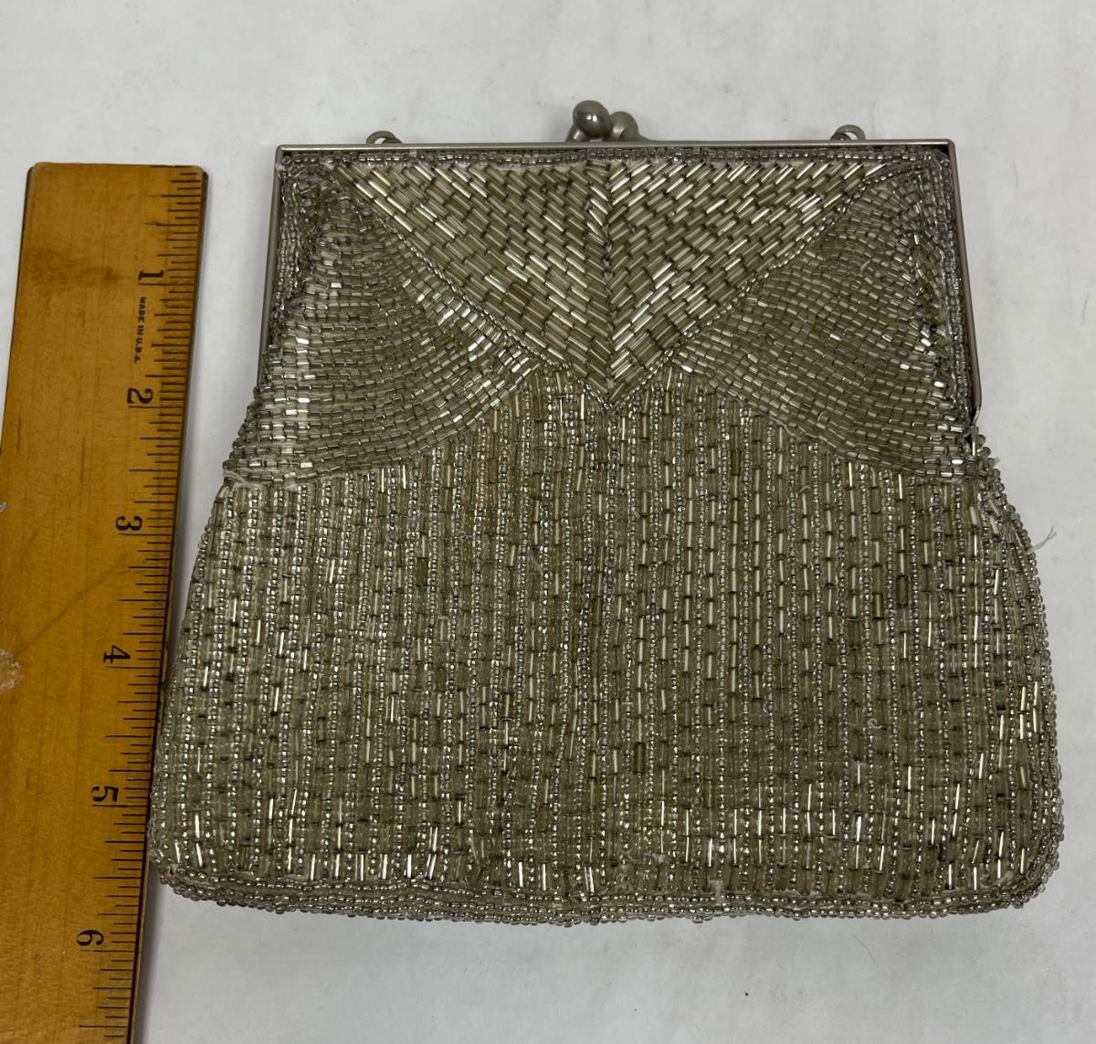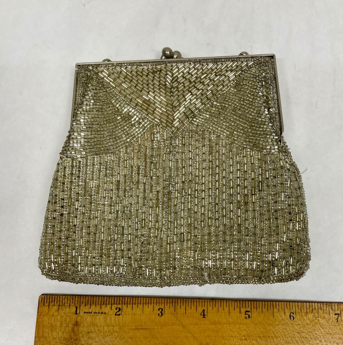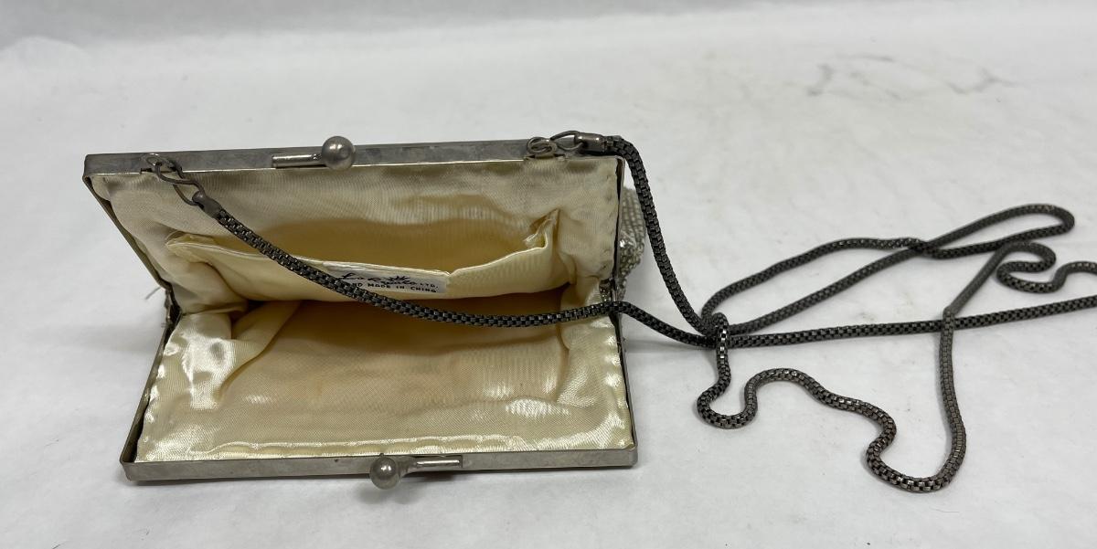 Vintage La Regale Silvertone Beaded Clutch with Shoulder Strap