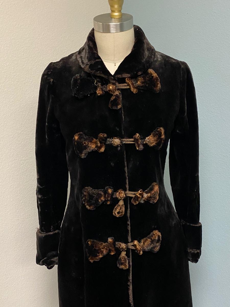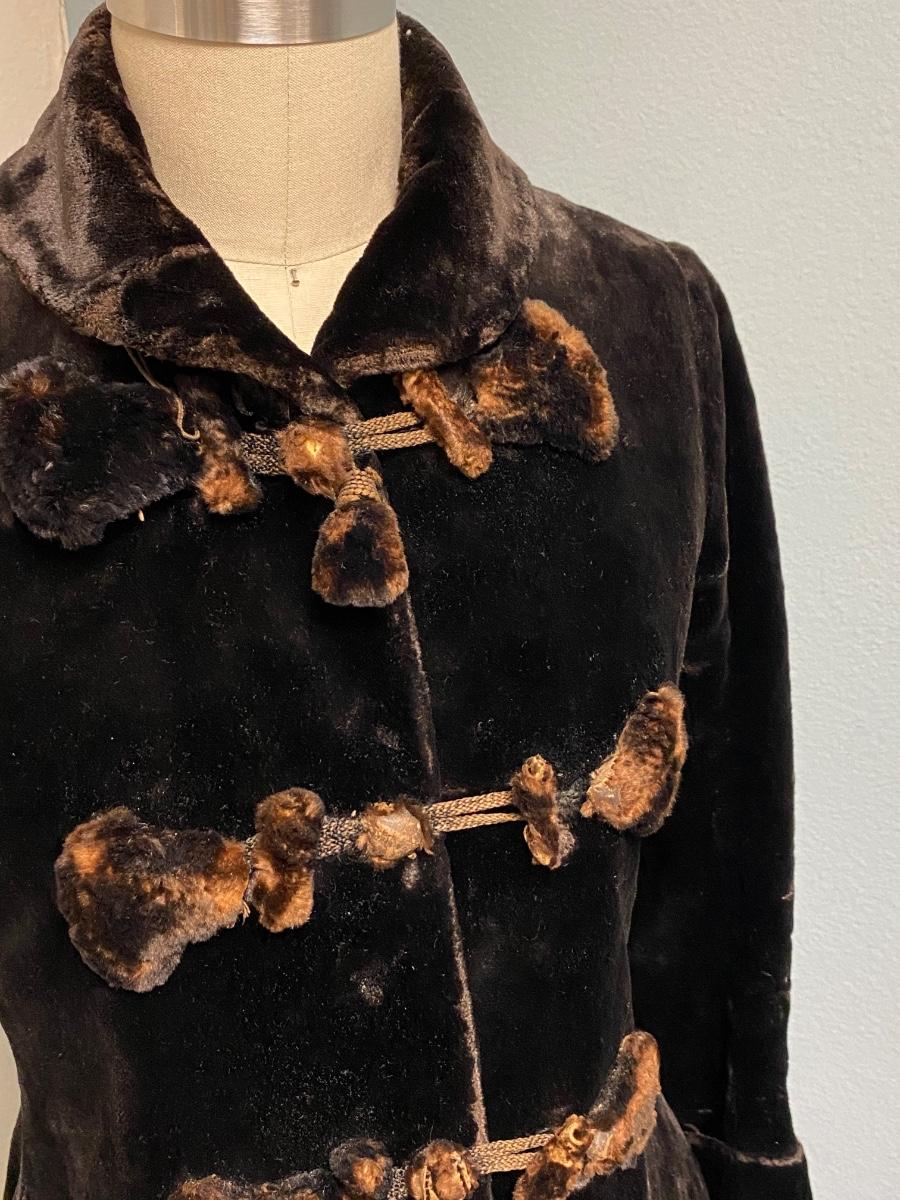 Vintage Antique Victorian Fitted Heavy Dark Brown Velvet Jacket Coat