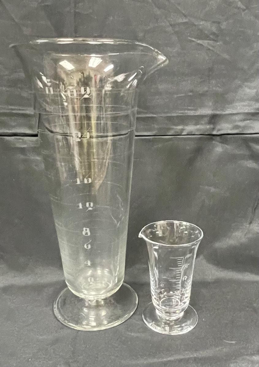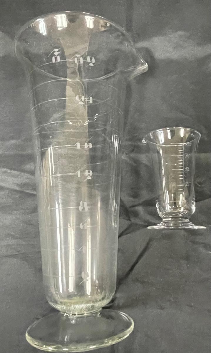 Pair of Vintage Glass Fluted Beakers Measuring Glasses. Some wear from use and age but in good displayable condition.