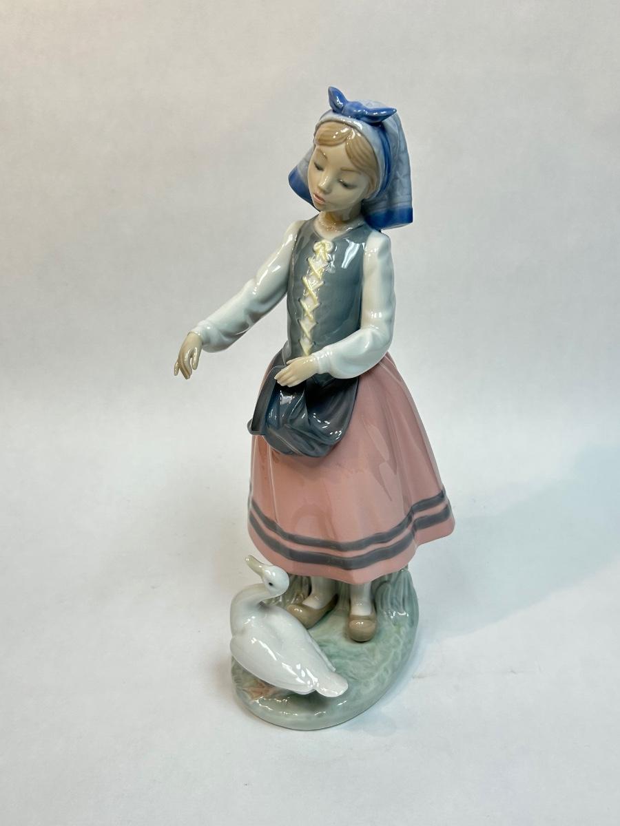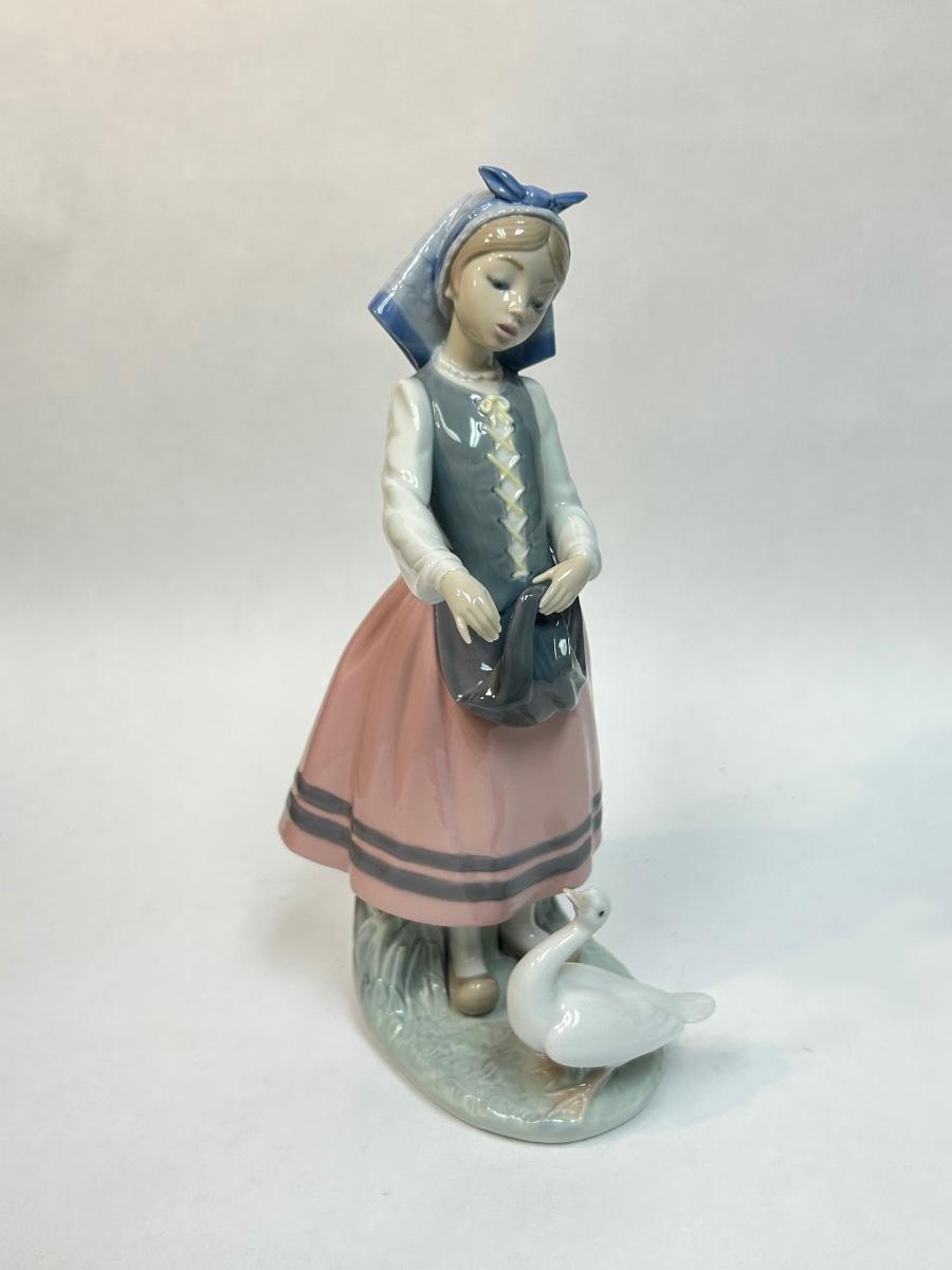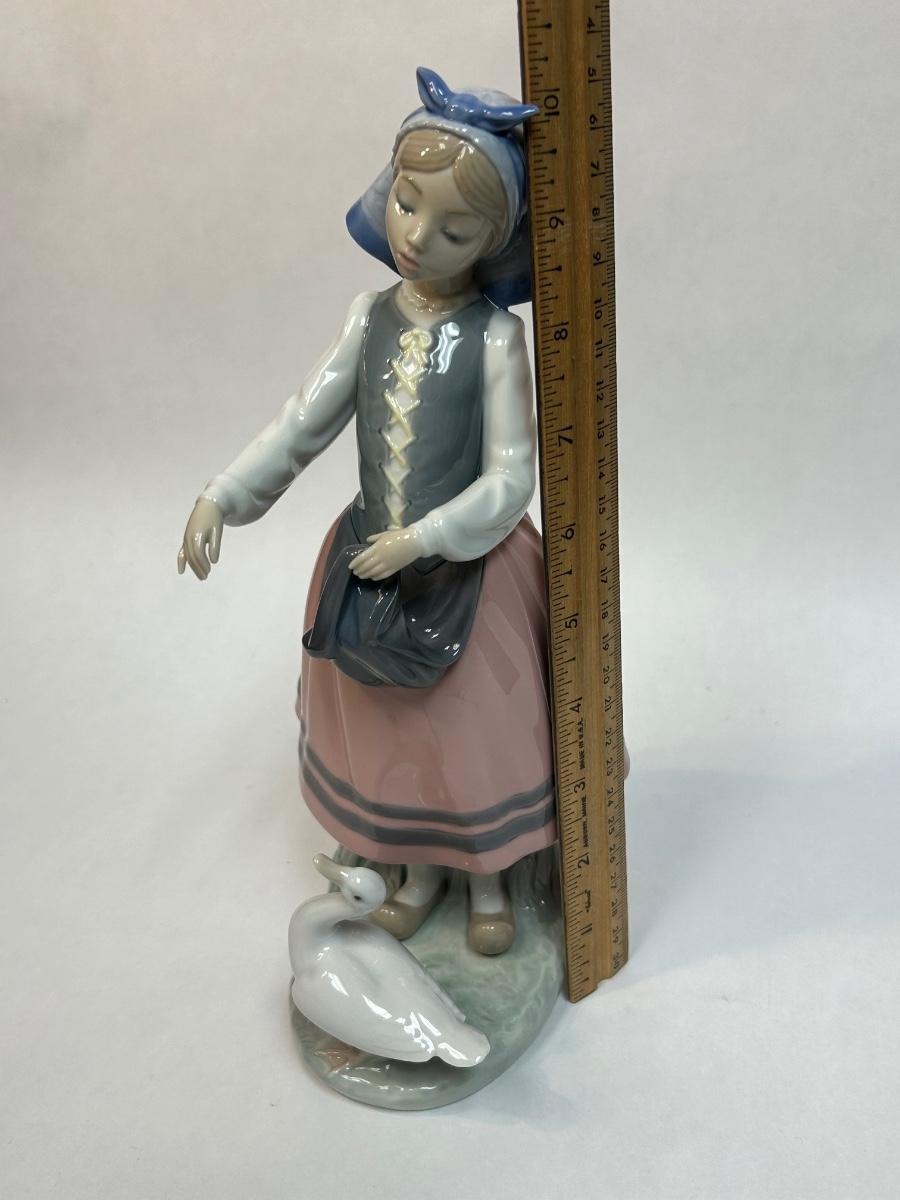 Vintage Lladro Girl Feeding White Goose Figurine Statuette Made in Spain #5201