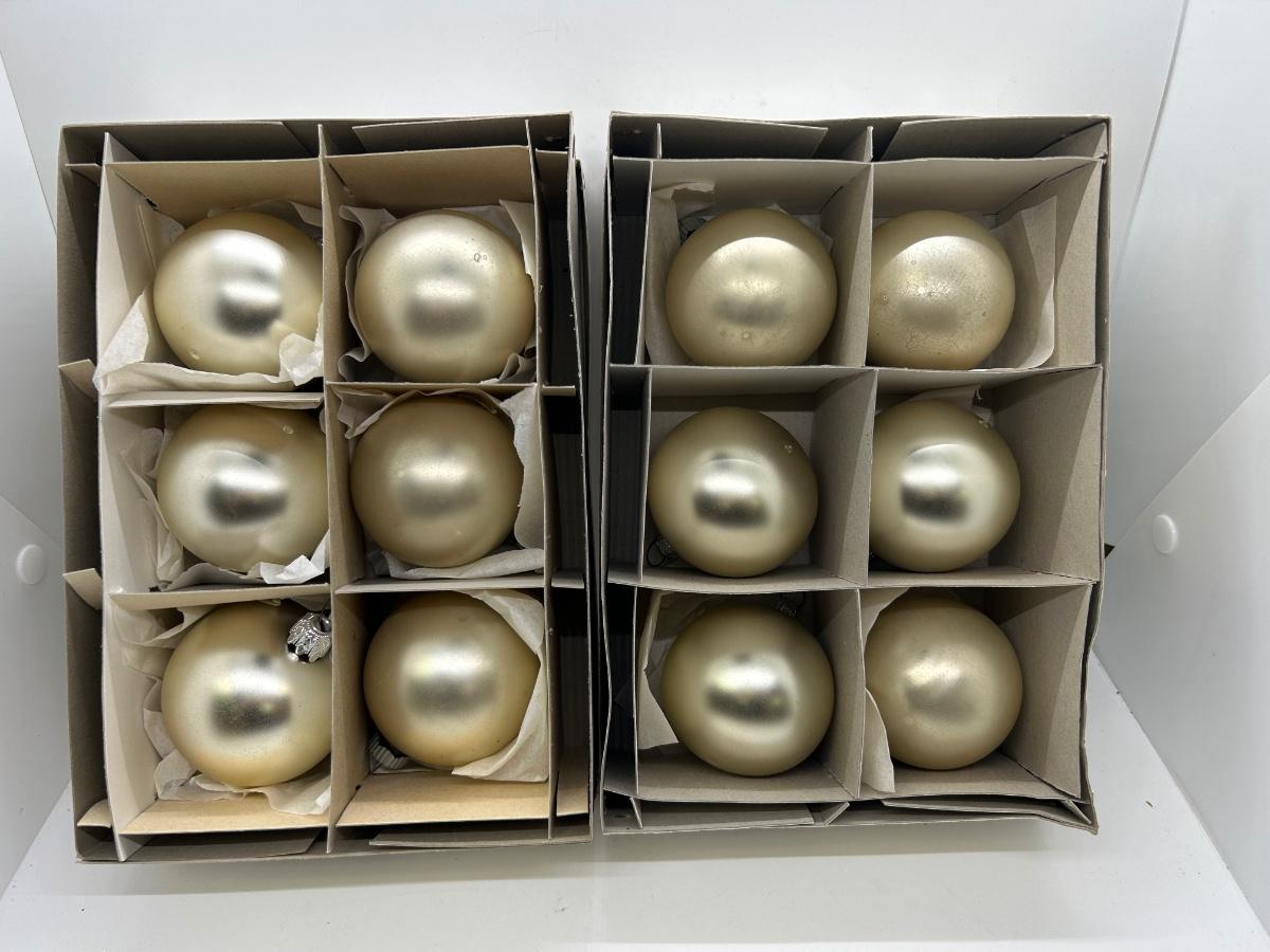 Lot of 12 Blown Glass Satin Finish Silver Pewter Christmas Holiday Hanging Ornaments