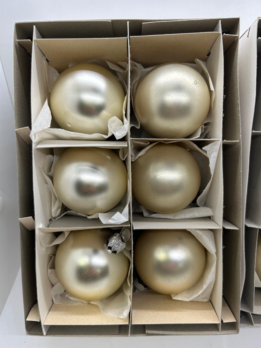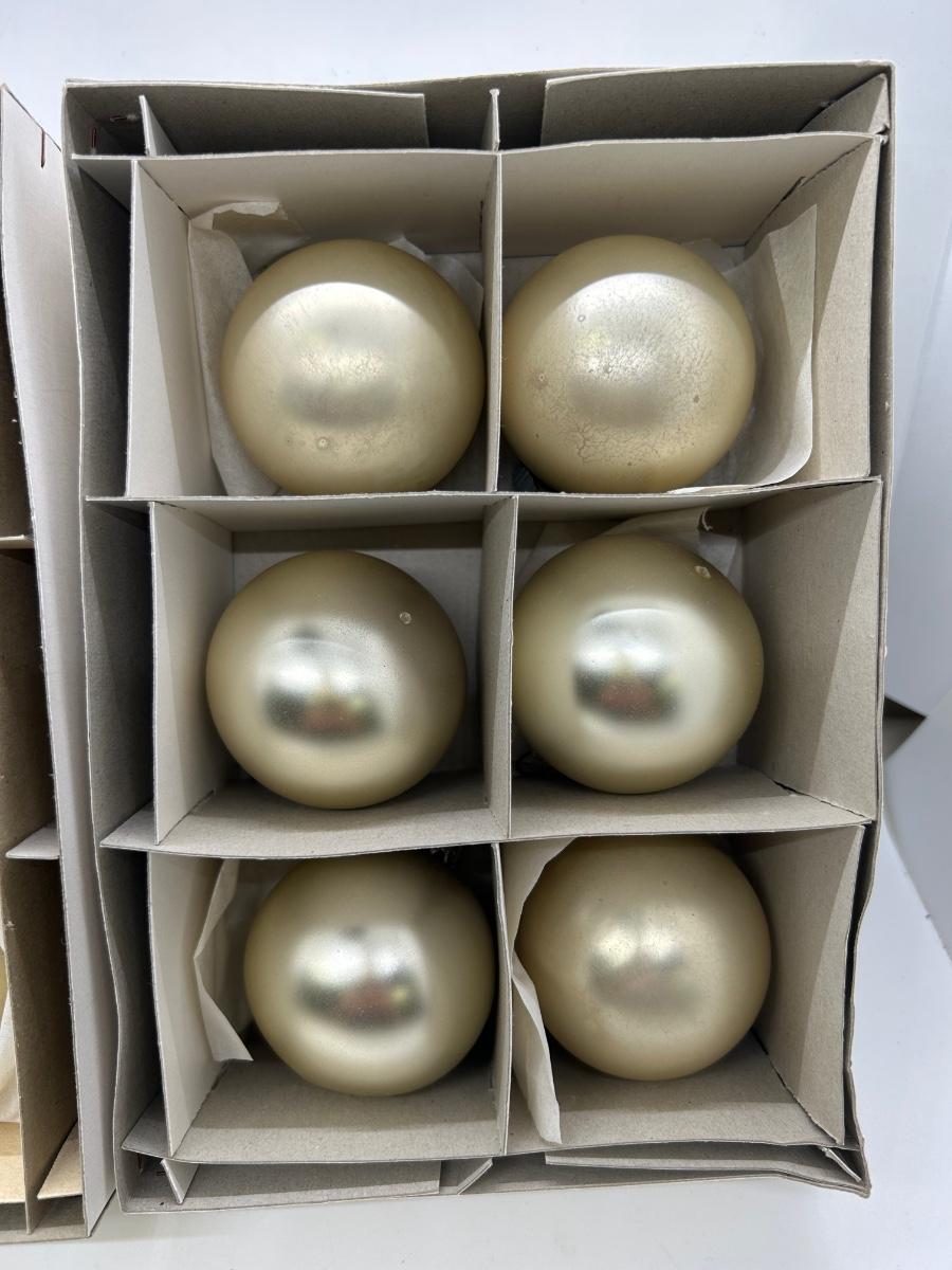 Lot of 12 Blown Glass Satin Finish Silver Pewter Christmas Holiday Hanging Ornaments. In good vintage condition. No broken bulbs but there may be some signs of age to the finish.