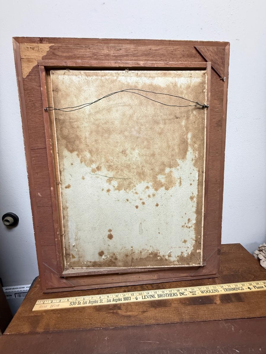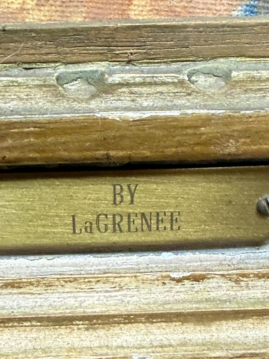 In good used condition but it's loose from the frame on one corner. The label at bottom of photo is by LaGrenee.