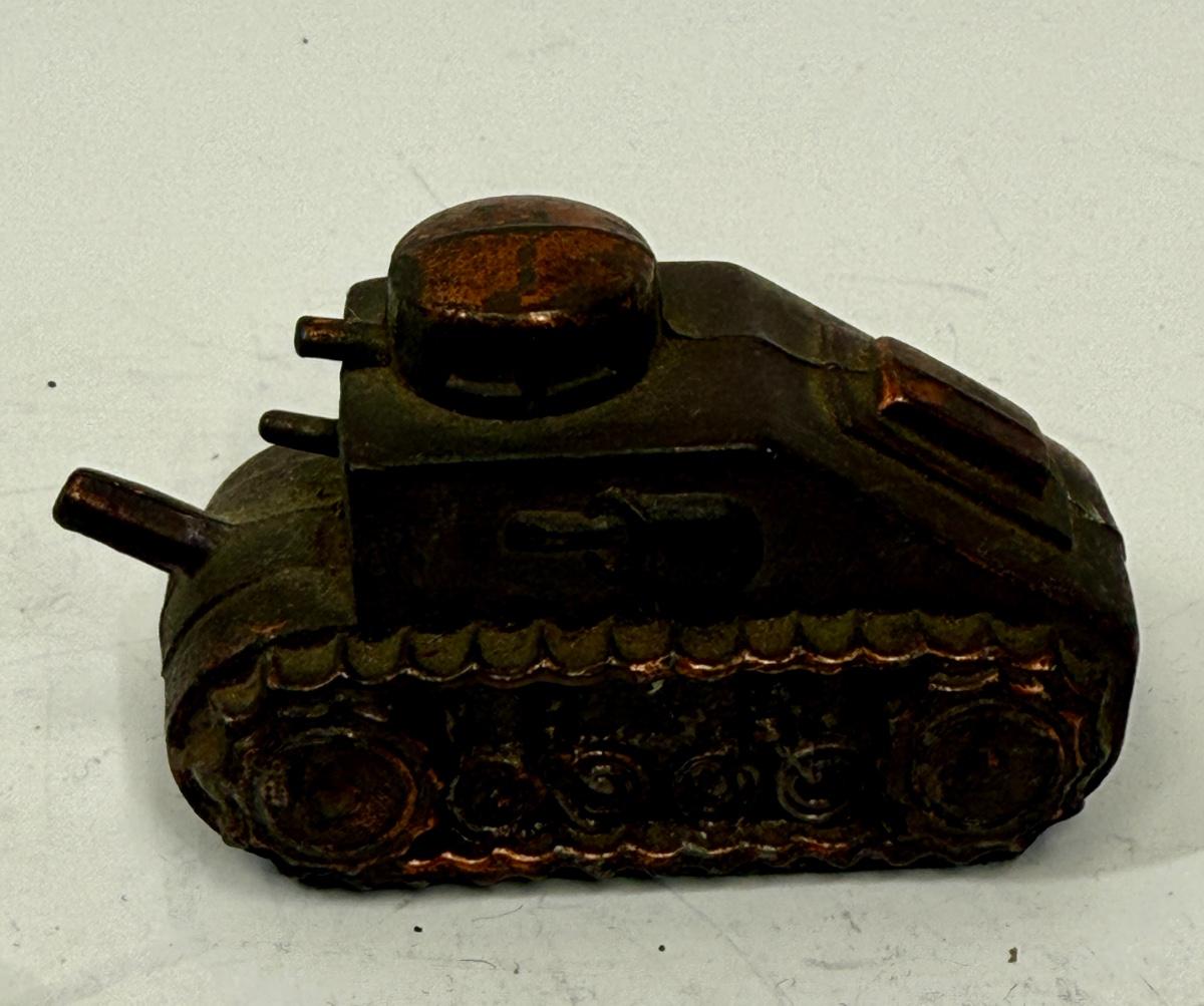Vintage Brass Bronze WWI Miniature Tank Figurine Toy 3"
