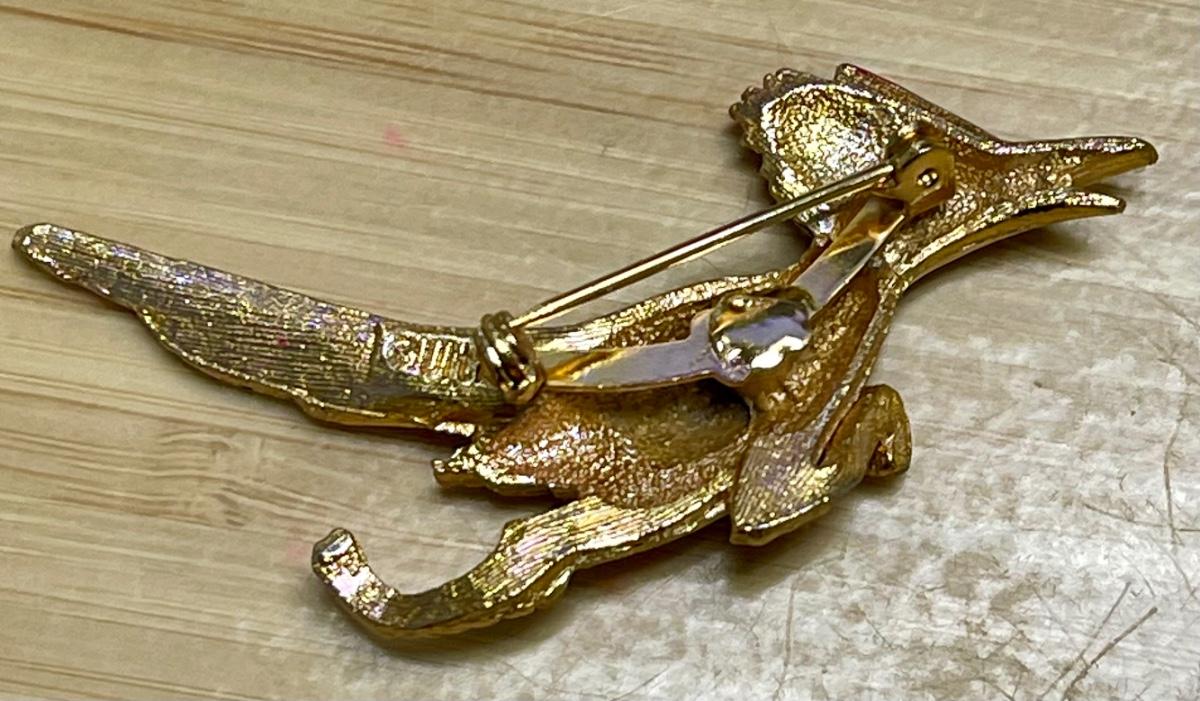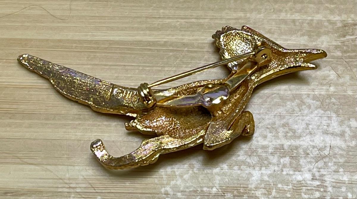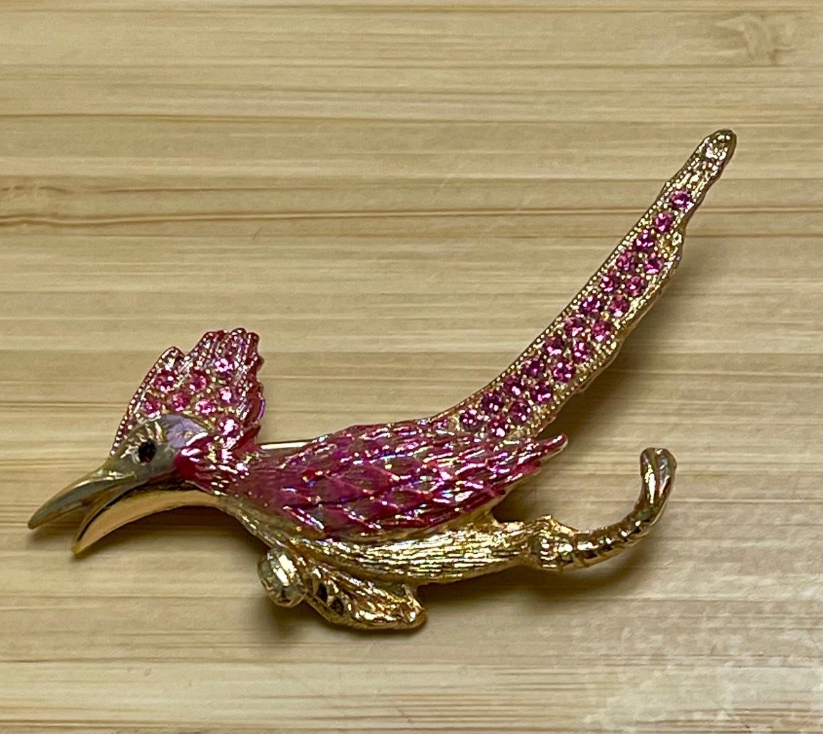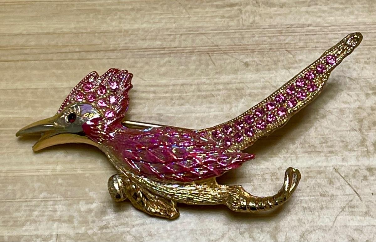 Signed Ultra Vintage Road Runner Brooch Pin Glittery Pink Enamel
