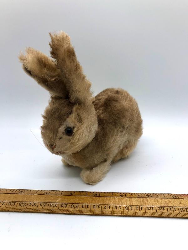 Steiff bunny, button in ear has Steiff logo. See photos. Some minor dirt smudges on bottom of feet. Approx. 4” long.