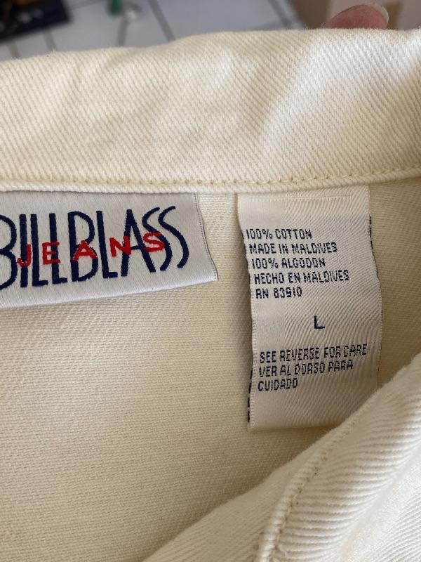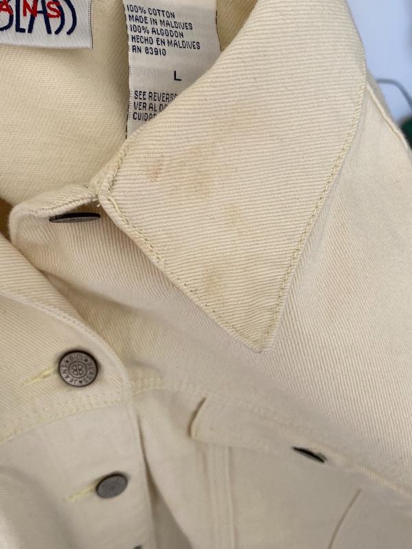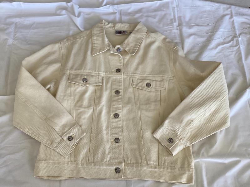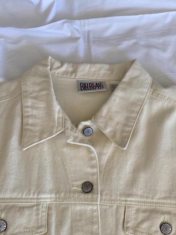 Vintage Bill Blass Woman's Denim Jacket. Size Large. It is a pale yellow color. There is some discolor spots, not sure if it is stains or from being stuck in a closet for years.