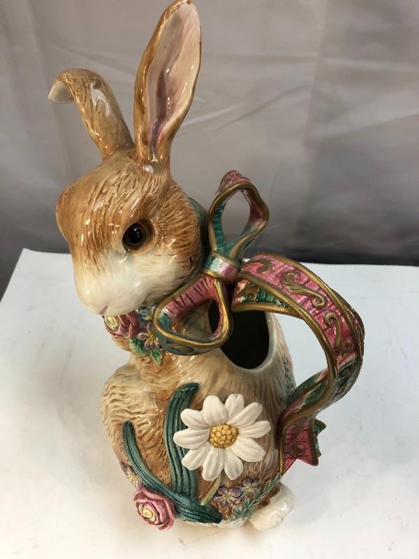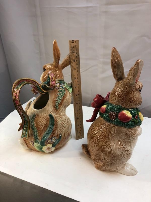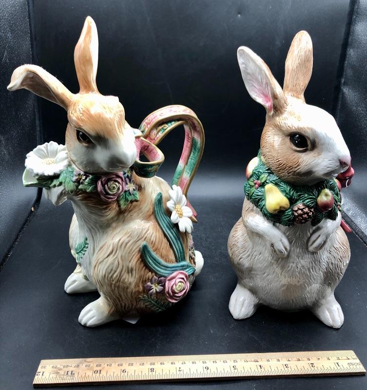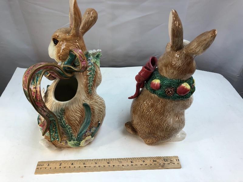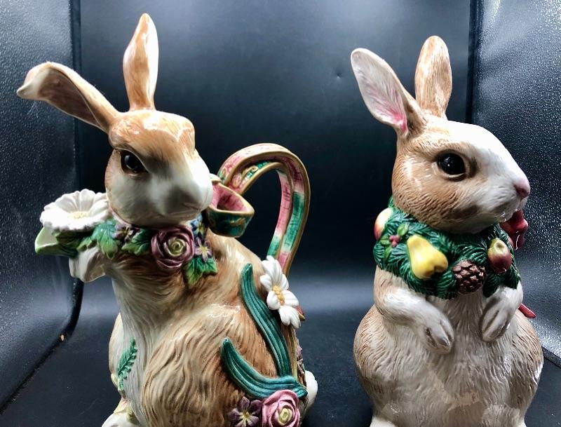 Fitz and Floyd Ceramic Bunny Rabbit Pitcher Pair