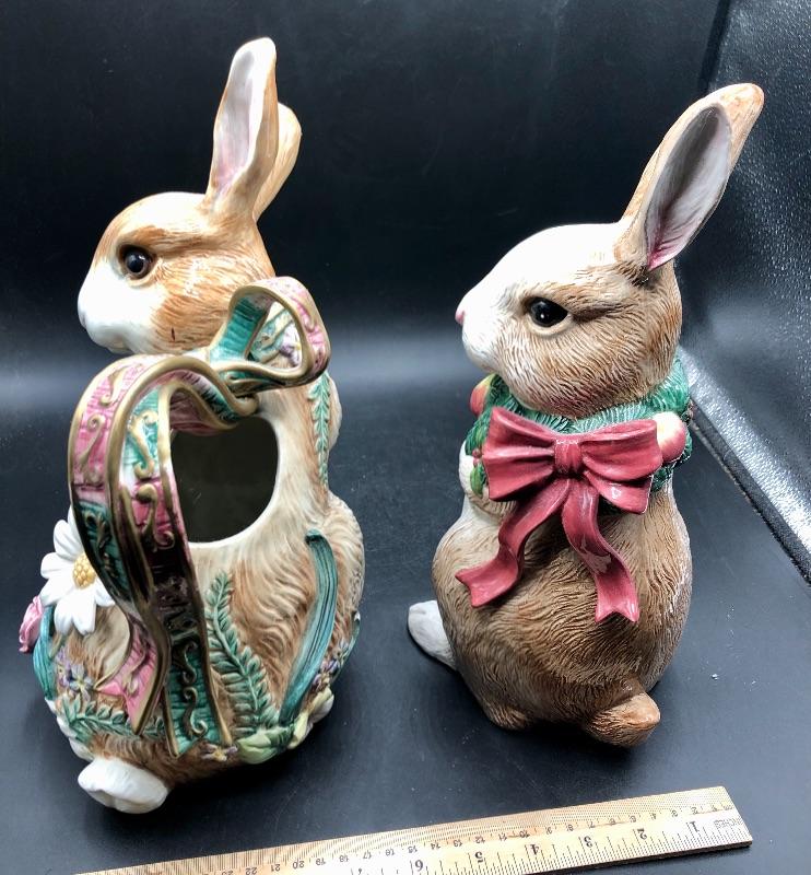 Pair of ceramic rabbits. One is a water pitcher. Both display nicely.