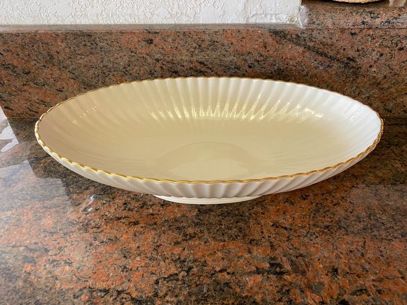 Oval Lenox White and Gold Scalloped Serving Bowl YD#022-0265