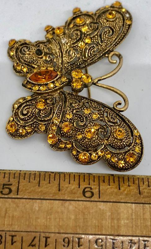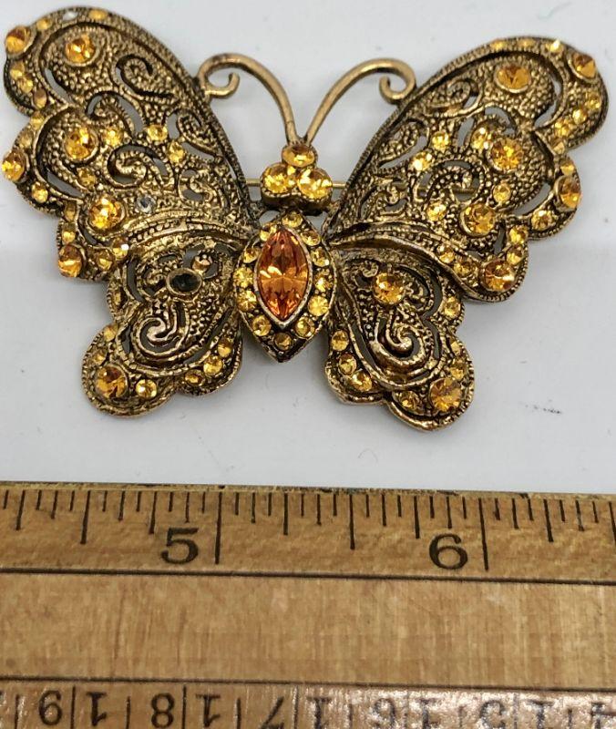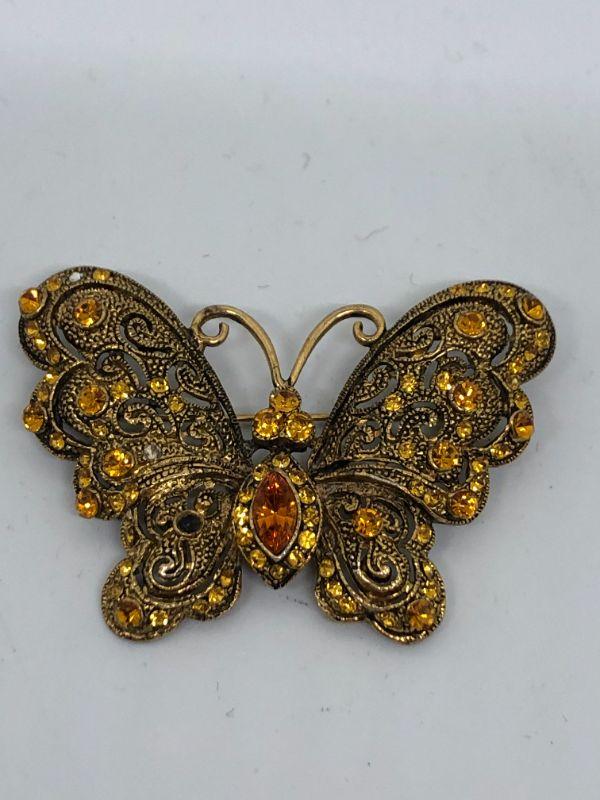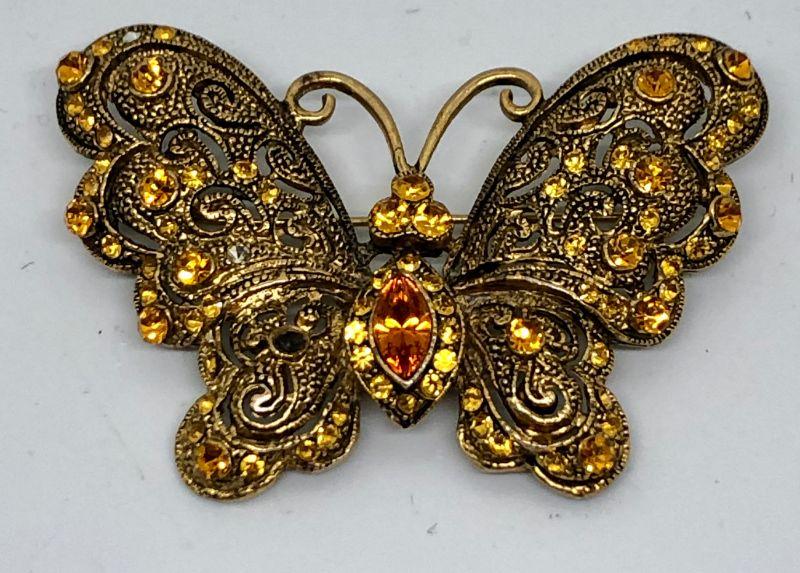 Pretty Butterfly Brooch, golds and oranges, missing stone