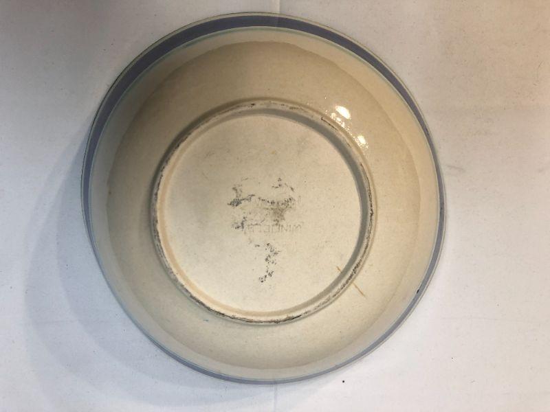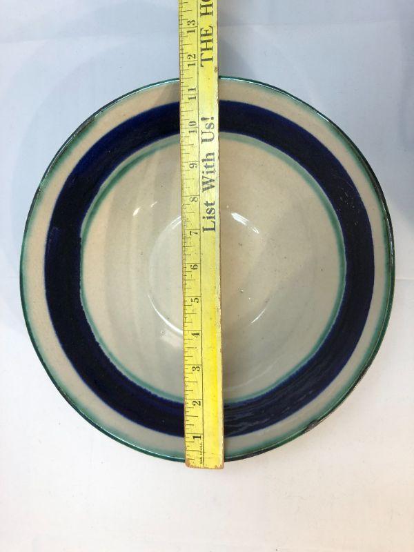 Large Winfield Pasadena serving bowl. Cobalt blue stripe. Almost 12" across. Good vintage condition.
