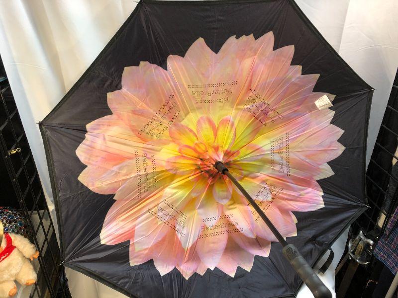 BetterBrella Pink Flower Black Umbrella YD#020-499l
