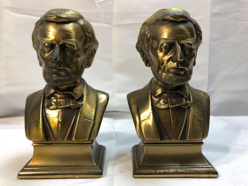 Vintage brass Abraham Lincoln bookends. About 9" height. Good condition.
