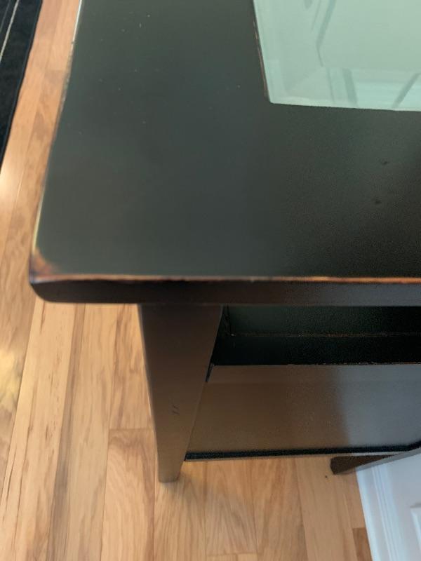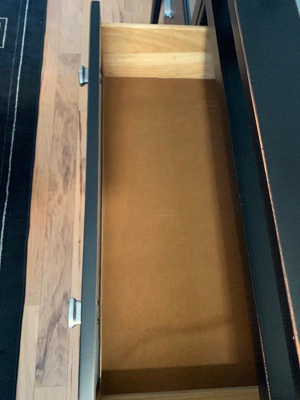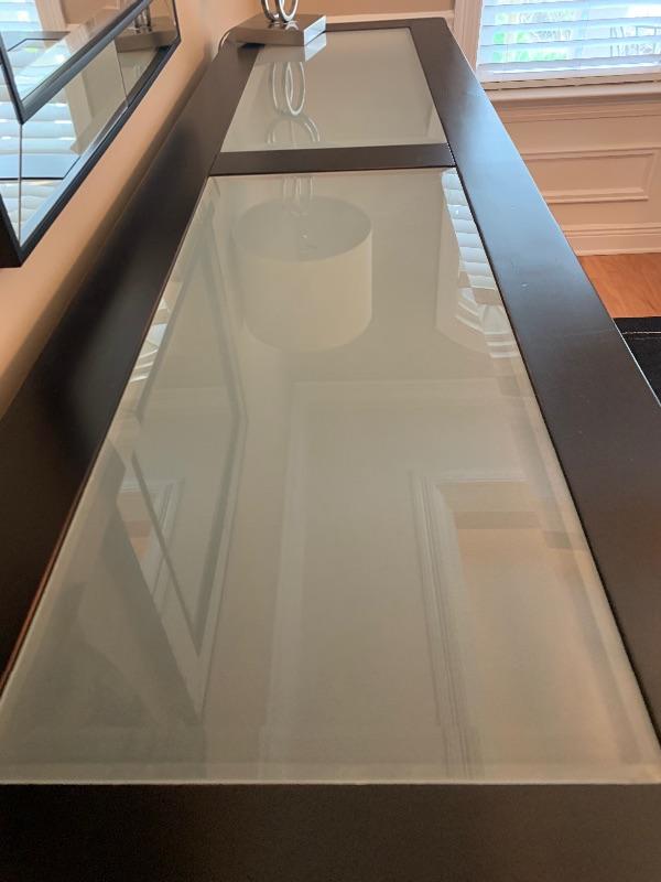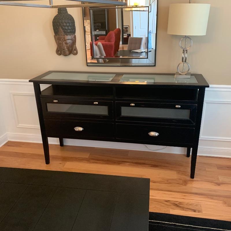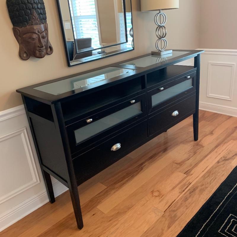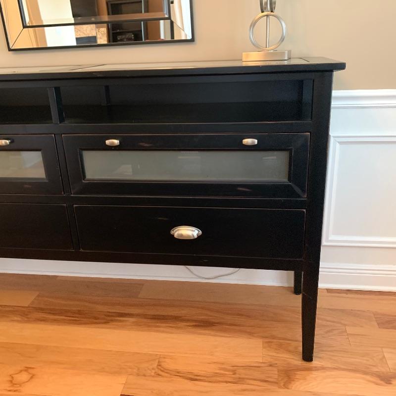 Black Distressed Buffet with Frosted Glass Top and 4 Drawers