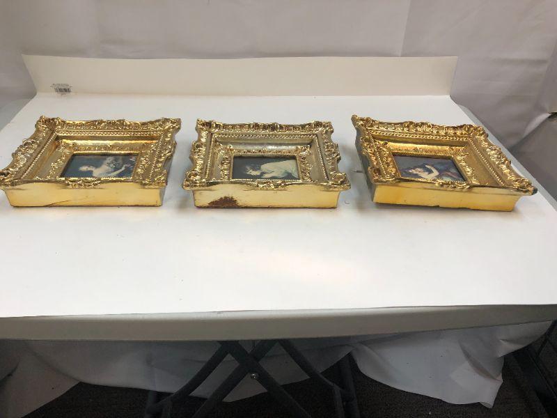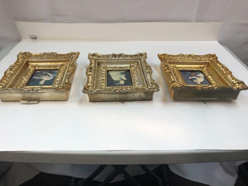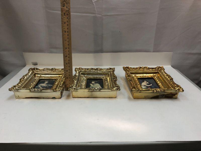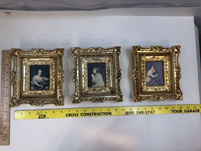 Set of 3 Small Gold Gilt Frame Pictures of People