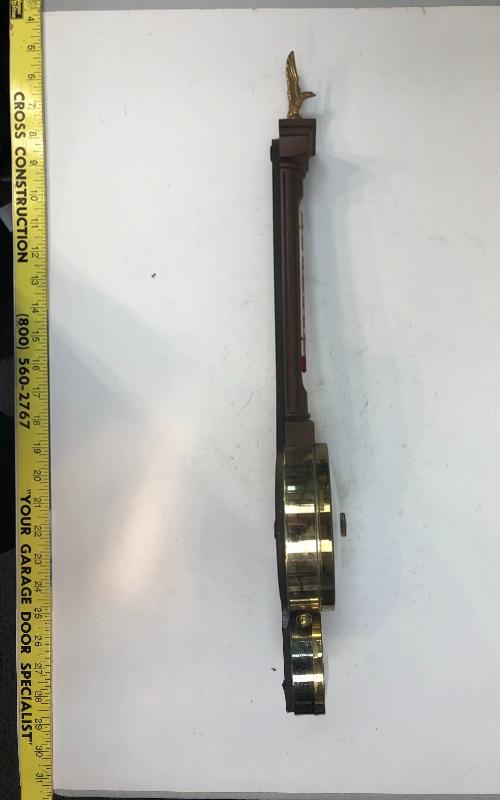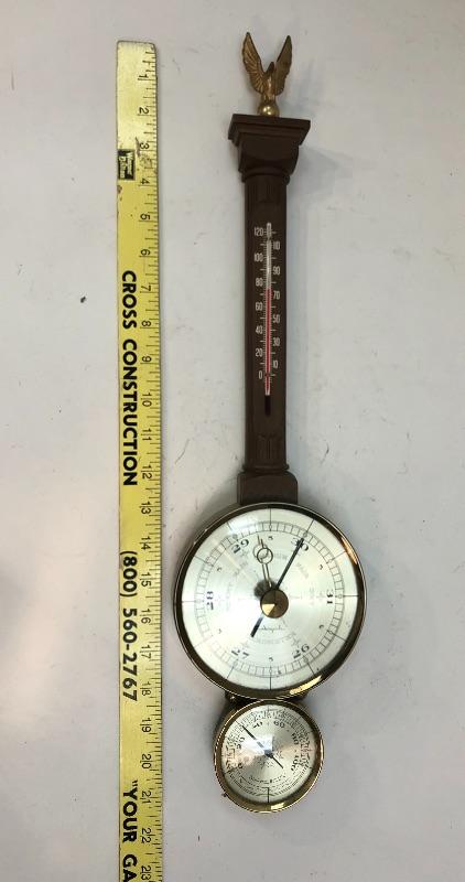 Vintage wall hanging barometer. Has a thermometer and barometer. Eagle at the top. About 21" length. #022-0447