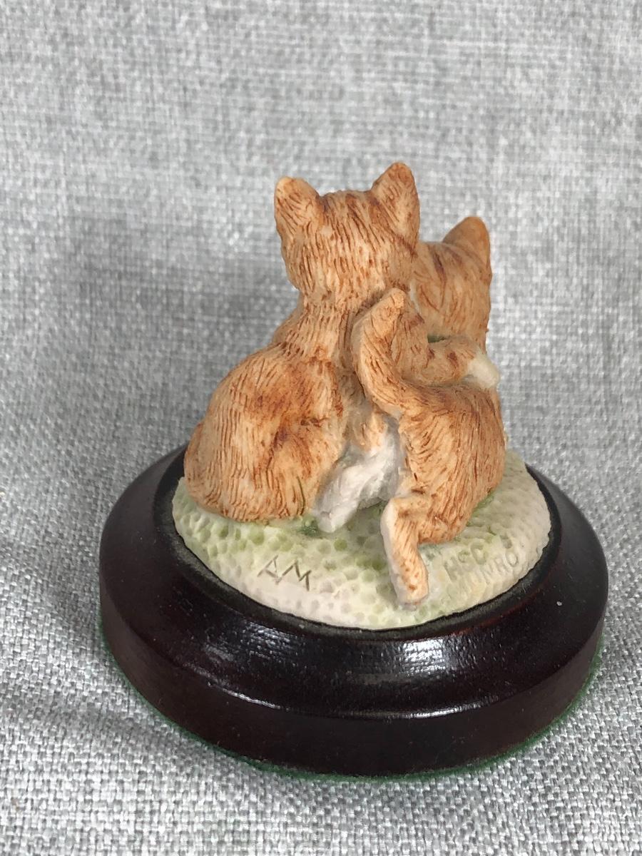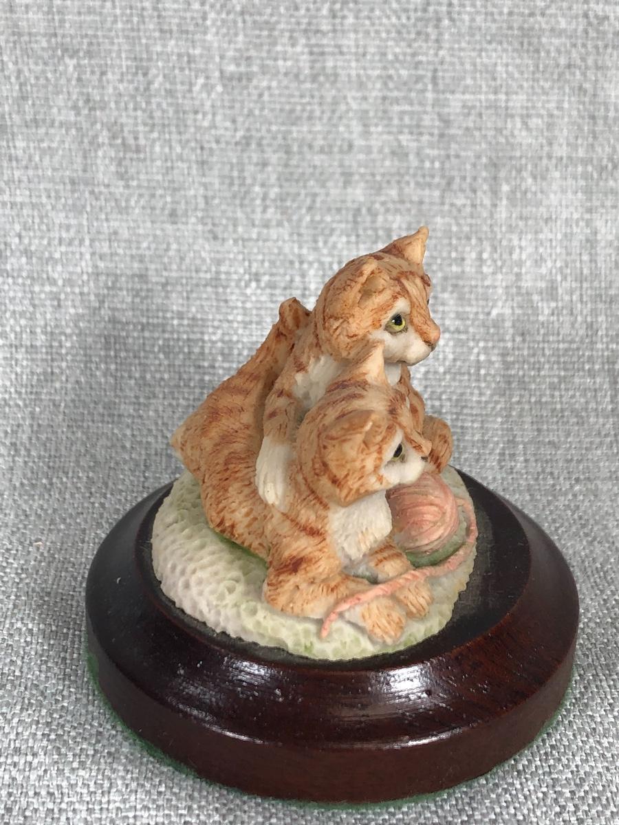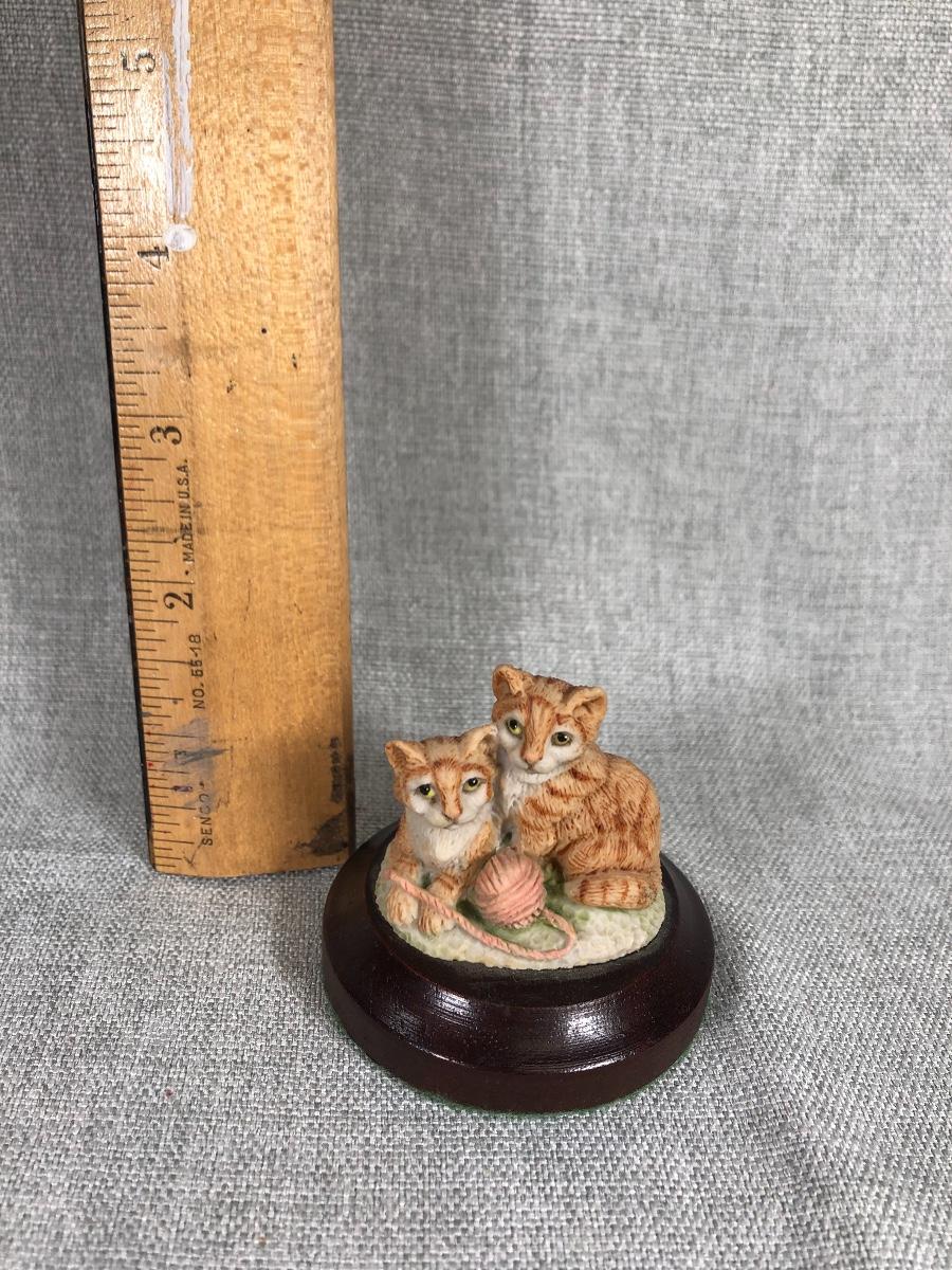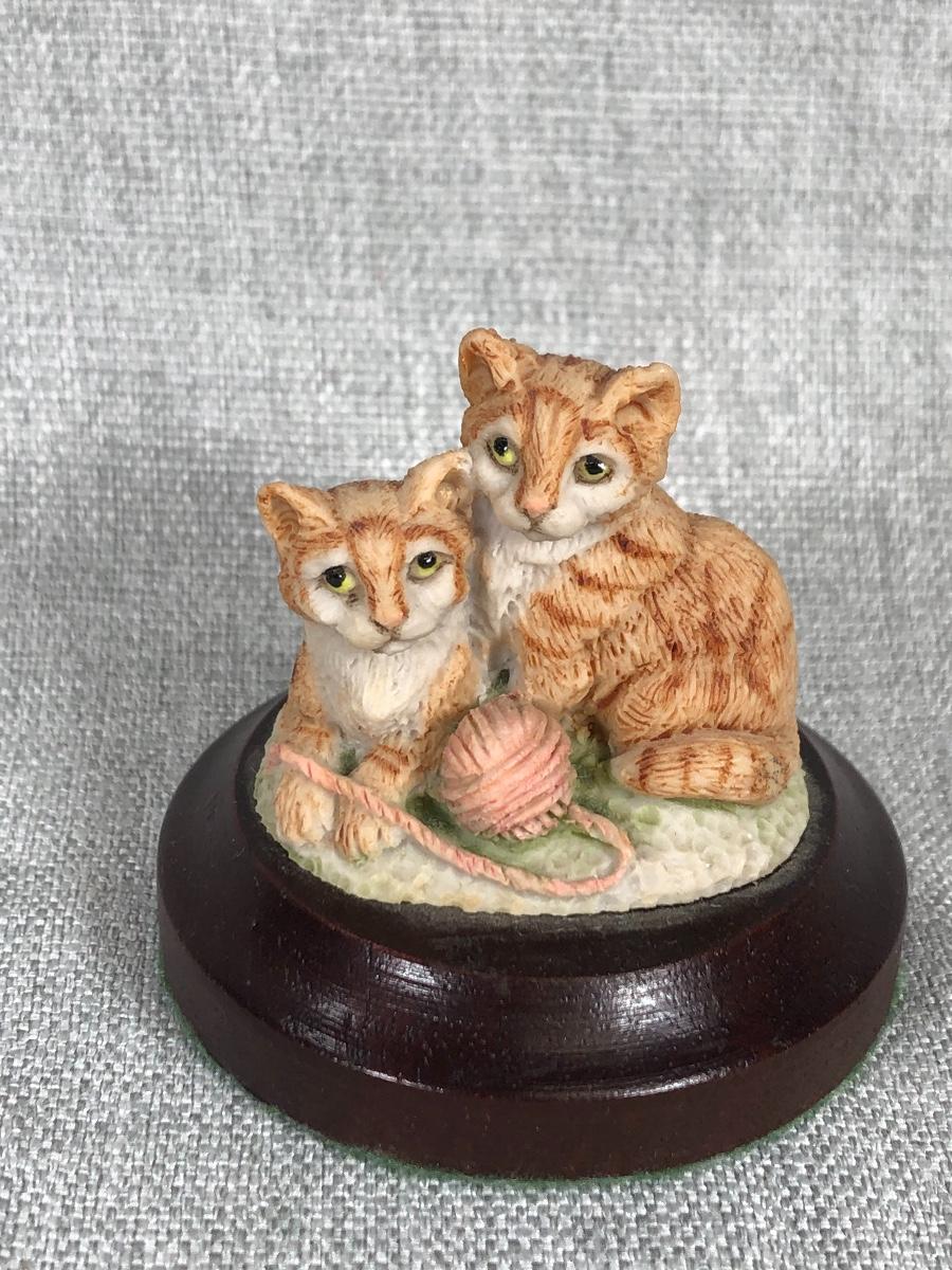 Orange tabby cat miniature figurine. Original sticker on the bottom. Good condition. About 2" size.