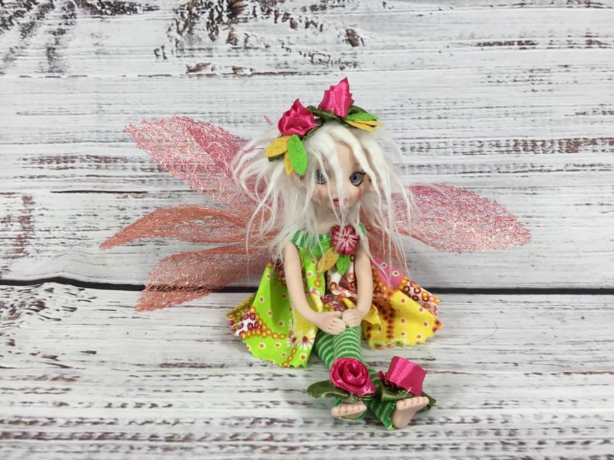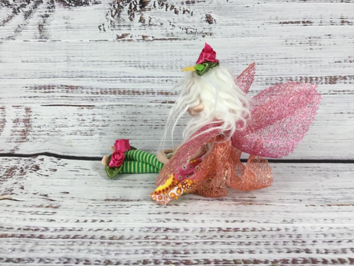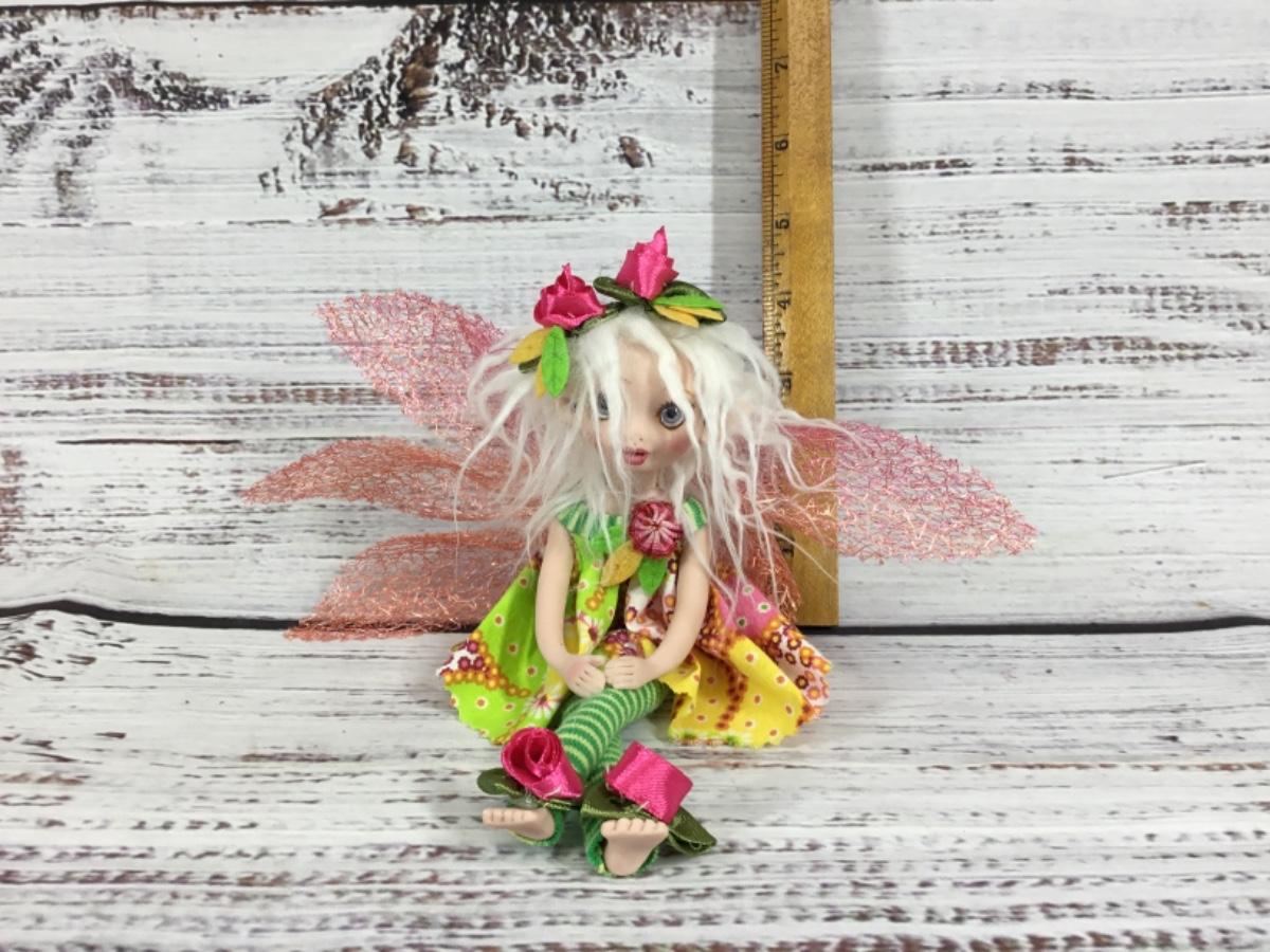Cute polymer clay pixie fairy doll. In a sitting position, about 5" height.