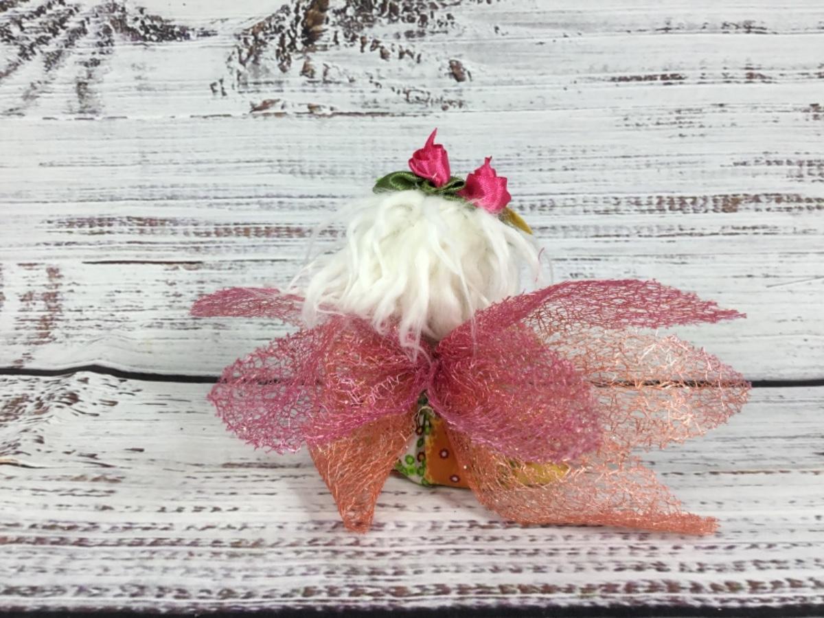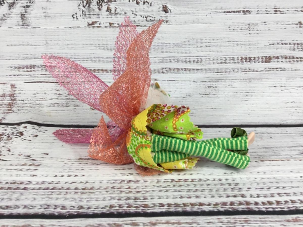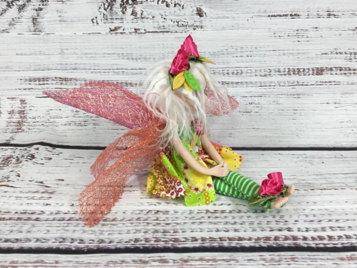 Cute polymer clay pixie fairy doll. In a sitting position, about 5" height.