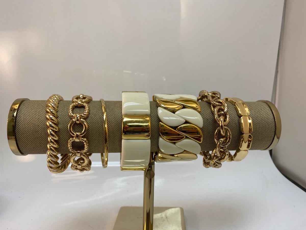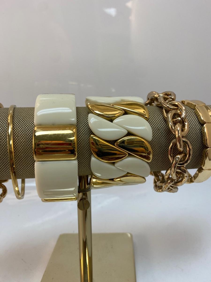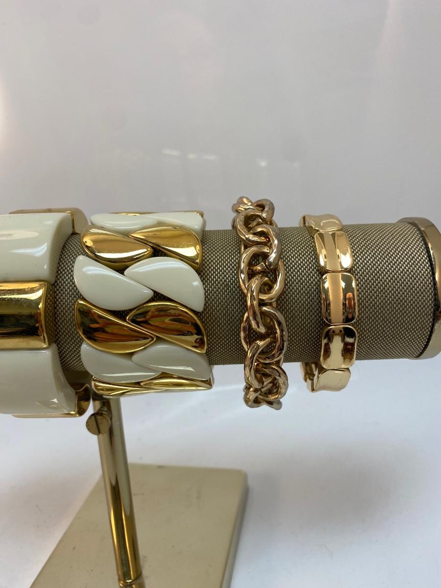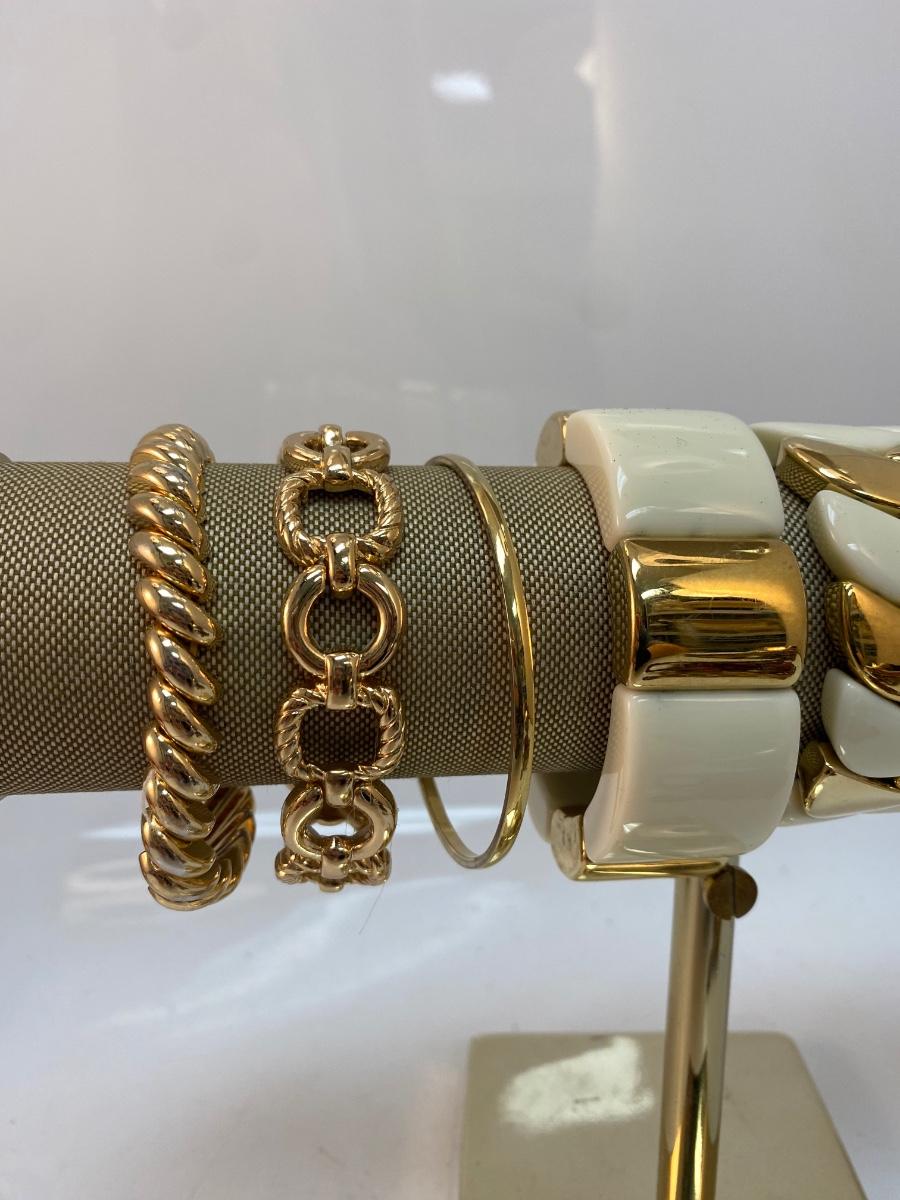 Lot of 7 Gold Tone Fashion Jewlery Bracelets Stretchy Chunky Link Bangle