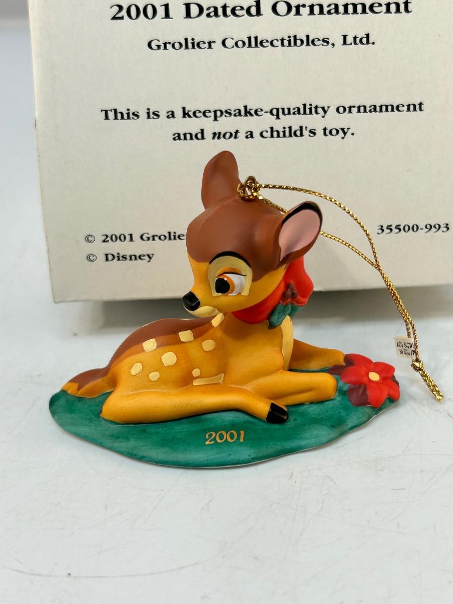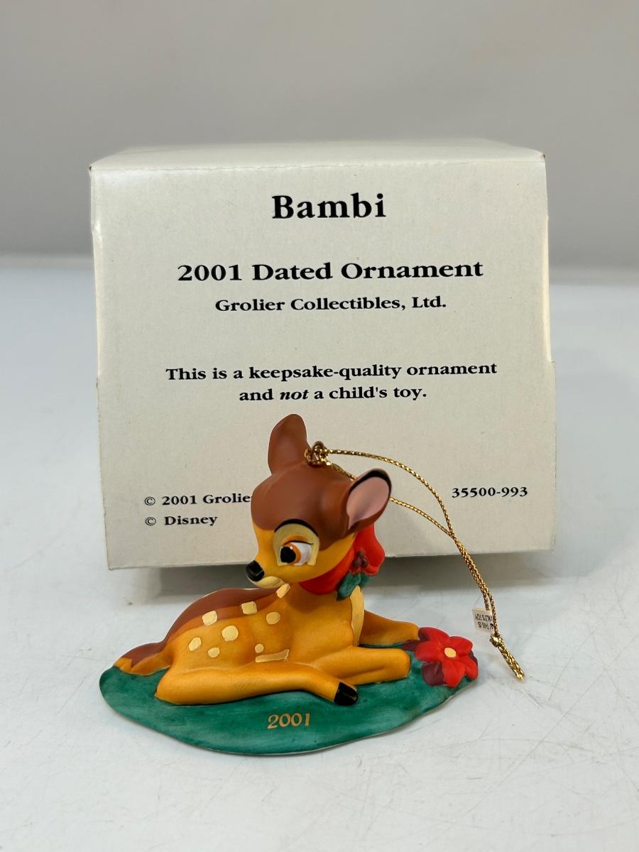 2001 Porcelain Bambi Character Walt Disney Christmas Ornament with Box Grolier Collectible