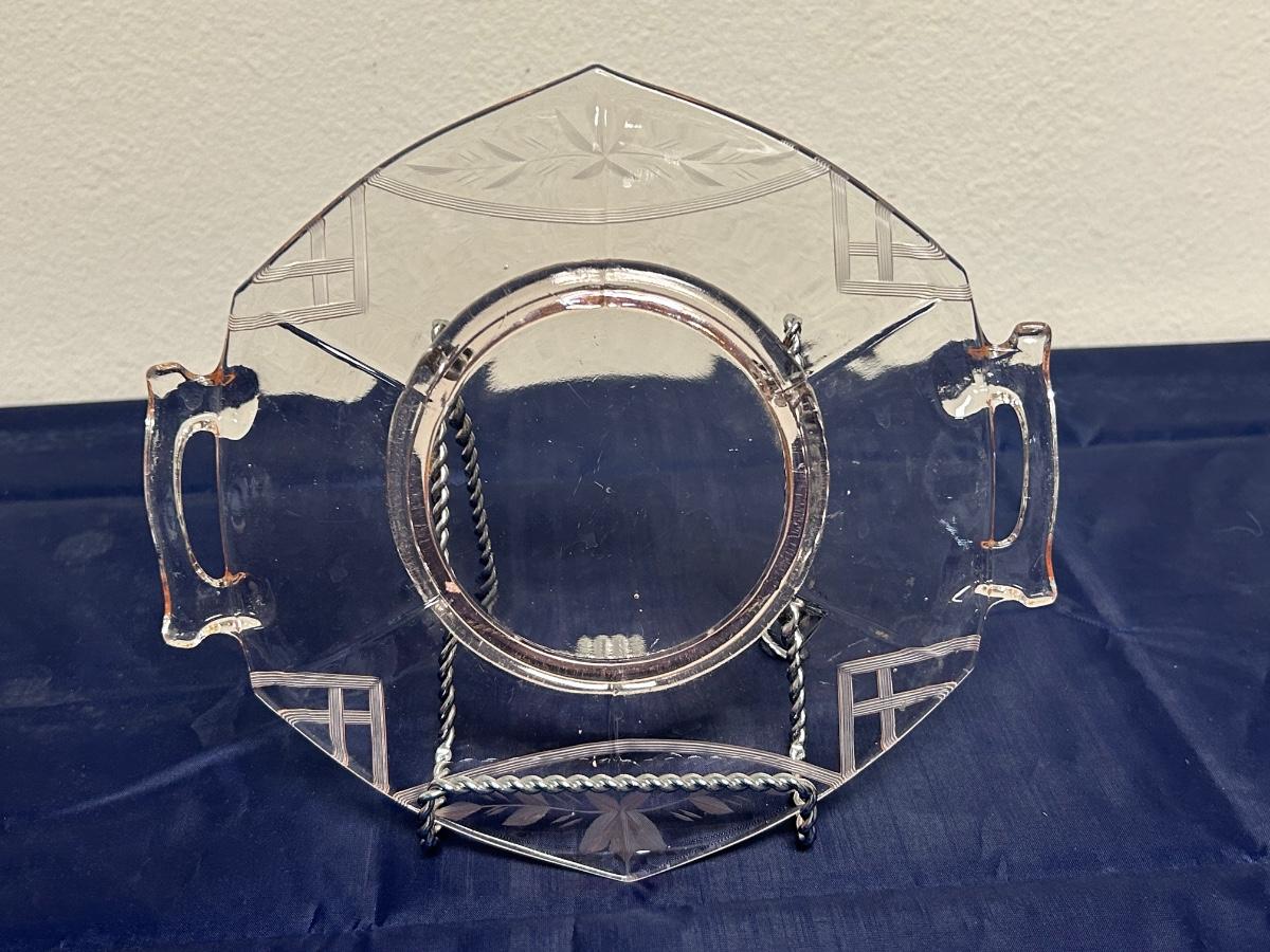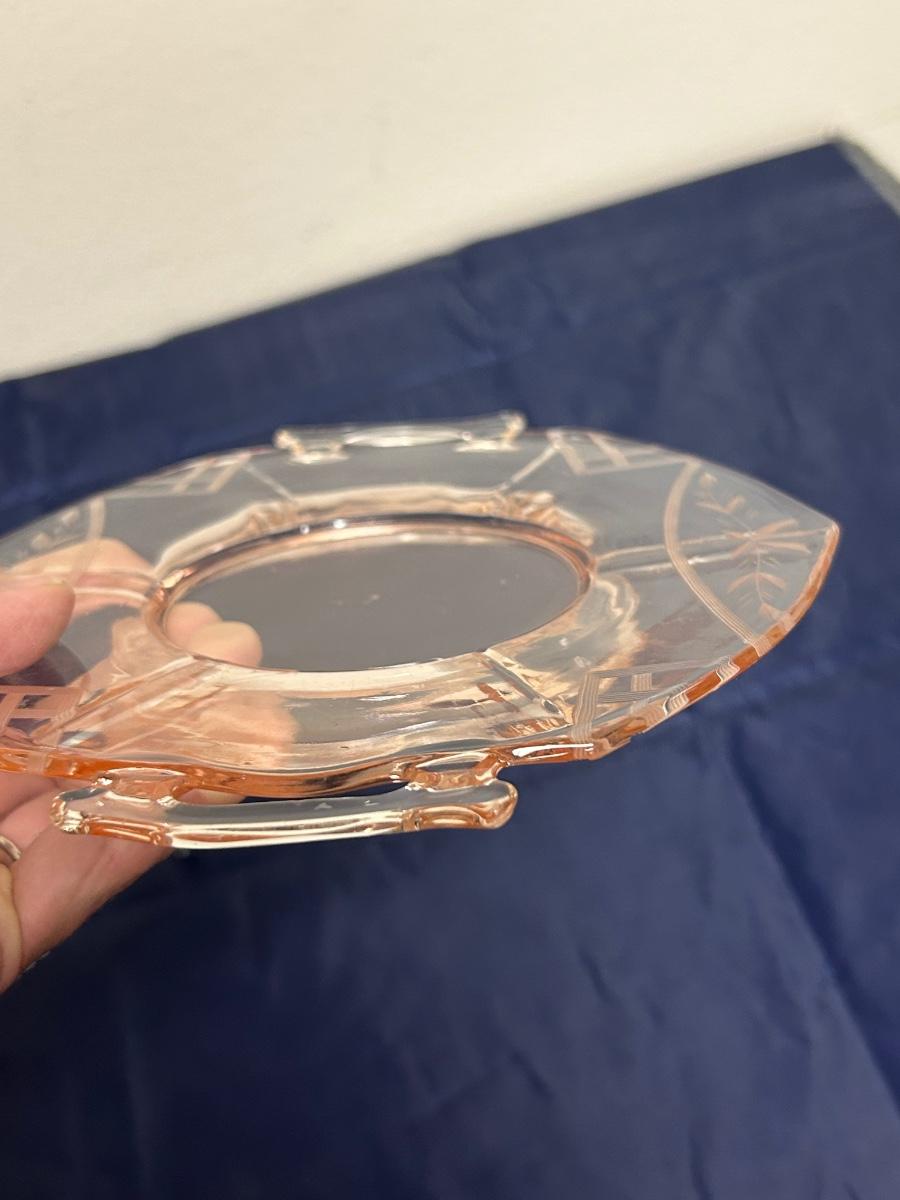 Vintage Depression Glass Pale Peachy Pink Small Double Handle Dessert Plate