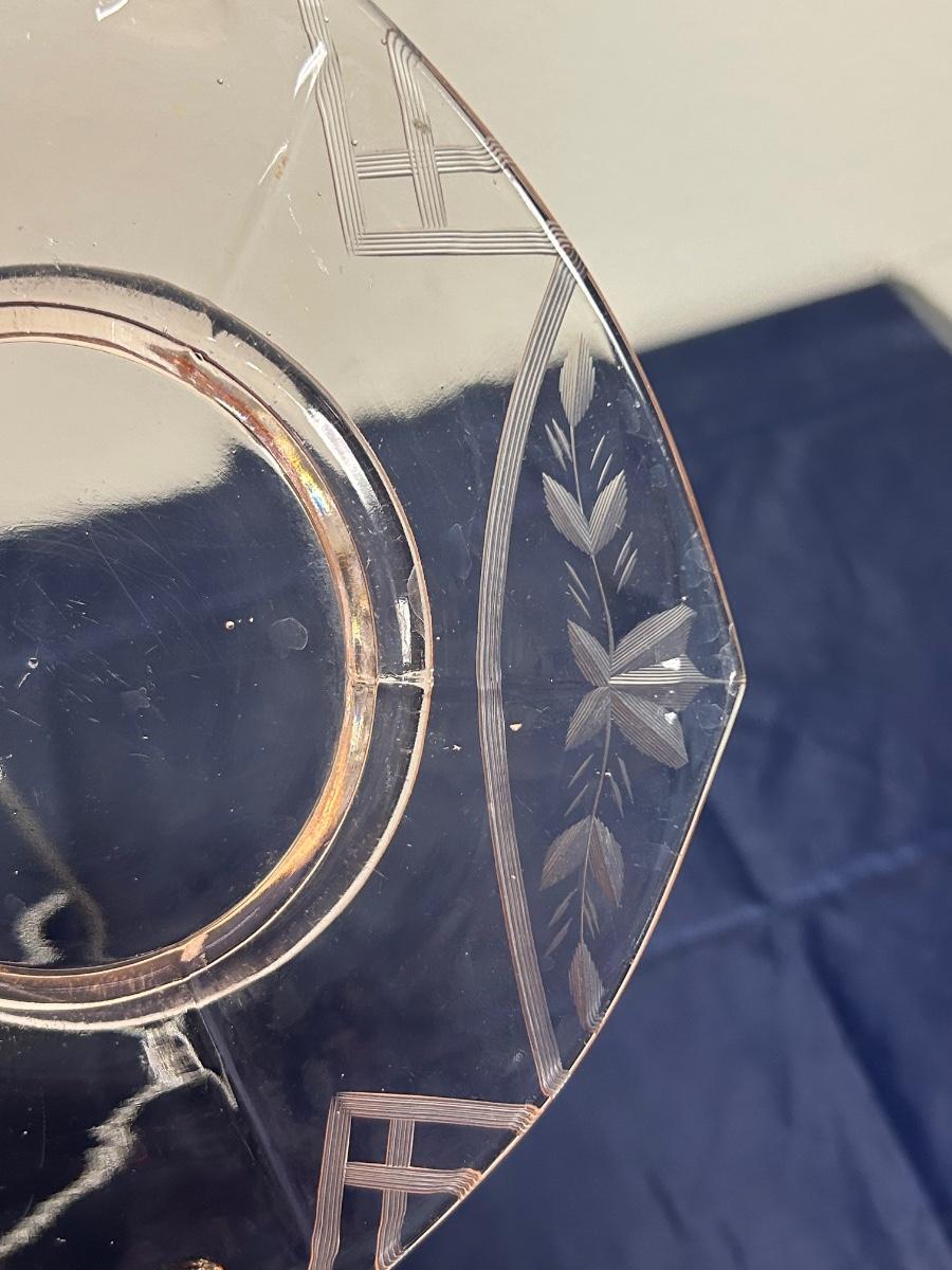 Vintage Depression Glass Pale Peachy Pink Small Double Handle Dessert Plate. In good condition. Super pale color.