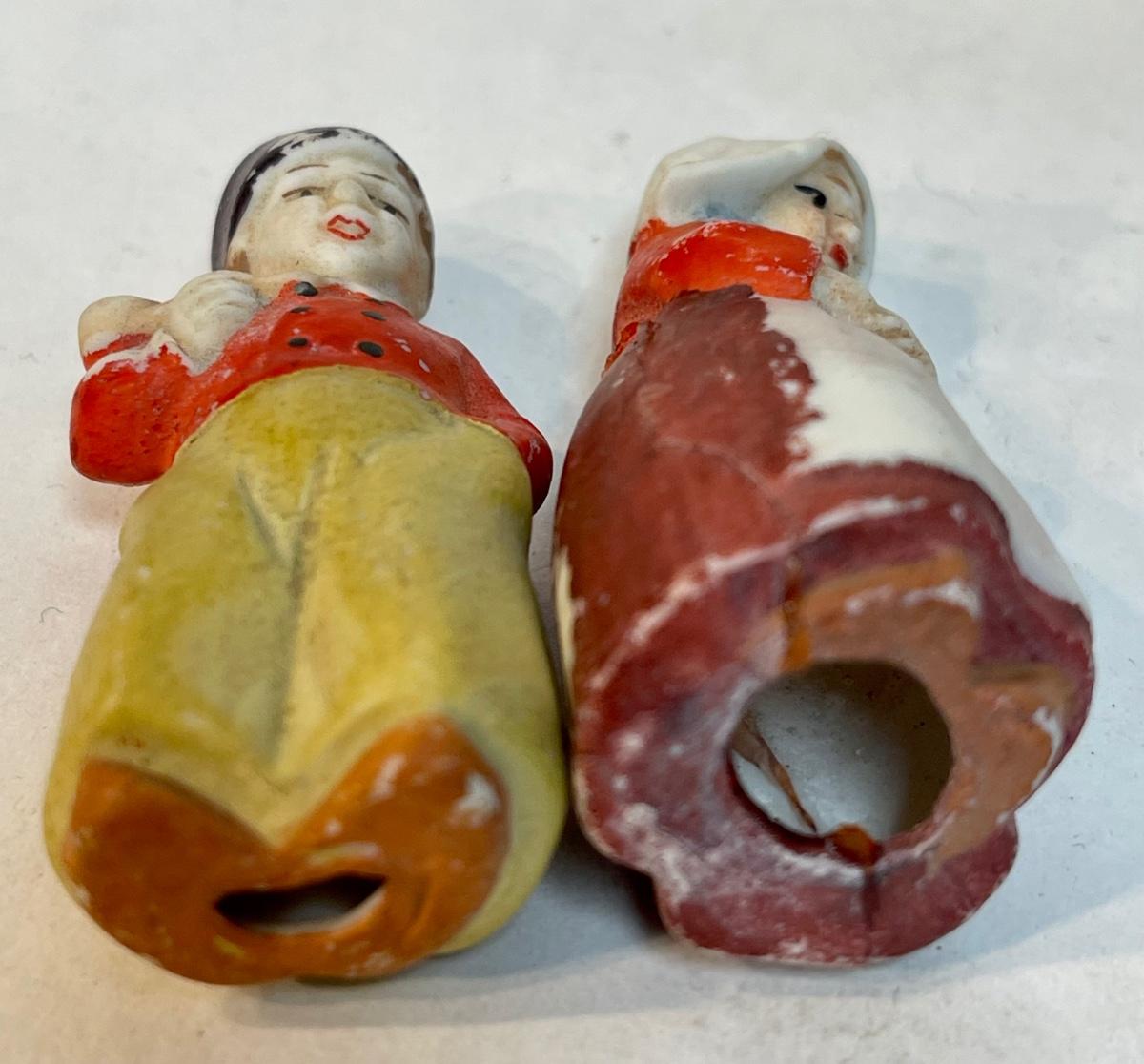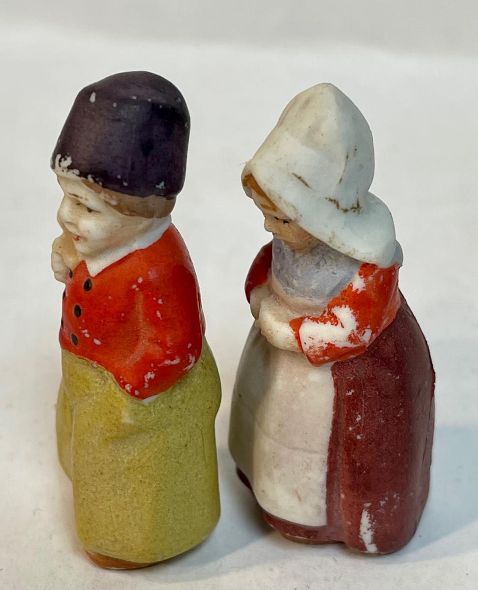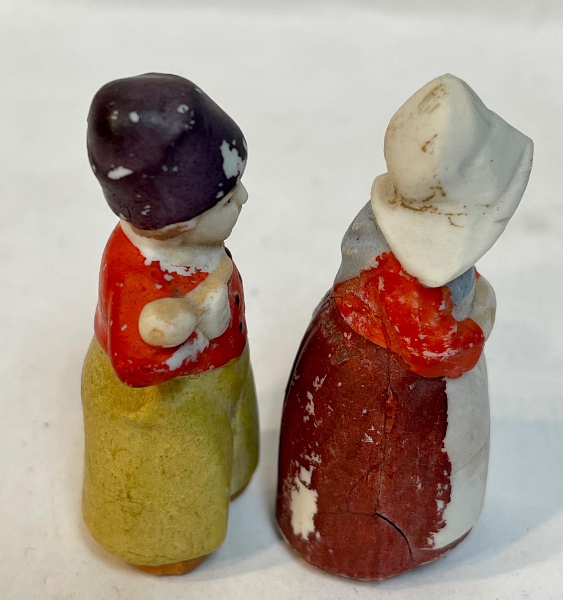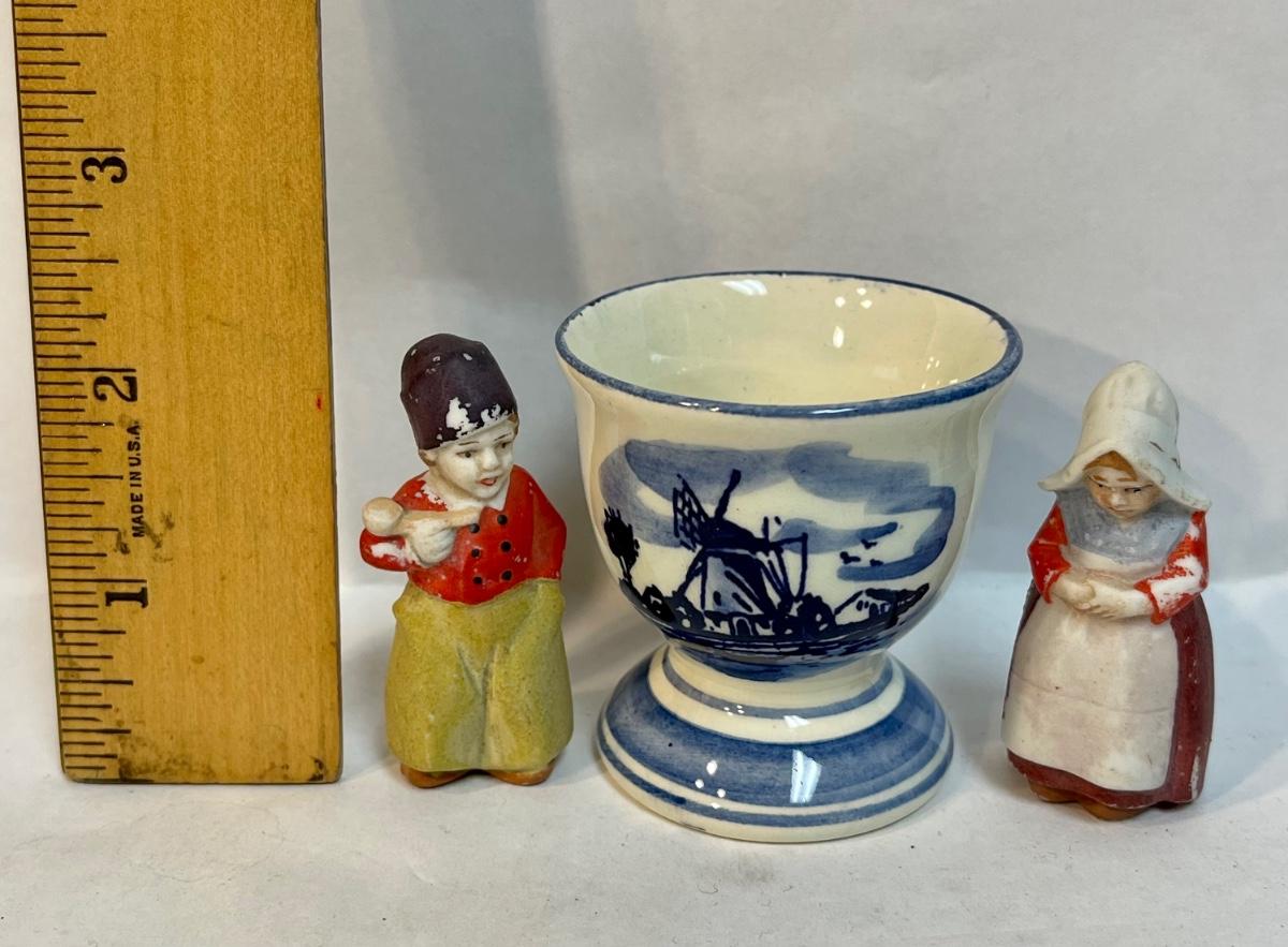 Vintage Bisque Miniature Figurines Man and Woman from Germany plus Delft Blue Egg Cup from Holland
