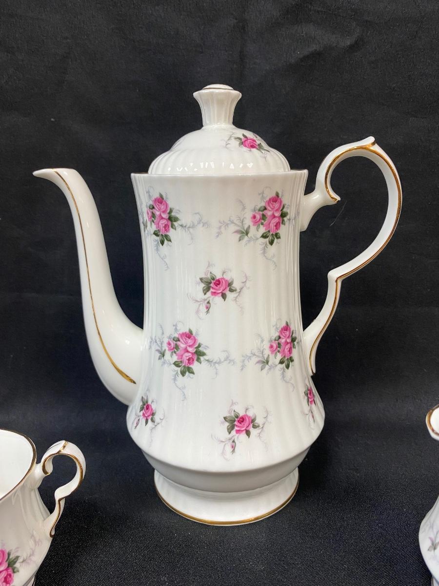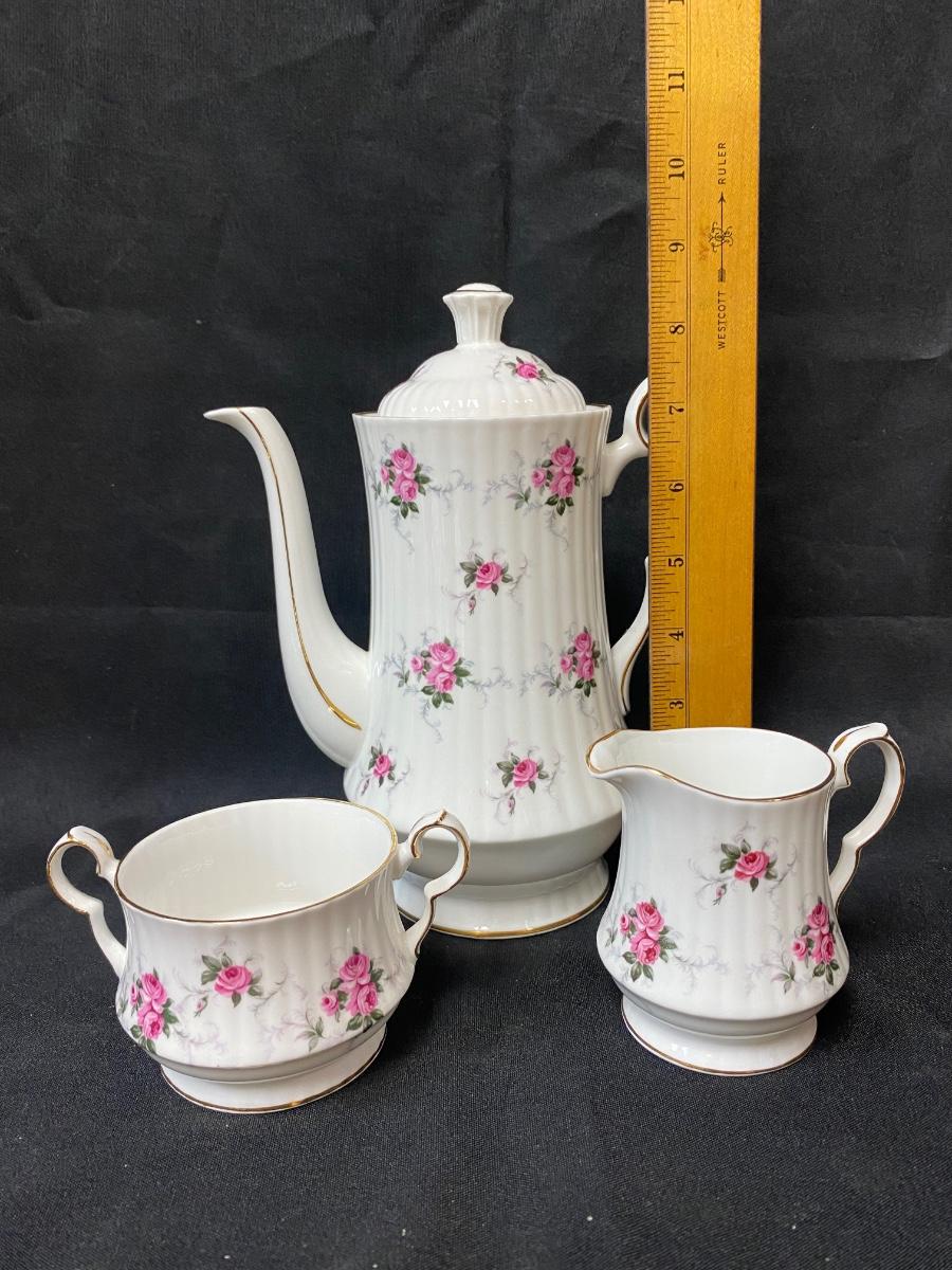 Vintage Princess House Exclusive Hammersley Fine Bone China Pink Rose Flower Teapot with Cream and Sugar