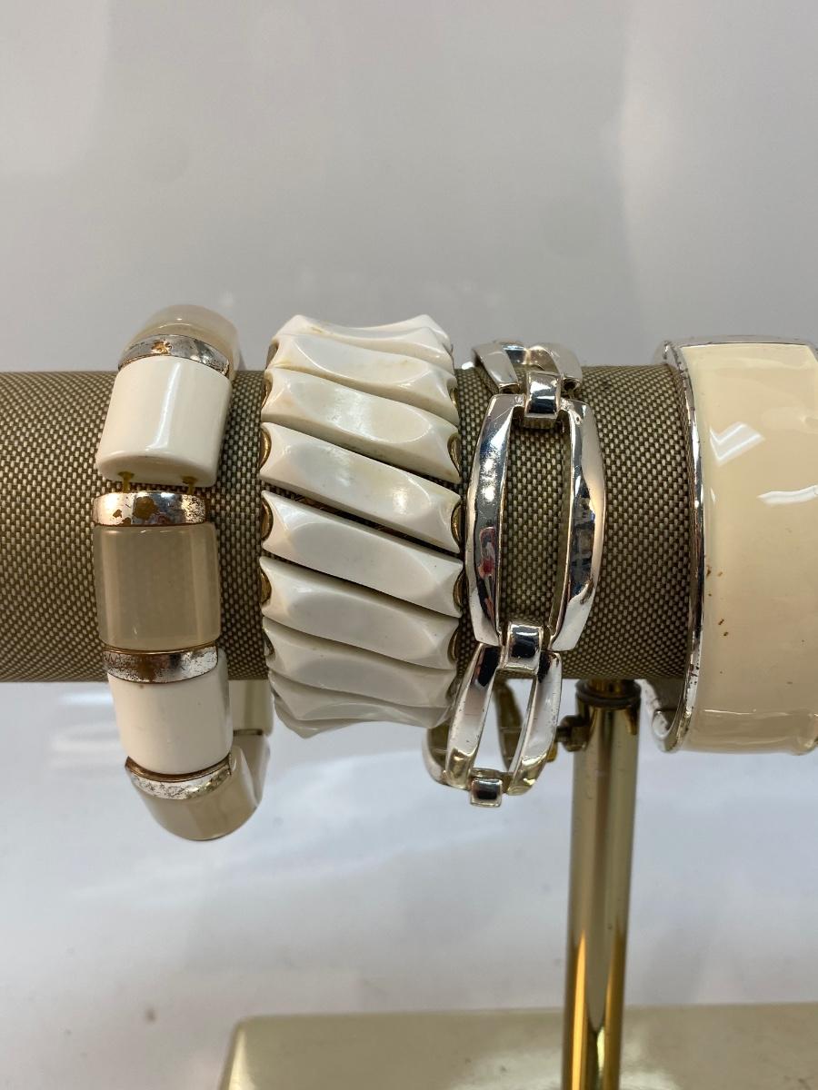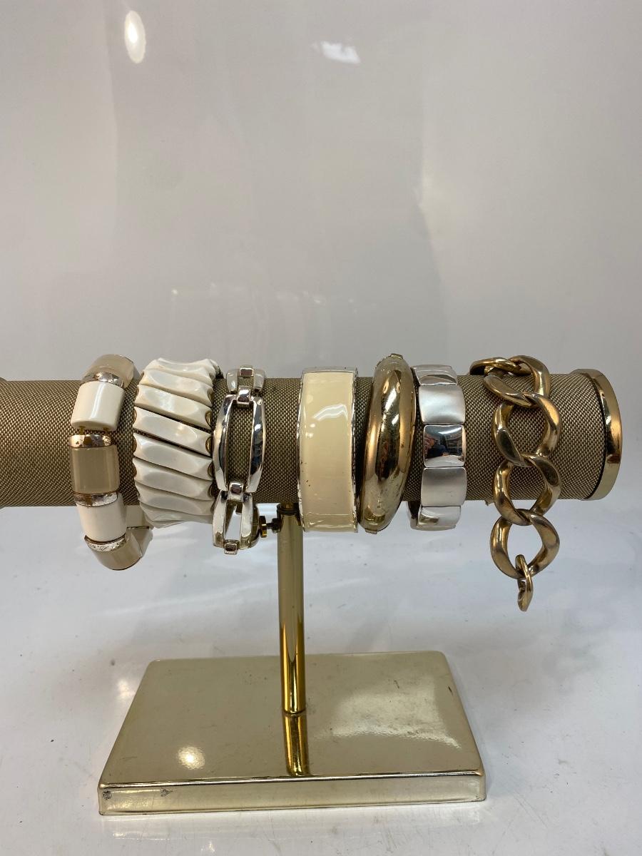 Lot of 7 Fashion Costume Jewelry Bracelets Bangles Cuffs Stretchy Linked Metal
