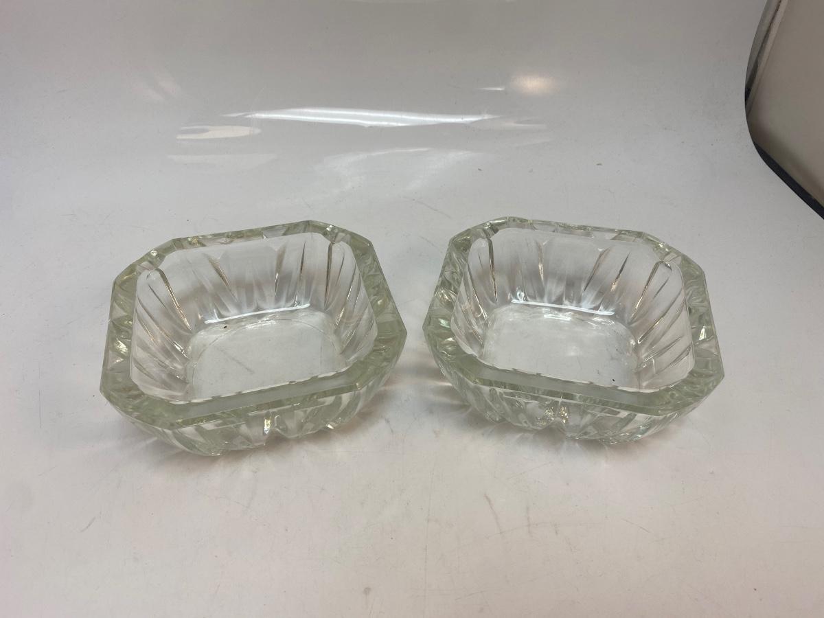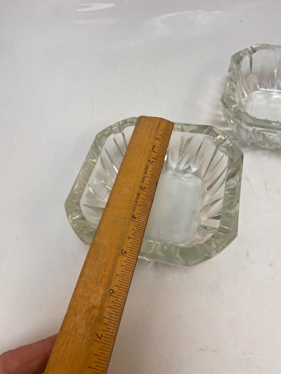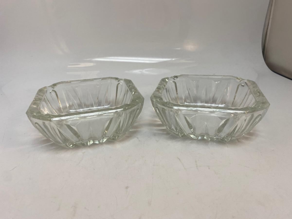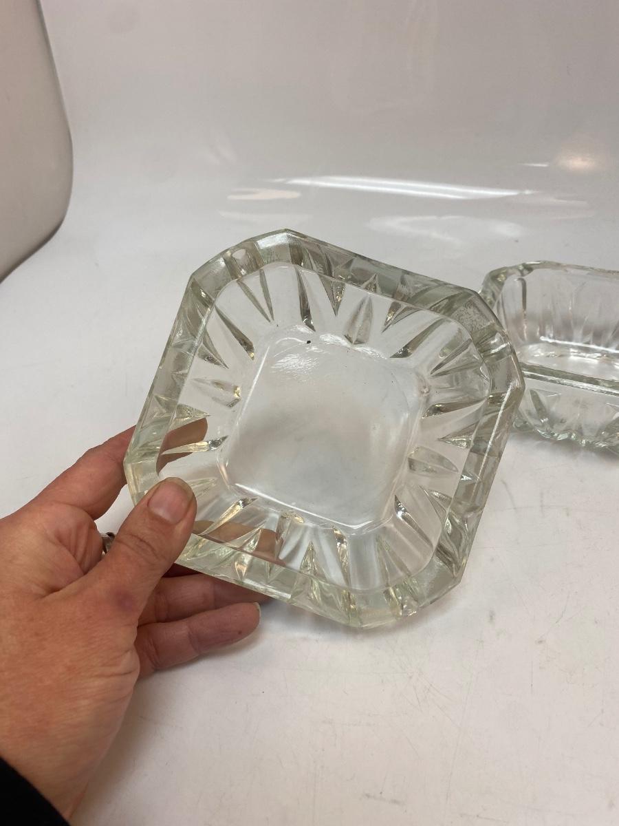 Pair of Heavy Thick Pressed Glass Square Ashtray Trinket Dishes