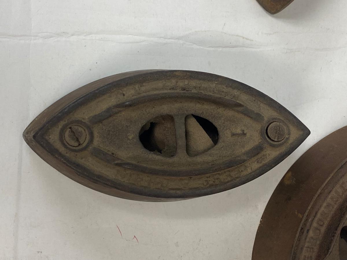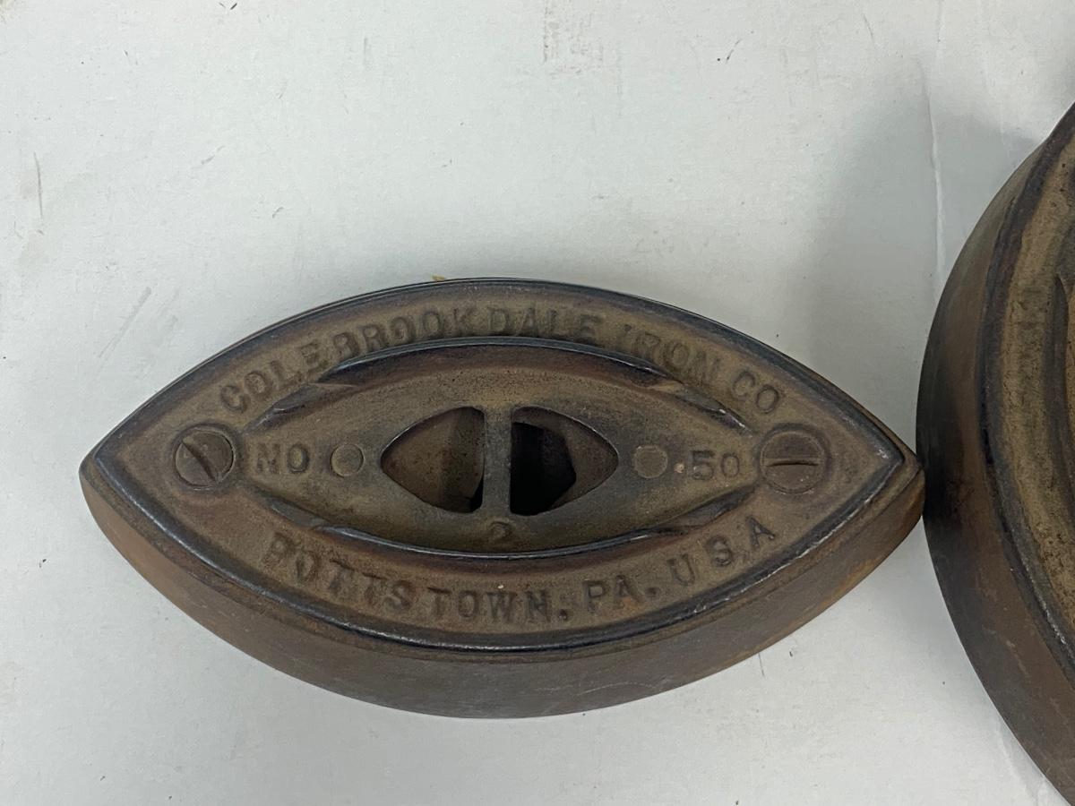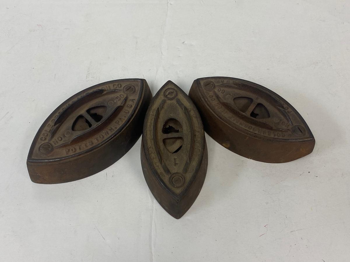 Antique Lot of 3 Cast Metal Sad Irons Colebrookdale Co Pottstown PA