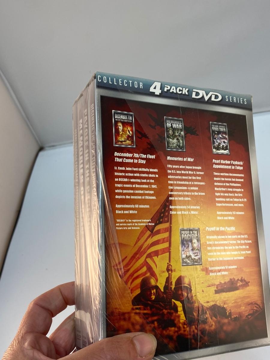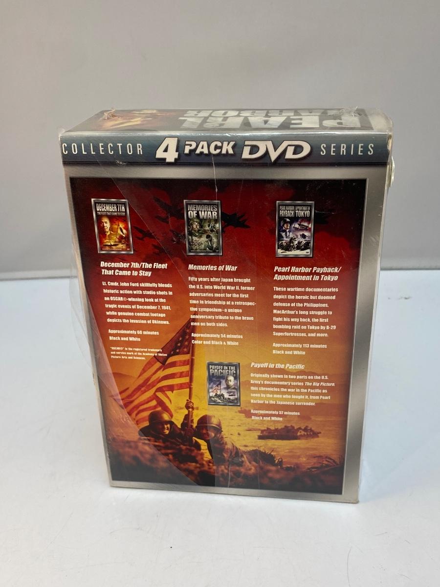 Sealed Unopened 4 DVD Pack Collector Series Pearl Harbor Documentary Films. Unopened, but plastic cover has split in one spot from age.