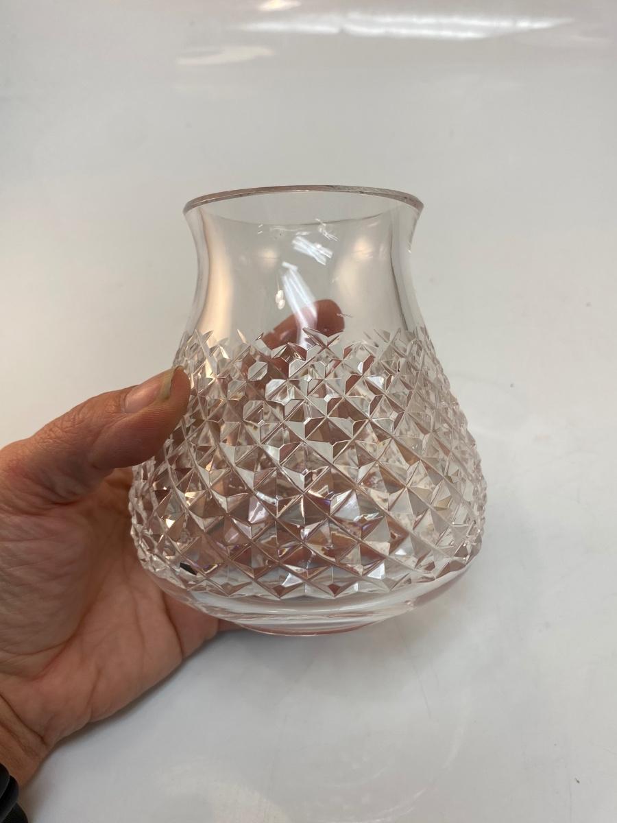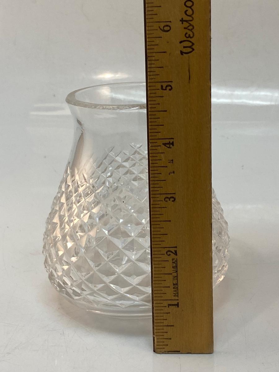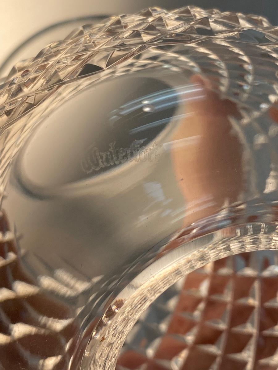 Diamond Cut Waterford Crystal Hurricane Lamp Shade Cover. Does not include a base piece. Stamped Waterford on the bottom. In good condition. About 4.5" tall.