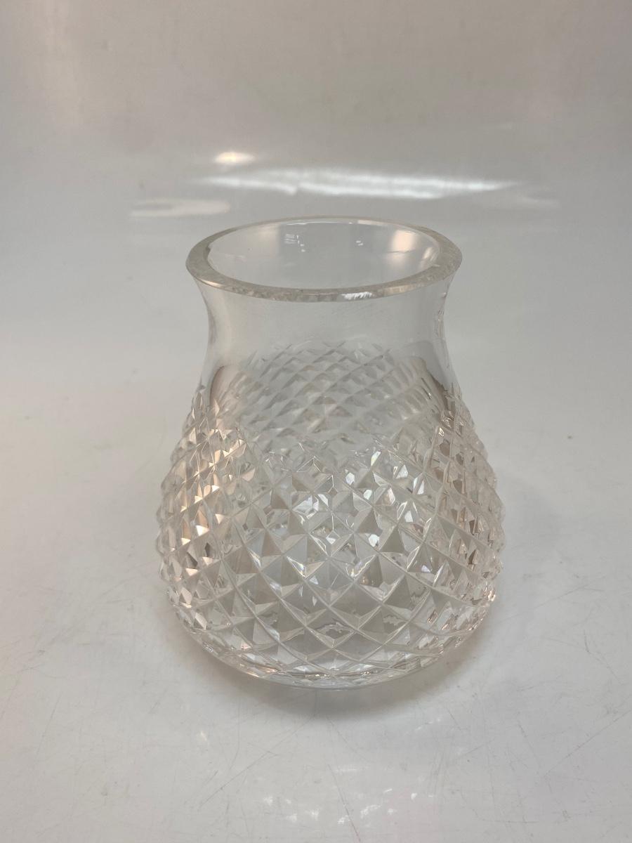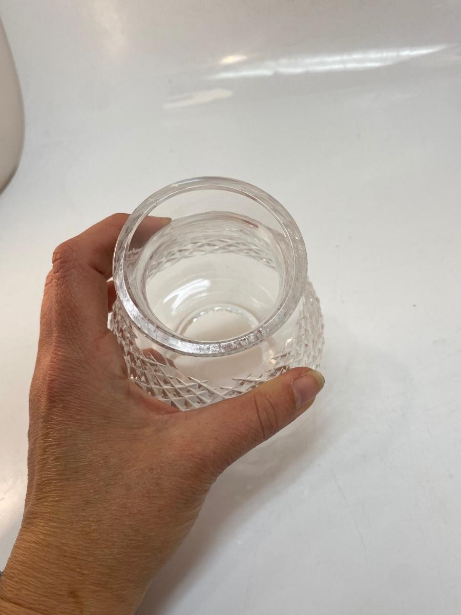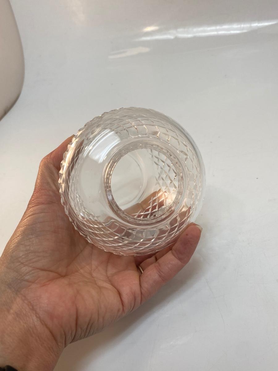 Diamond Cut Waterford Crystal Hurricane Lamp Shade Cover. Does not include a base piece. Stamped Waterford on the bottom. In good condition. About 4.5" tall.