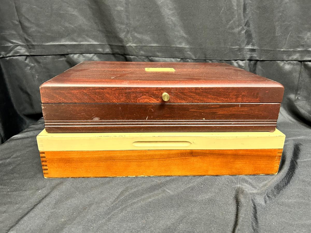 Pair of Vintage Felt Lined Silverware Flatware Storage Boxes *No Flatware Included*