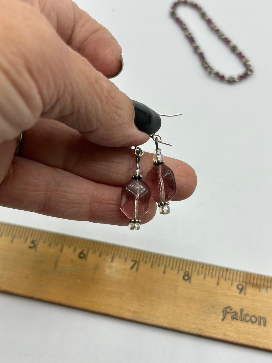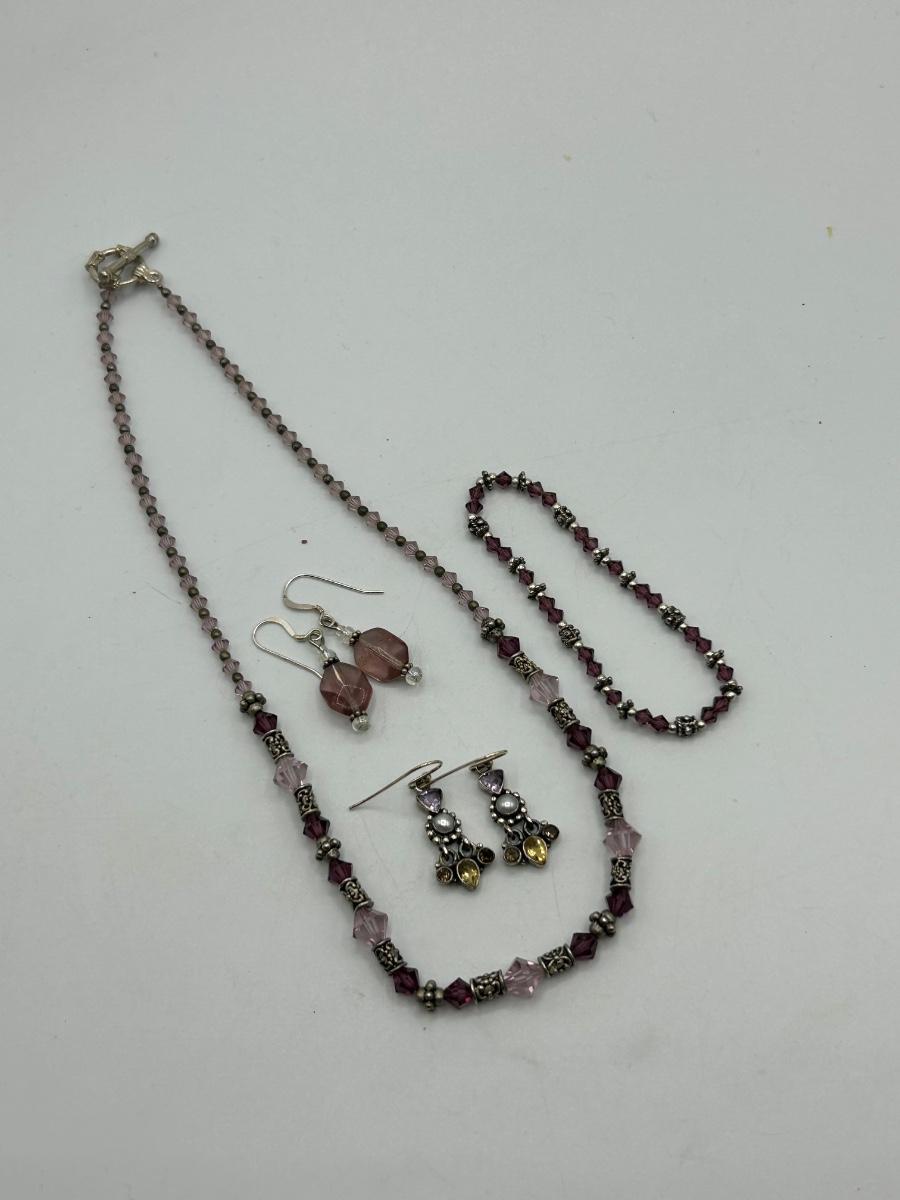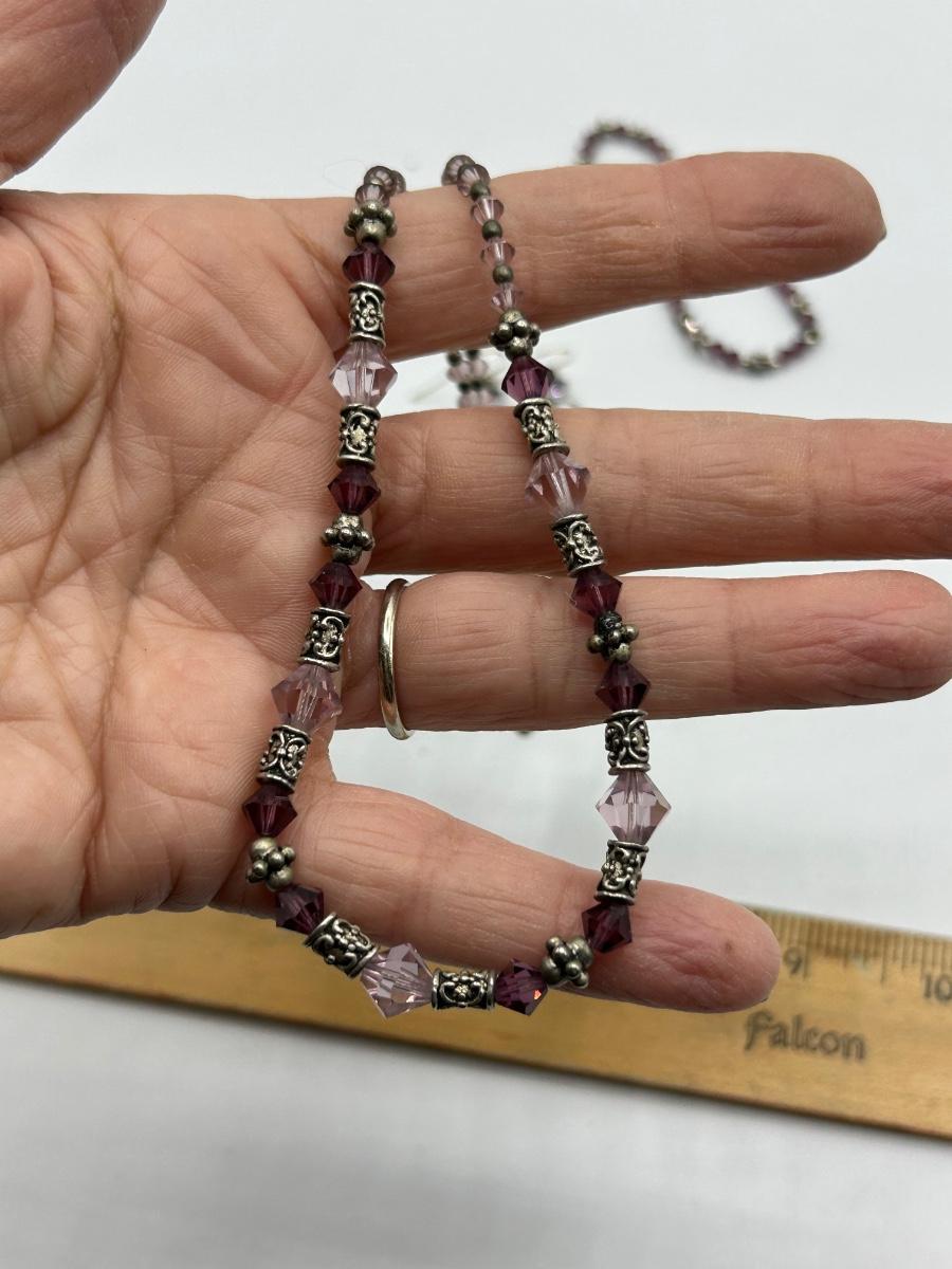 4 Piece Jewelry Set Purple Violet Faceted Crystal Necklace Bracelet and Earrings. All pieces are in good condition. Wear together or separate.