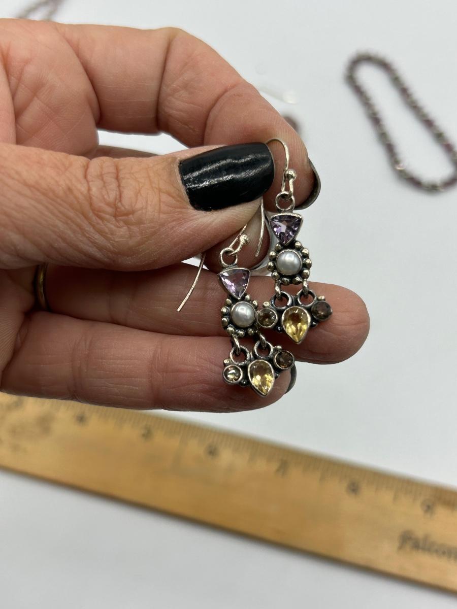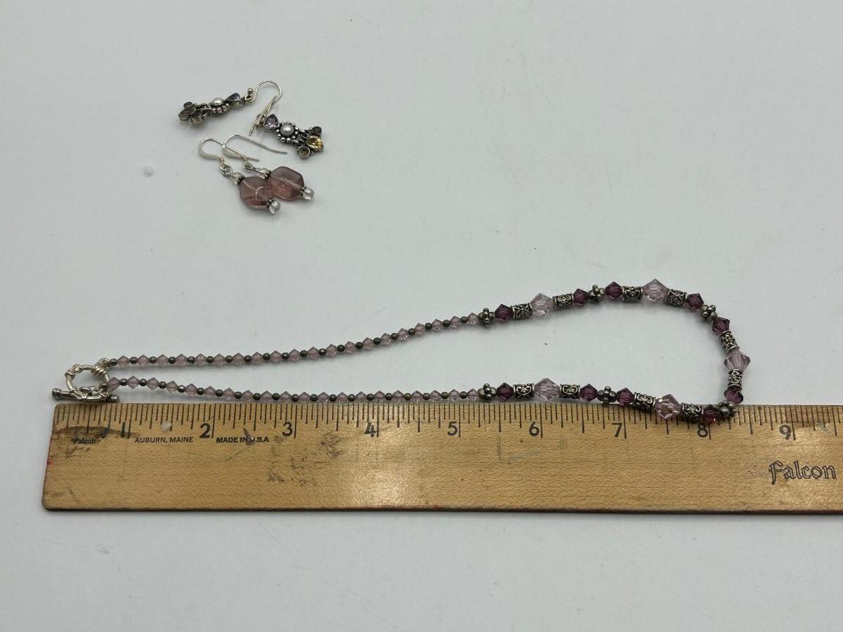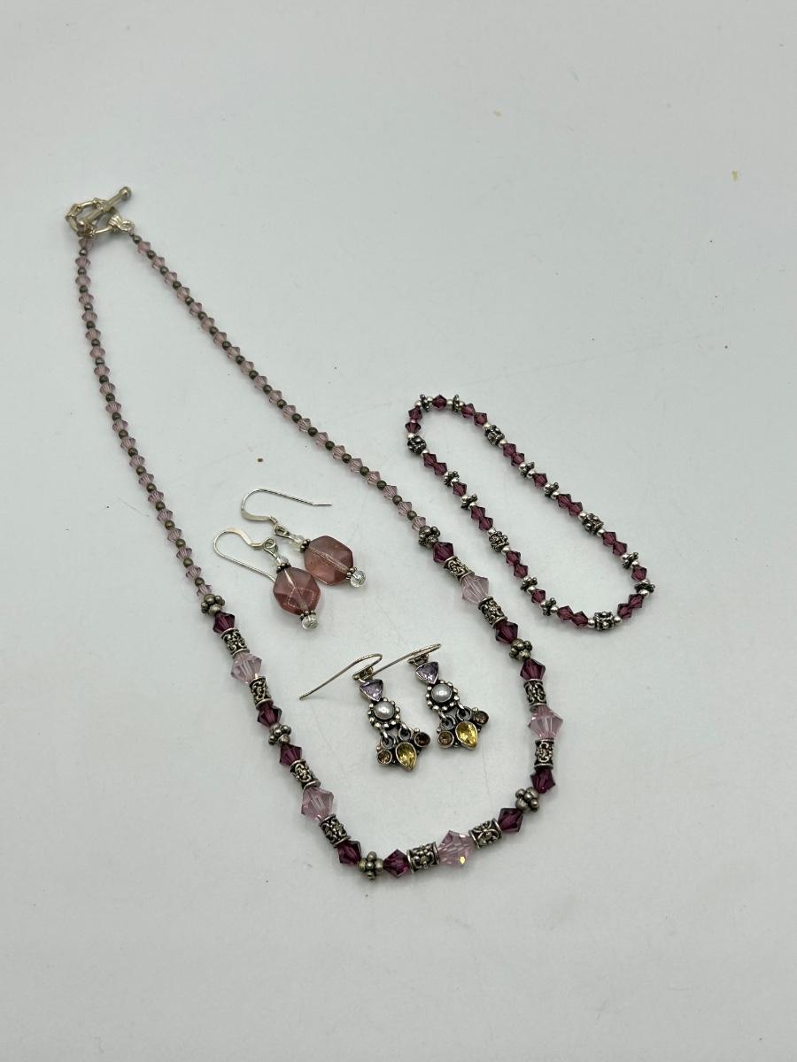 4 Piece Jewelry Set Purple Violet Faceted Crystal Necklace Bracelet and Earrings. All pieces are in good condition. Wear together or separate.