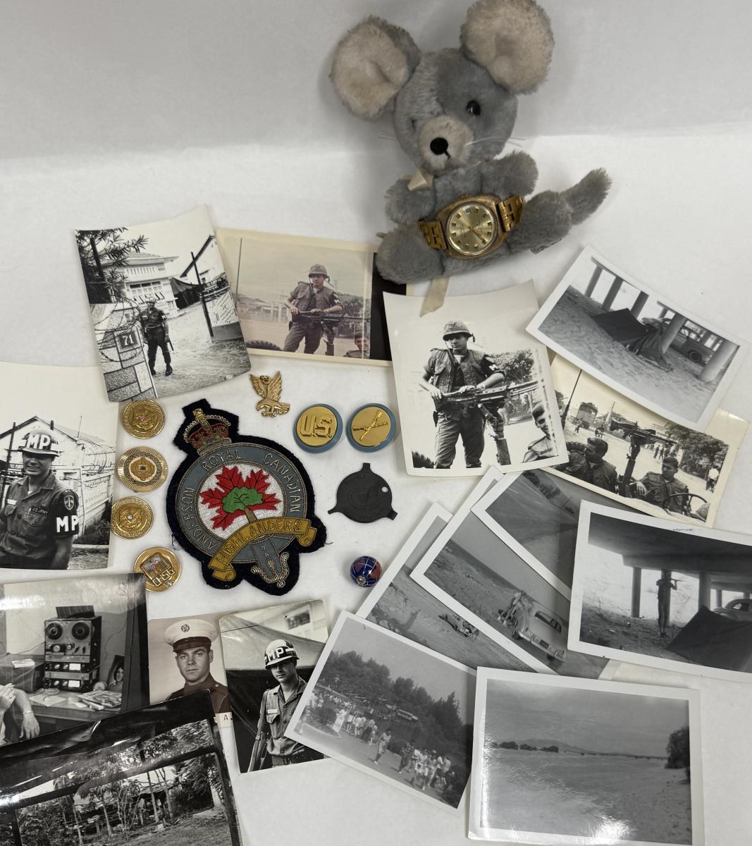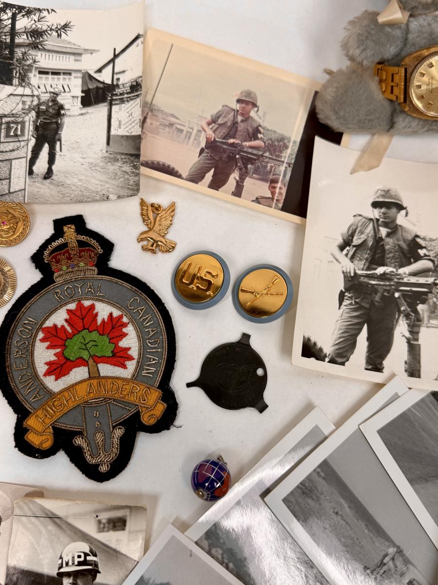 From the 1960's and 1970"s, includes photographs, insignia pins, patches, and more. See photos for what's included.