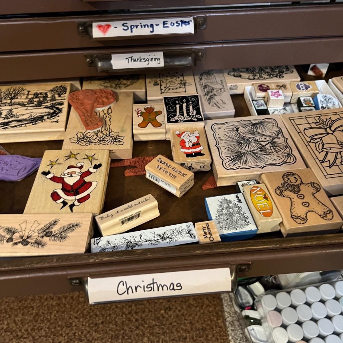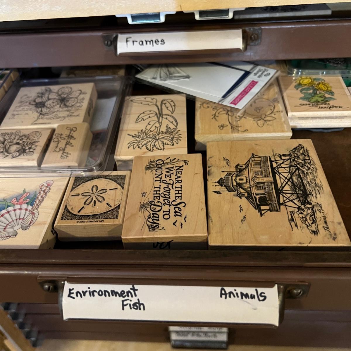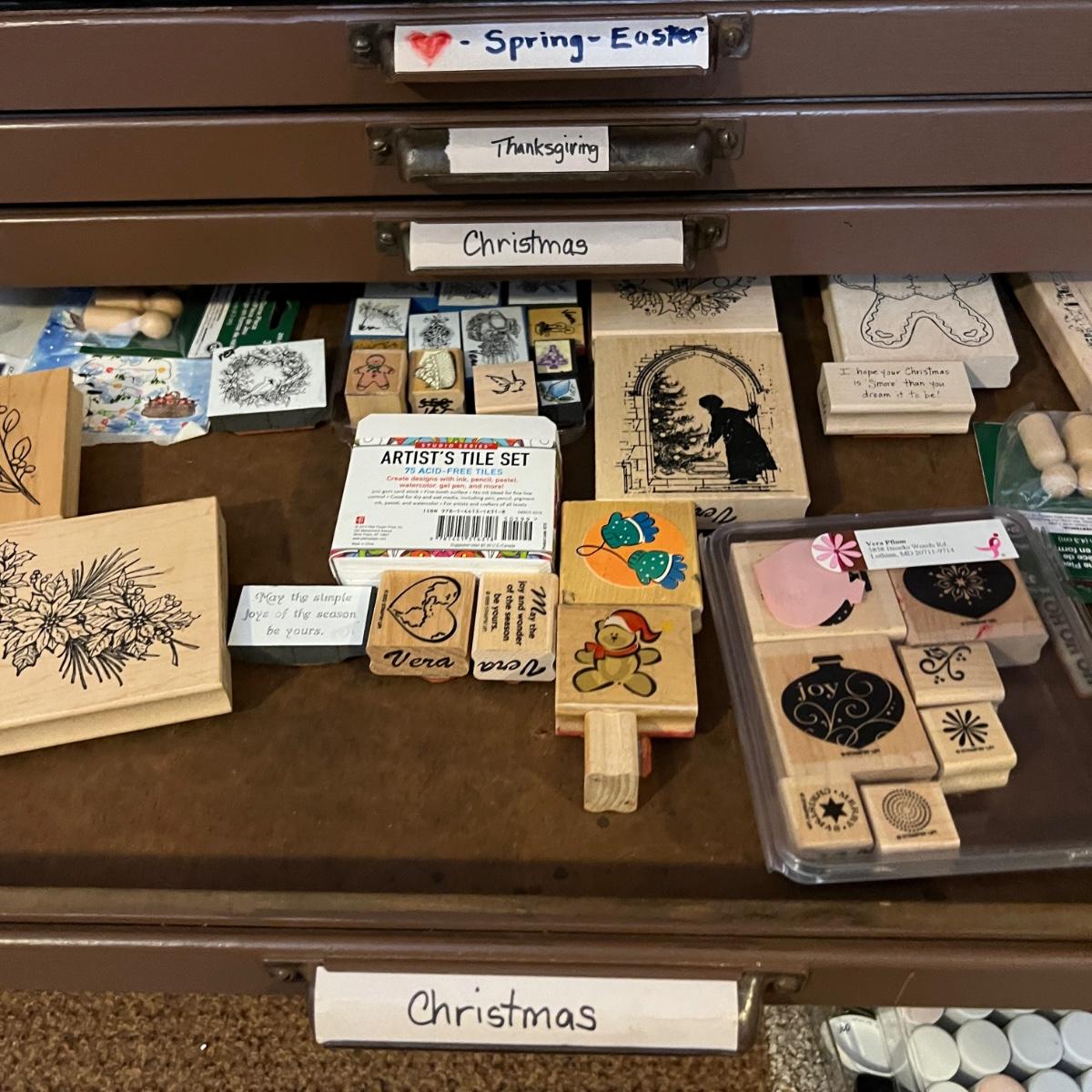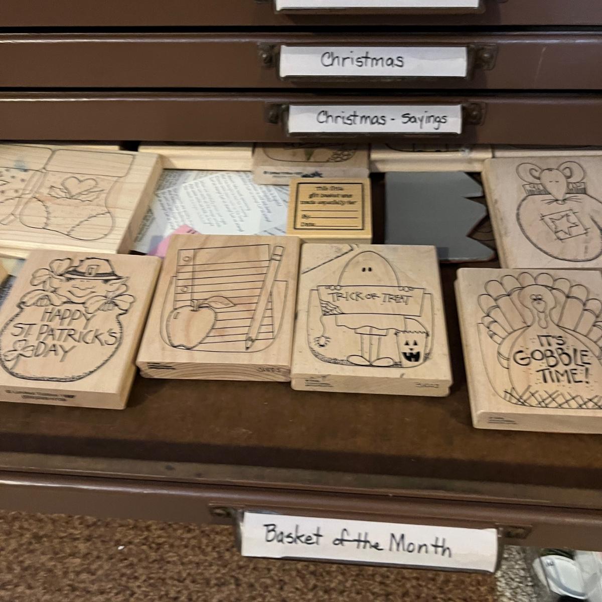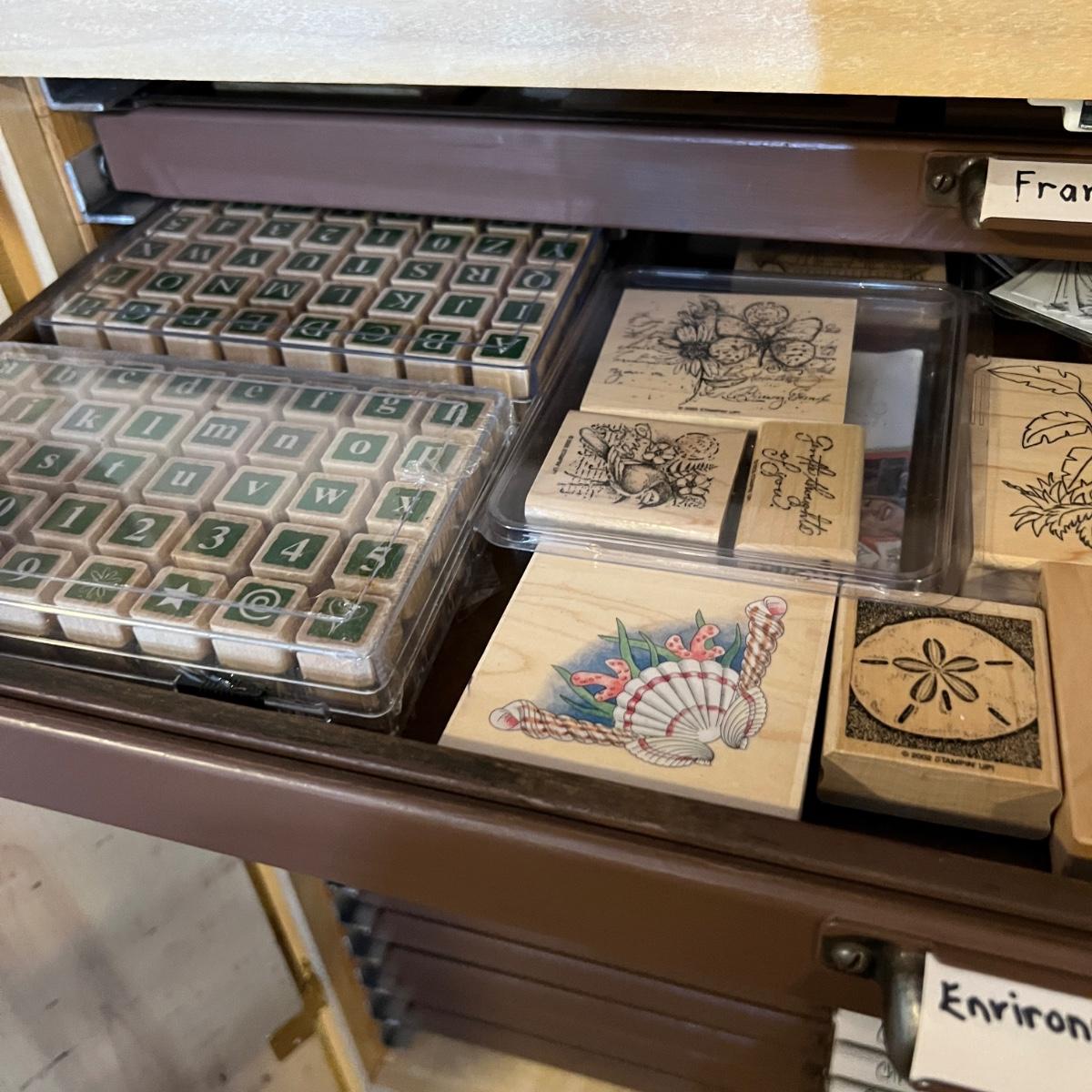 HUGE LOT - 17 Drawers of Wood Block Stamps + Ink - Crafting