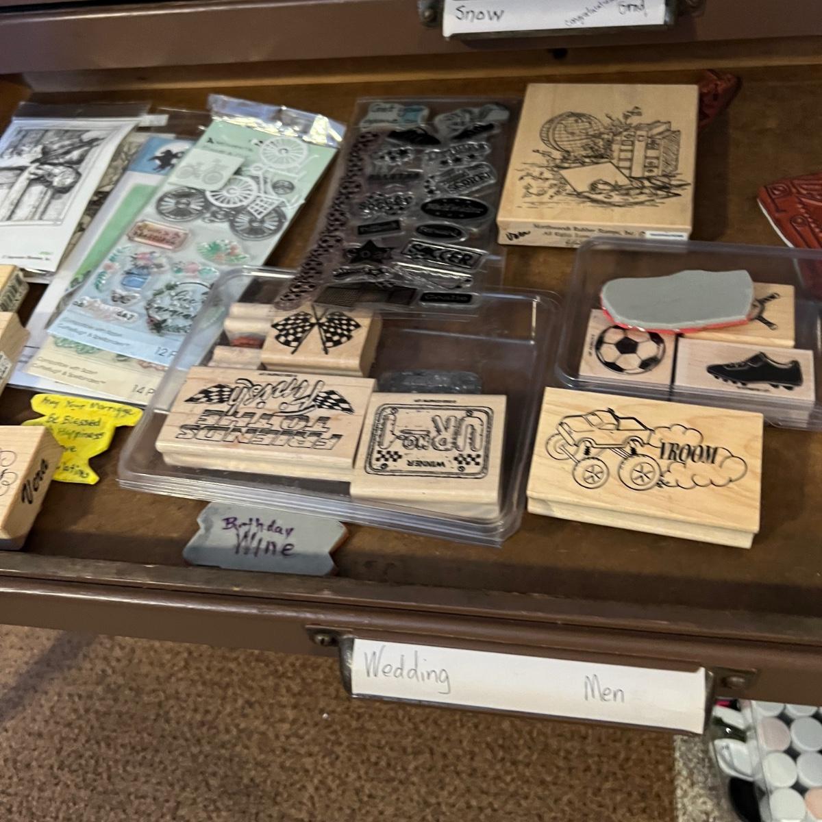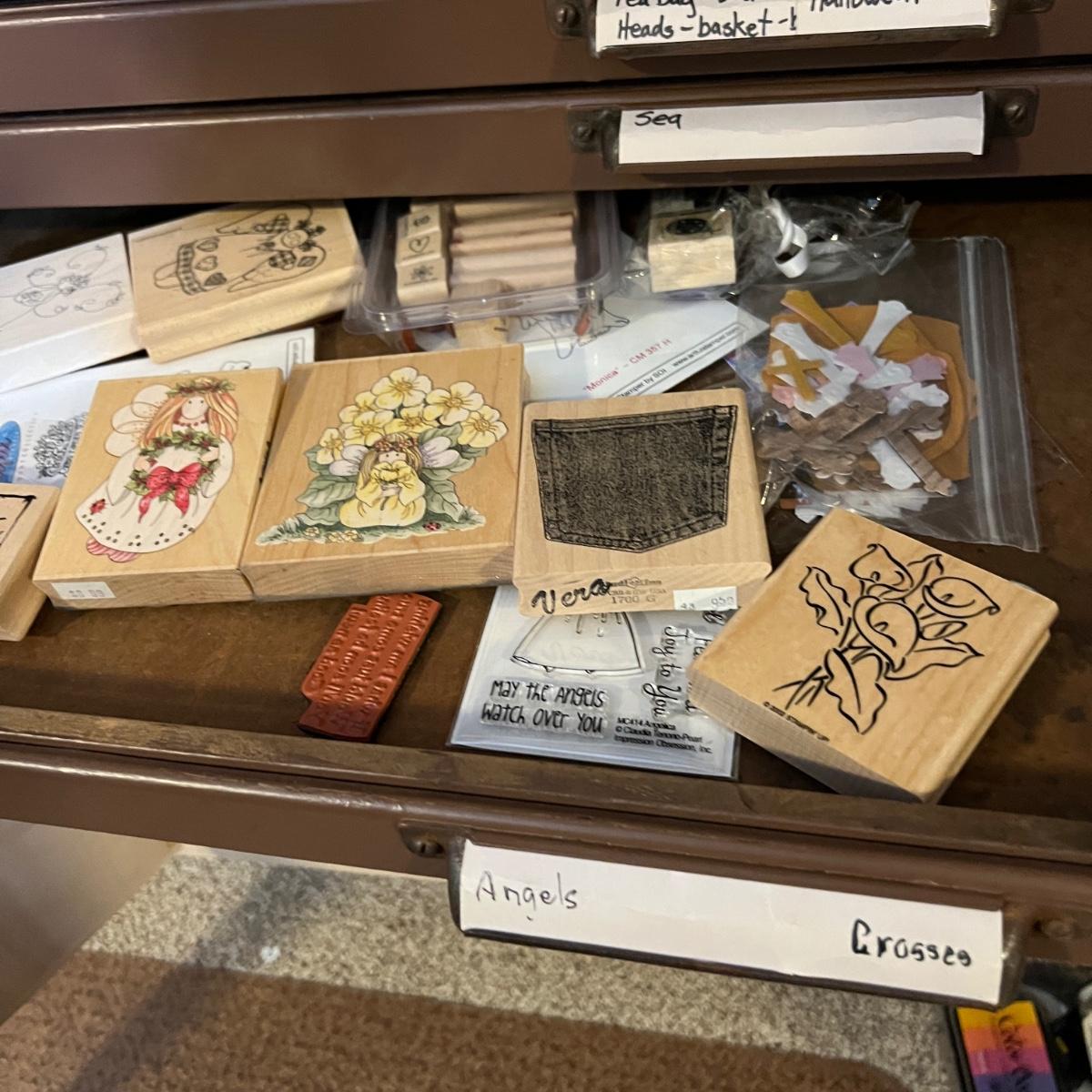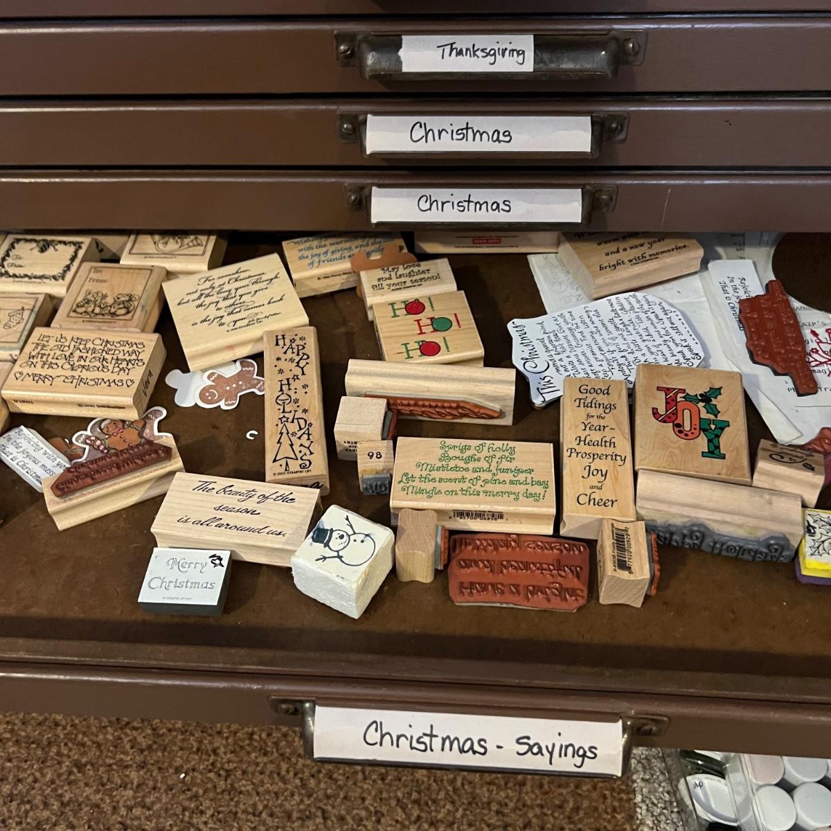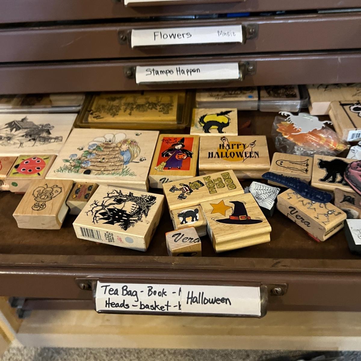 HUGE LOT - 17 Drawers of Wood Block Stamps + Ink - Crafting
