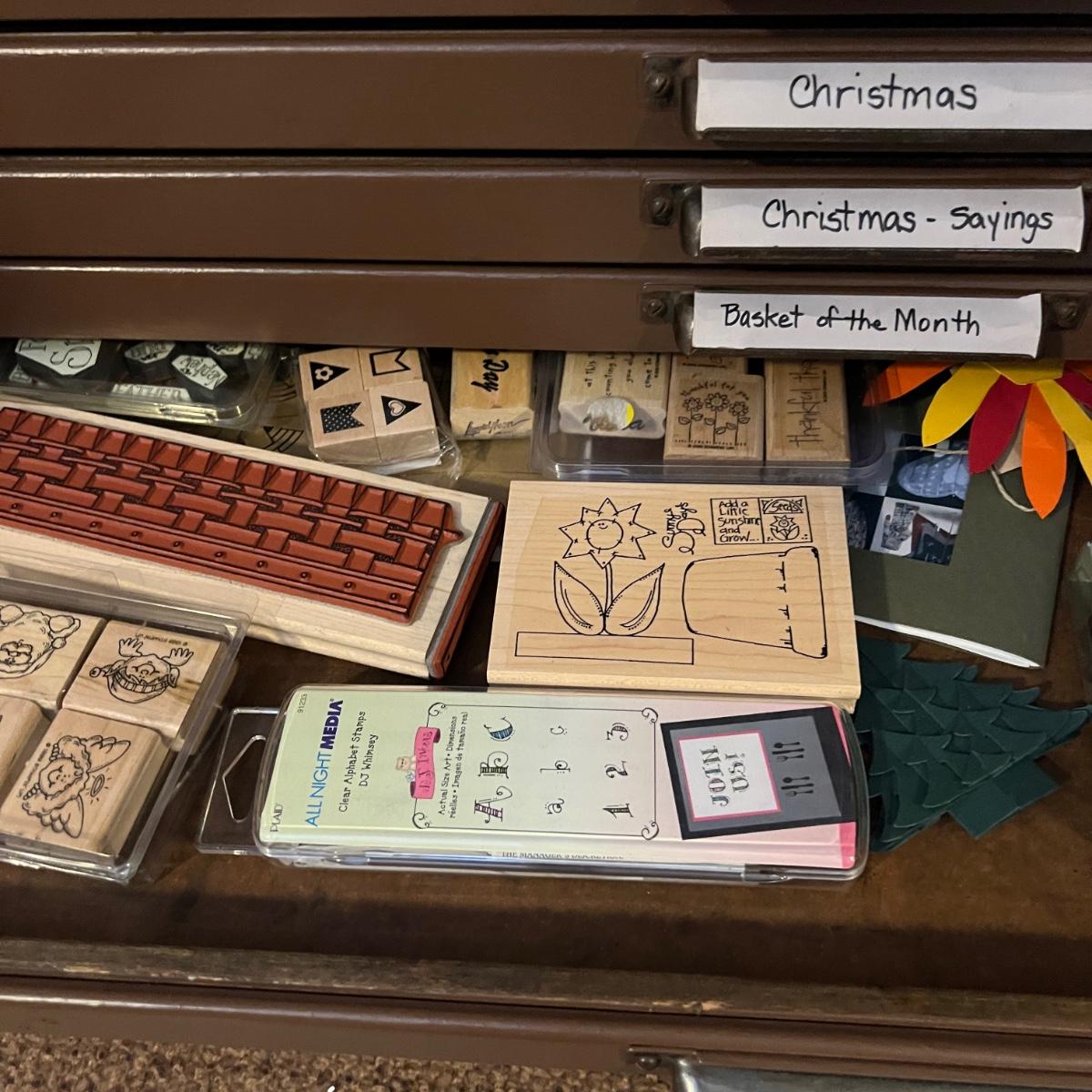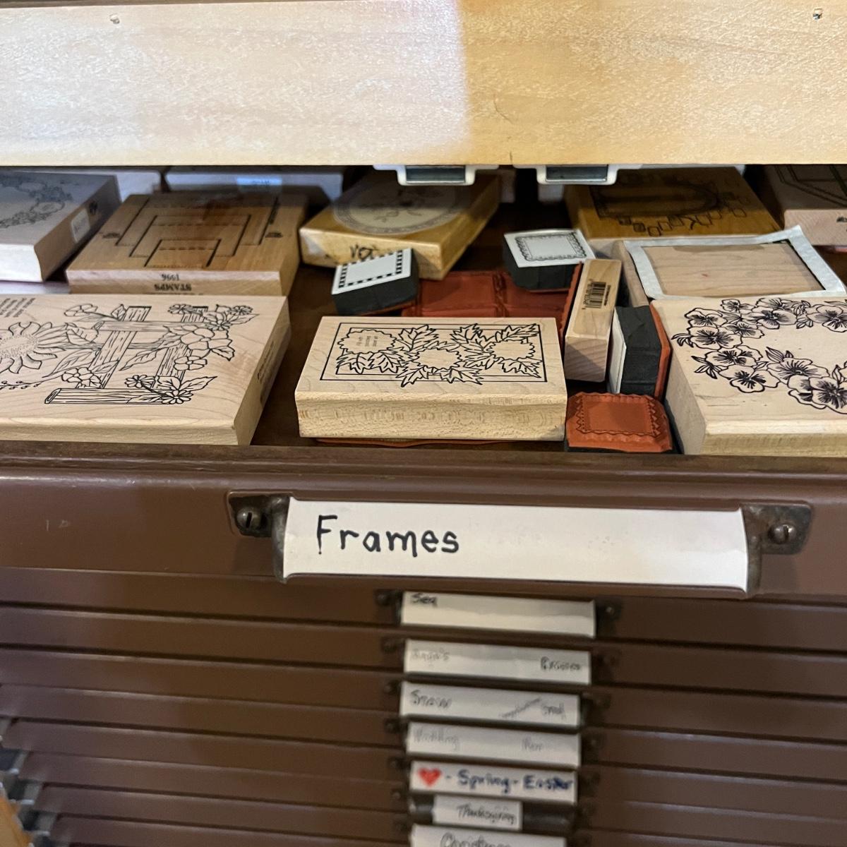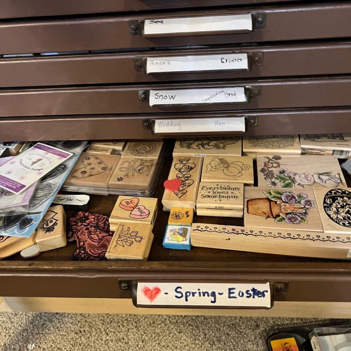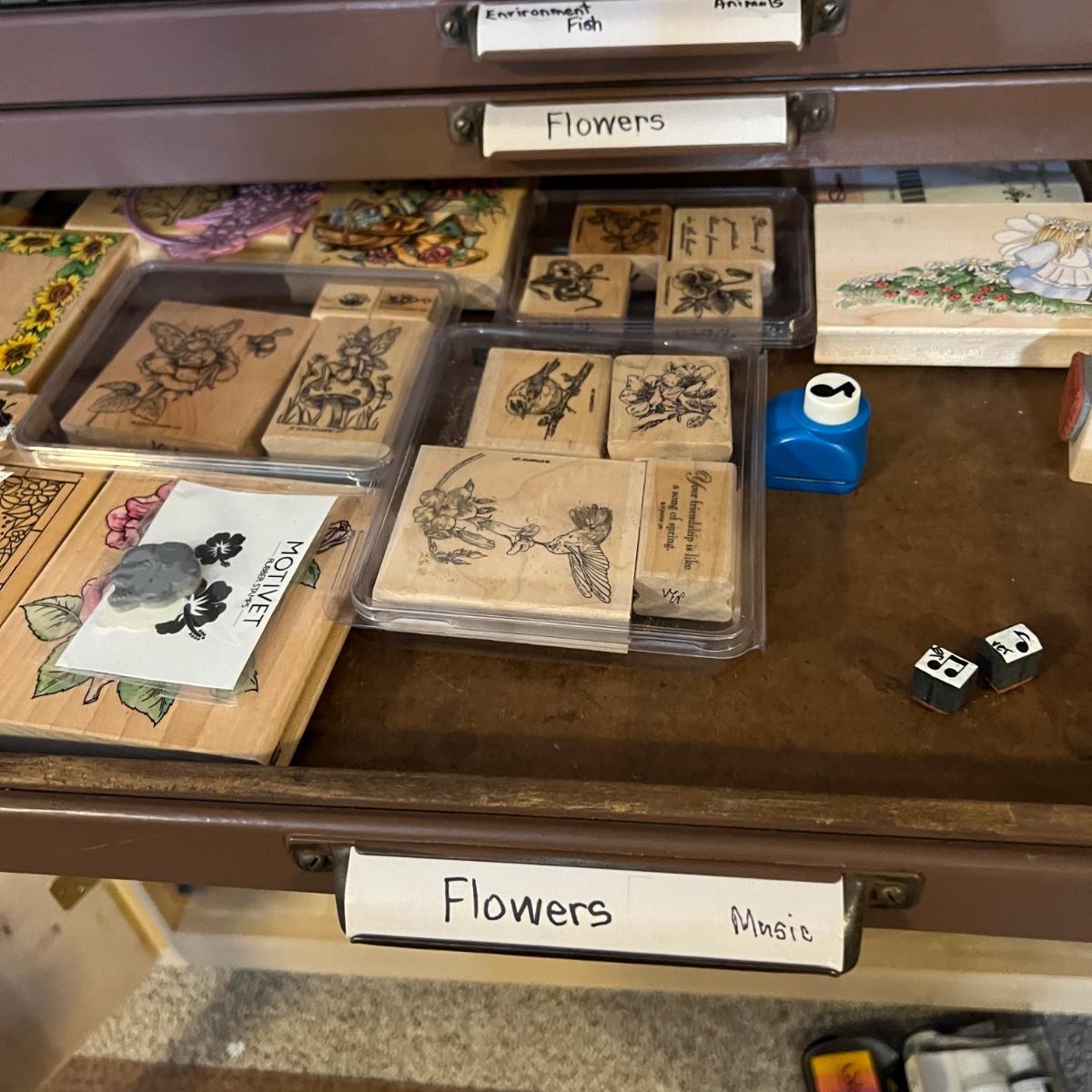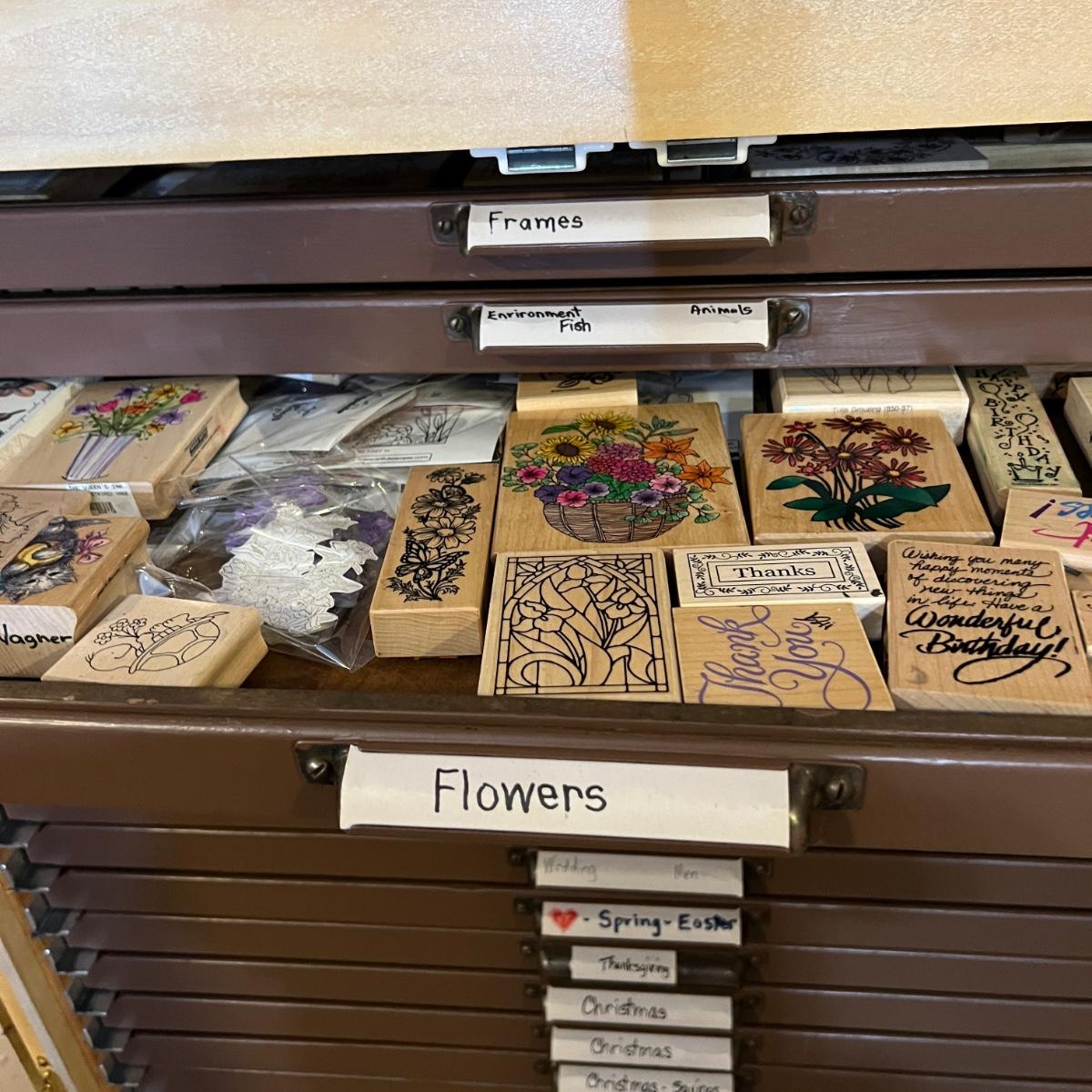 HUGE LOT - 17 Drawers of Wood Block Stamps + Ink - Crafting