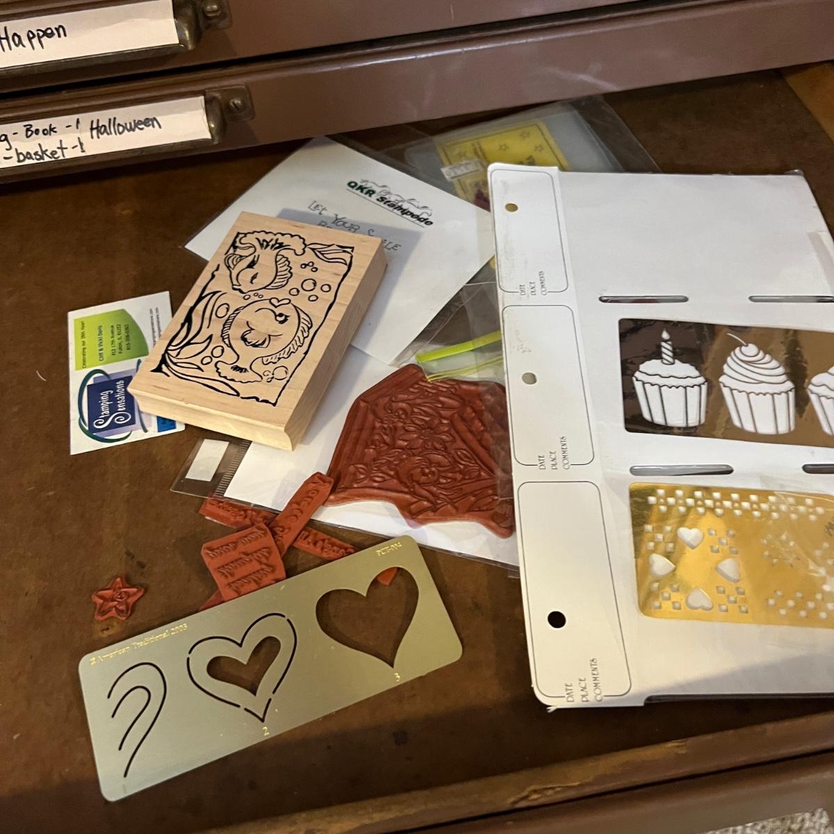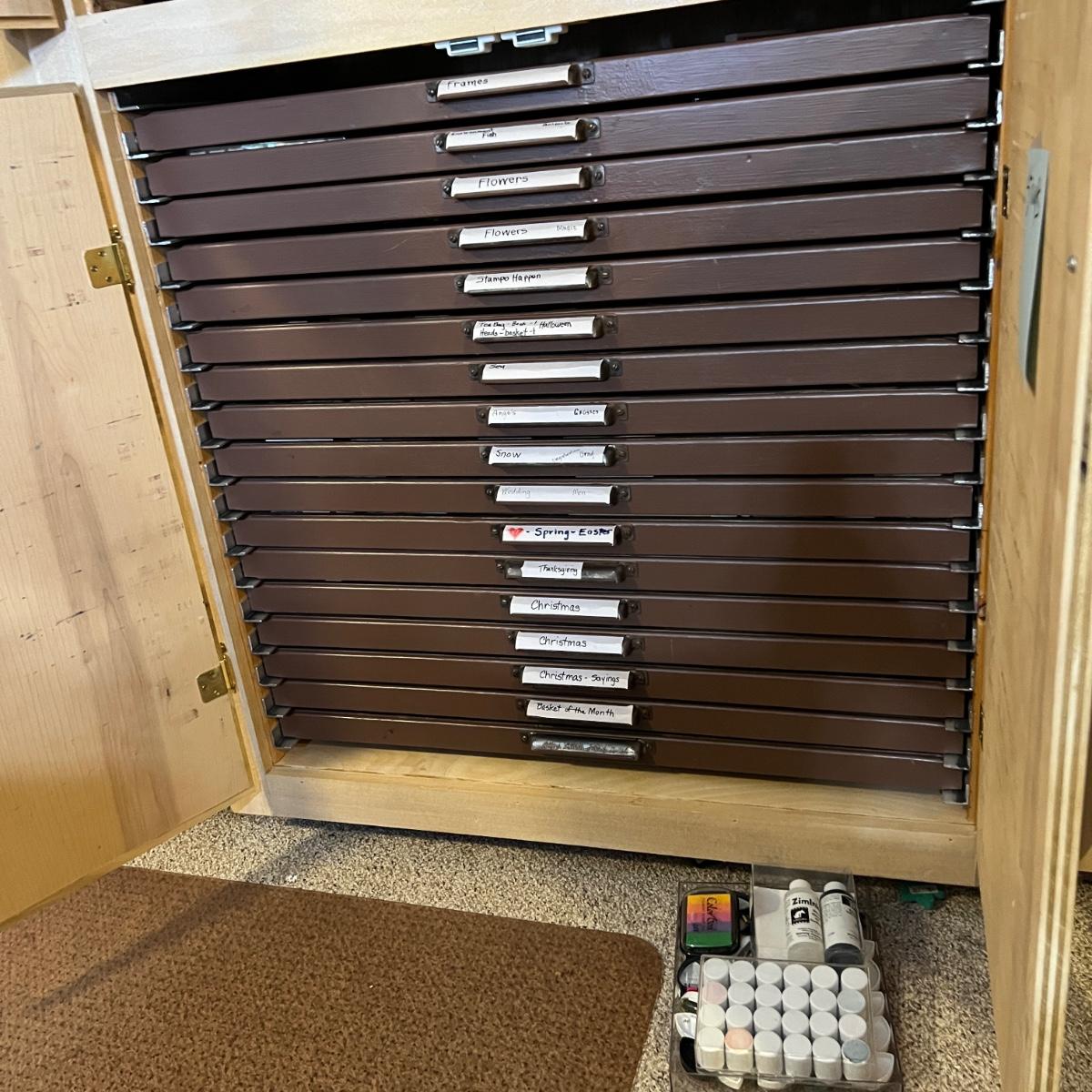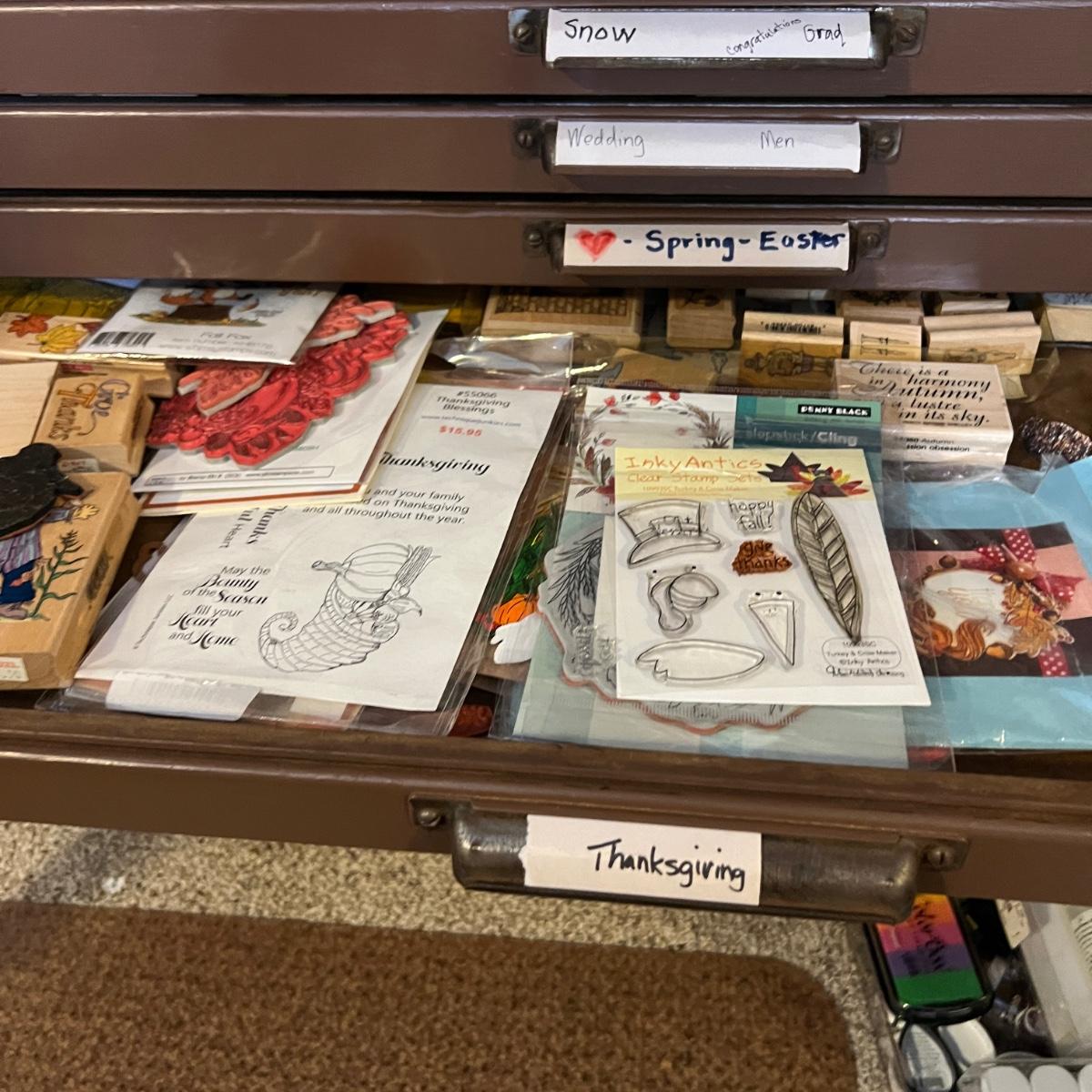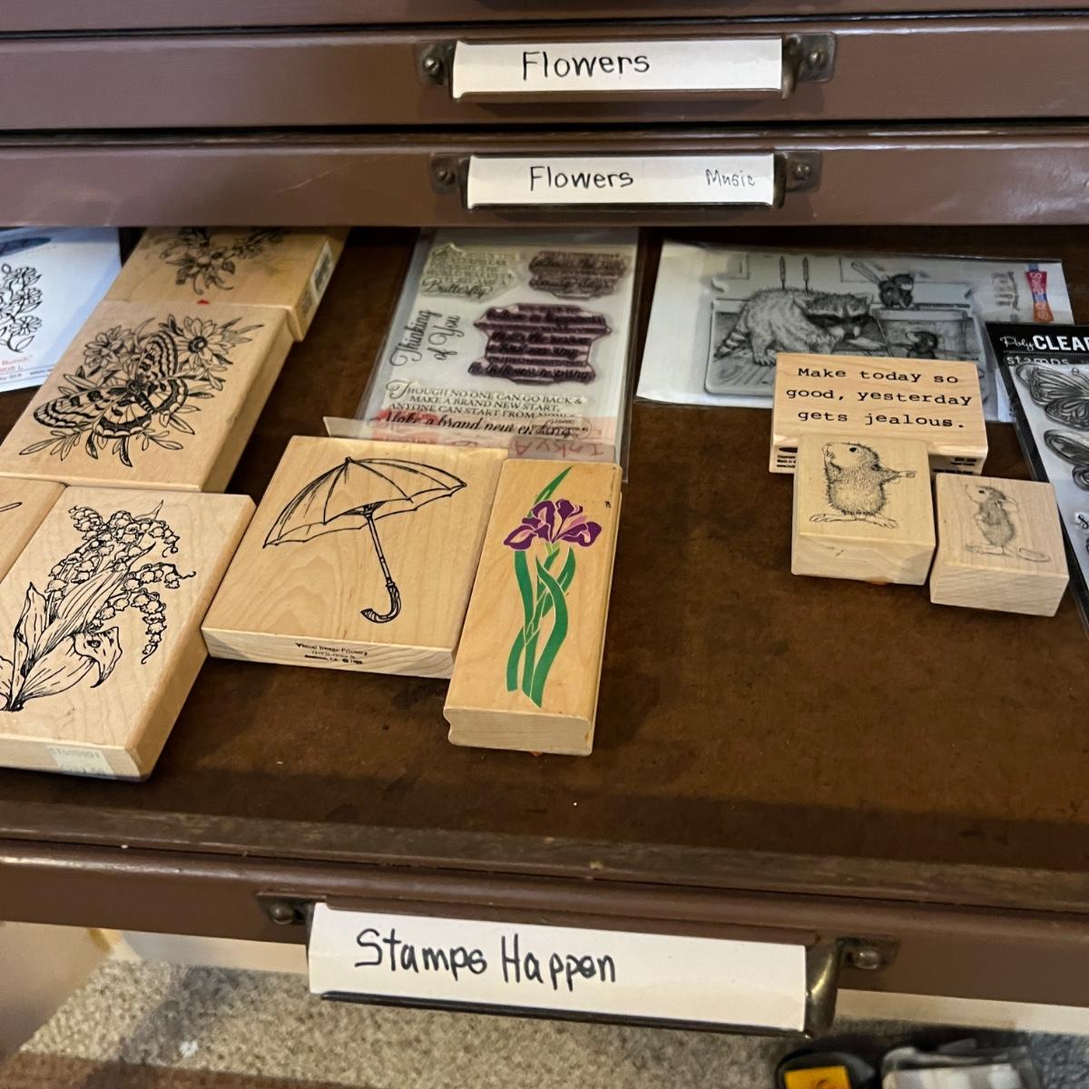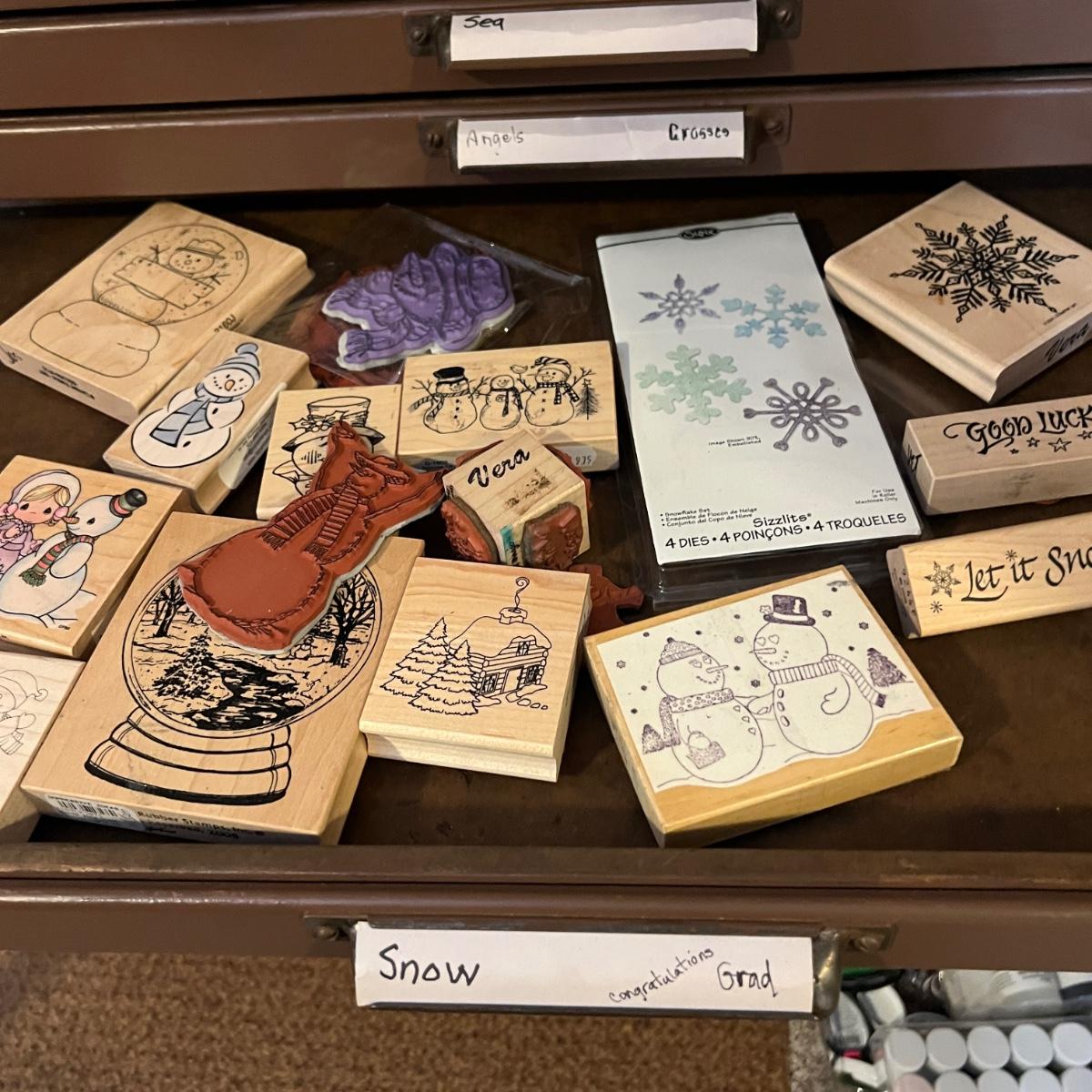 HUGE LOT - 17 Drawers of Wood Block Stamps + Ink - Crafting