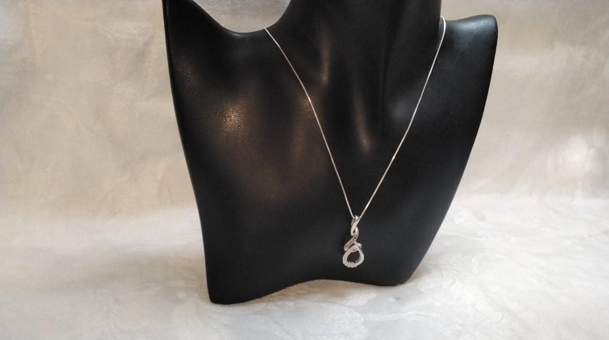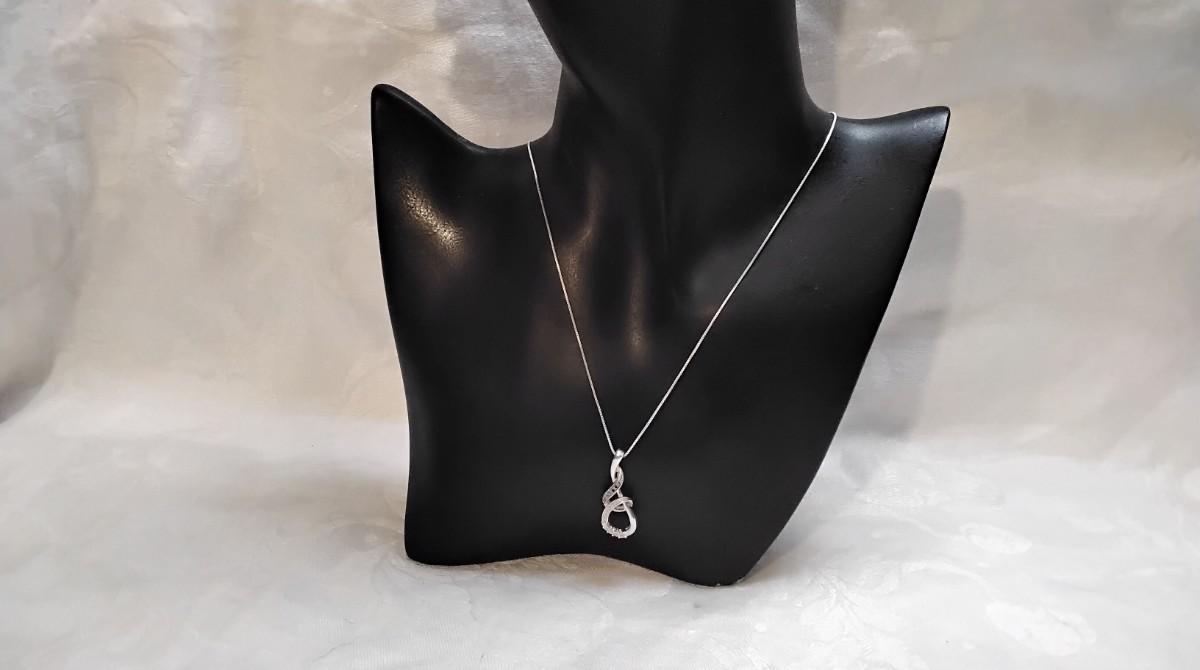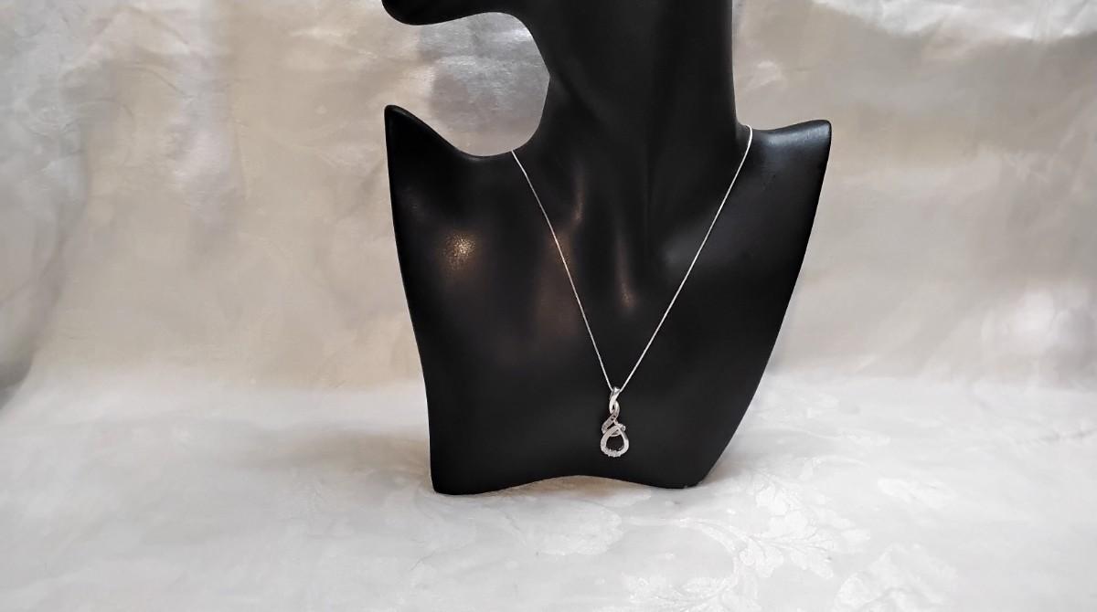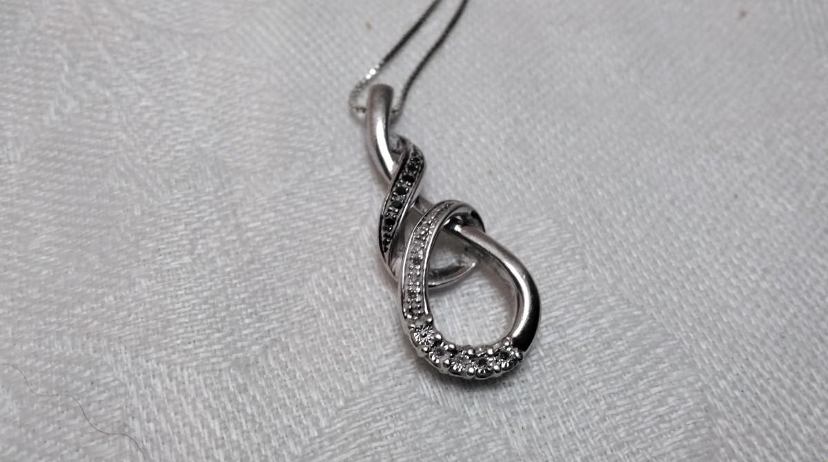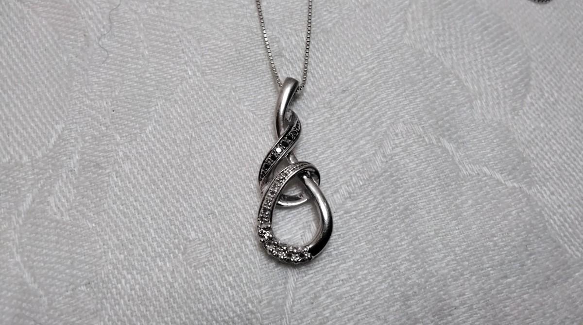 Black/White Diamonds Set In A Unique Pendant 925 17" Necklace
