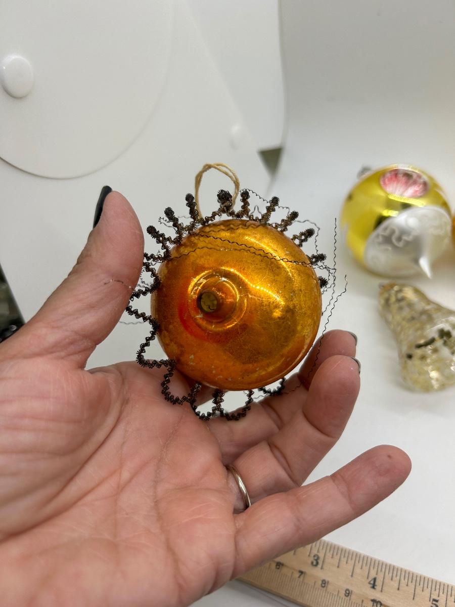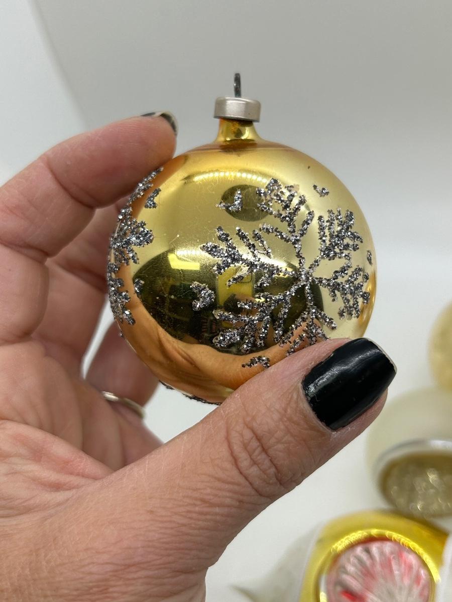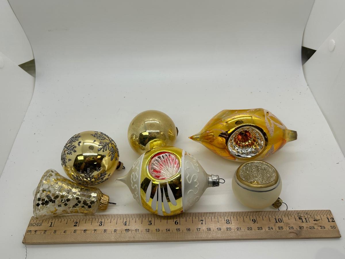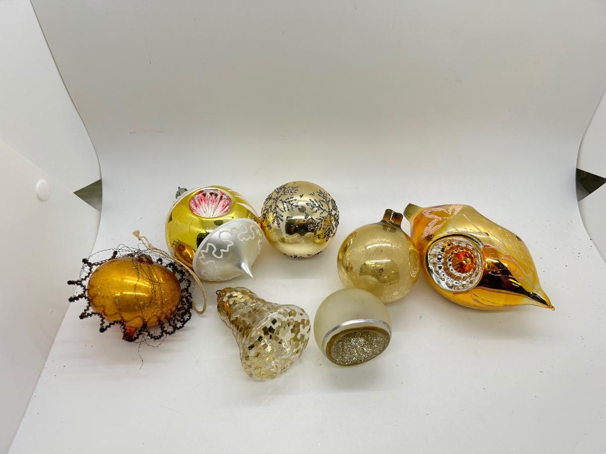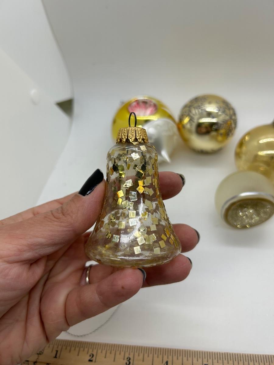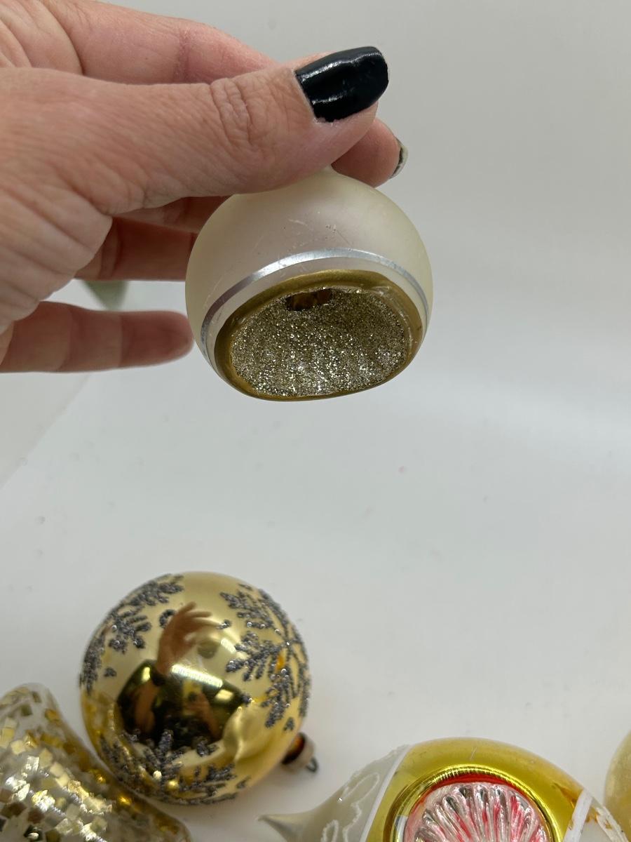 Mixed Lot of Vintage Gold Tone Blown Glass Christmas Holiday Tree Ornaments